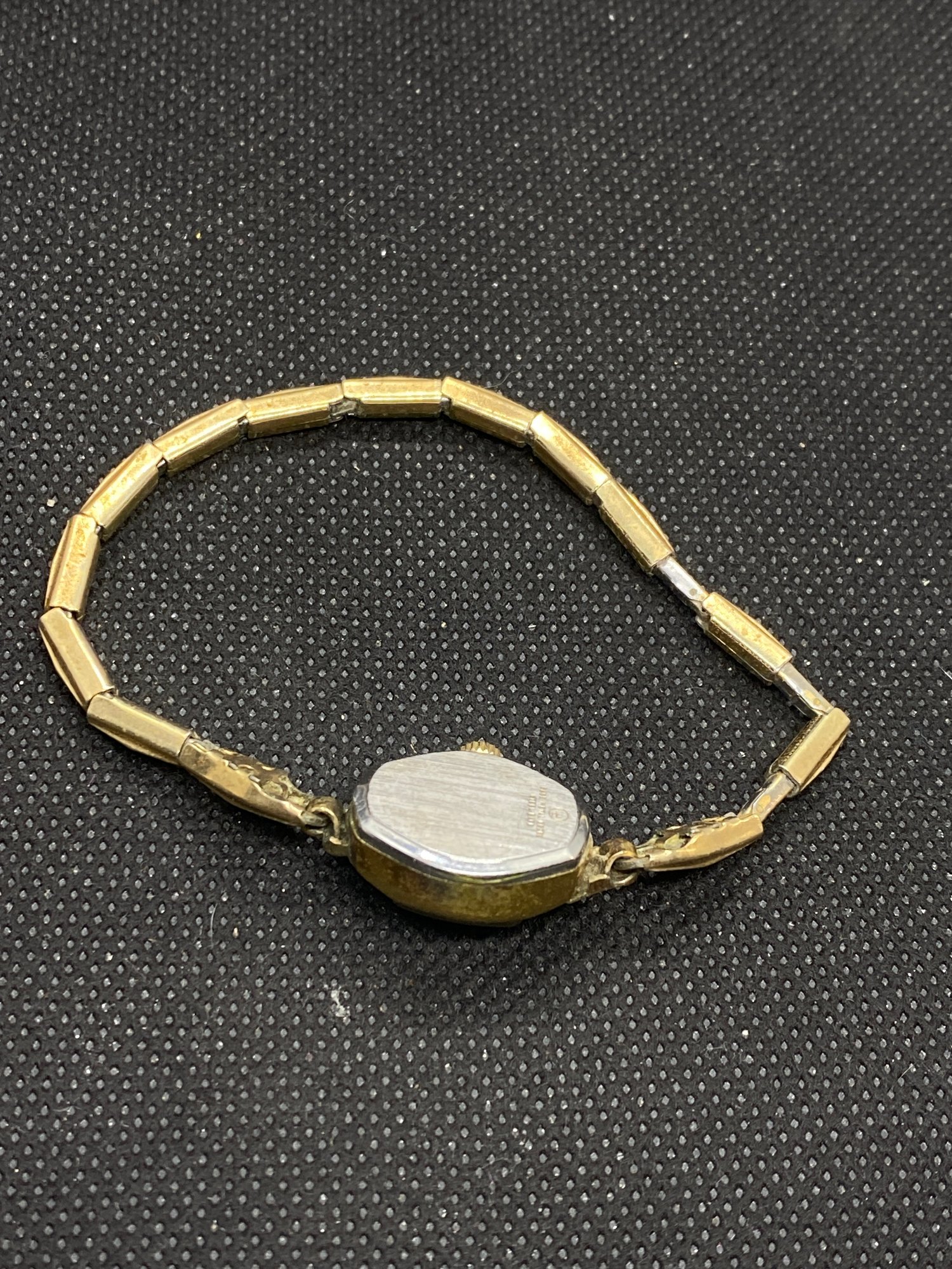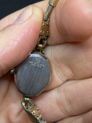 This watch is untested but most likely just needs a fresh set of batteries. The band still works but is slightly stretched out and doesn’t retract like it should, but could be repaired! It is Waltham Swiss made.