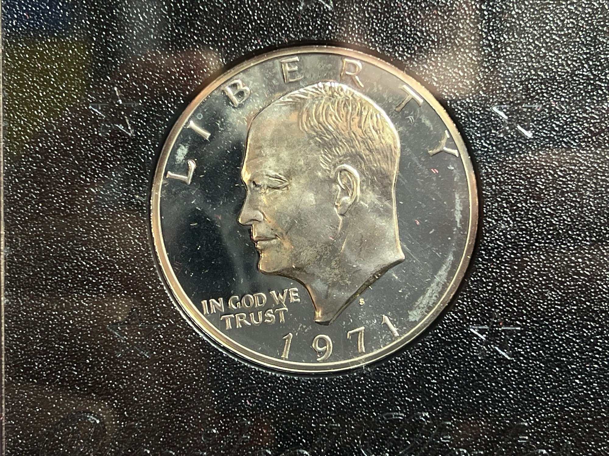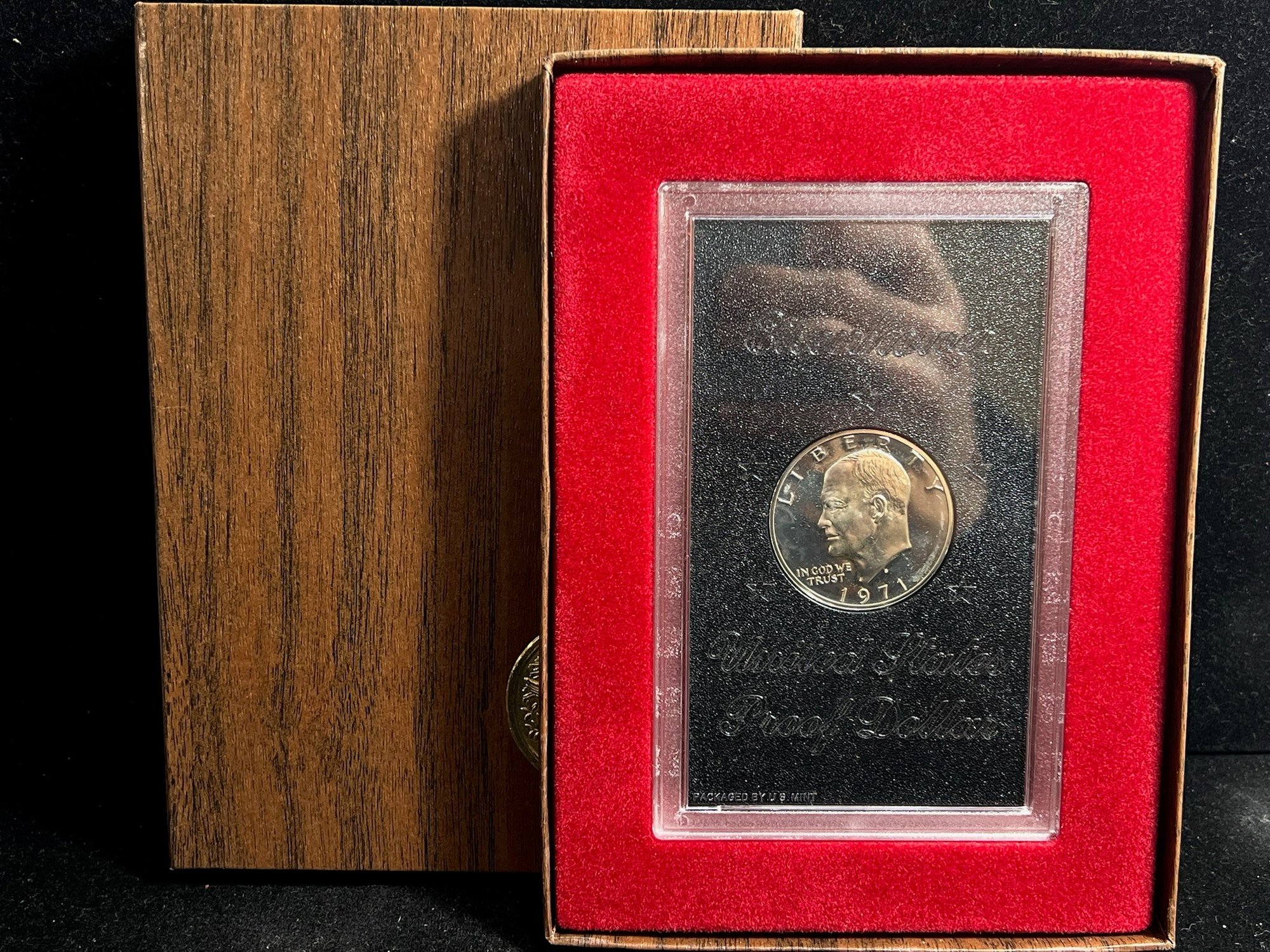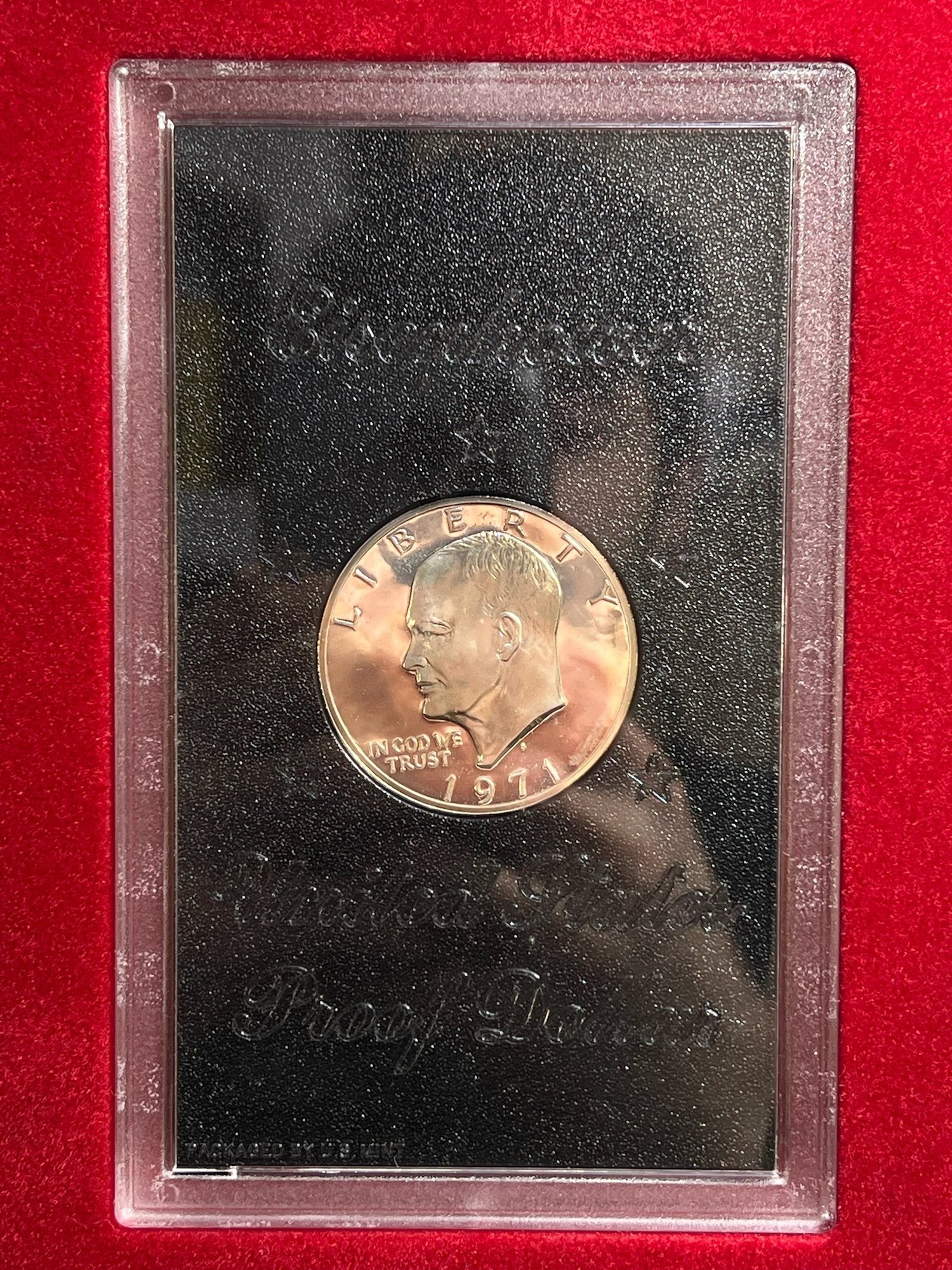 For sale is a 1971 U.S. Mint San Francisco Eisenhower Proof Silver Dollar. This coin comes with the original brown box. Please see all photos before bidding.