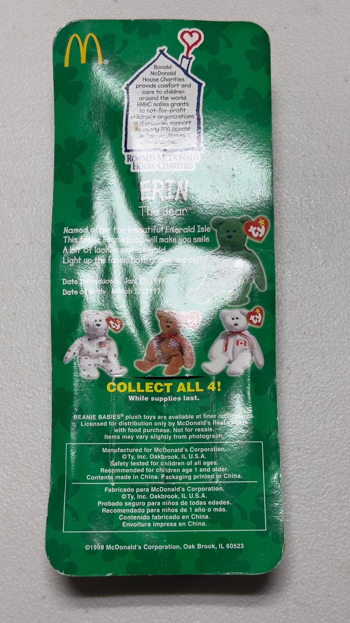 1. Collector Info: The package and tag frequently contain famous manufacturing errors, such as a birthdate misprint (1997 on the package vs. 1993 on the tag) and misspelling of "Oakbrook".