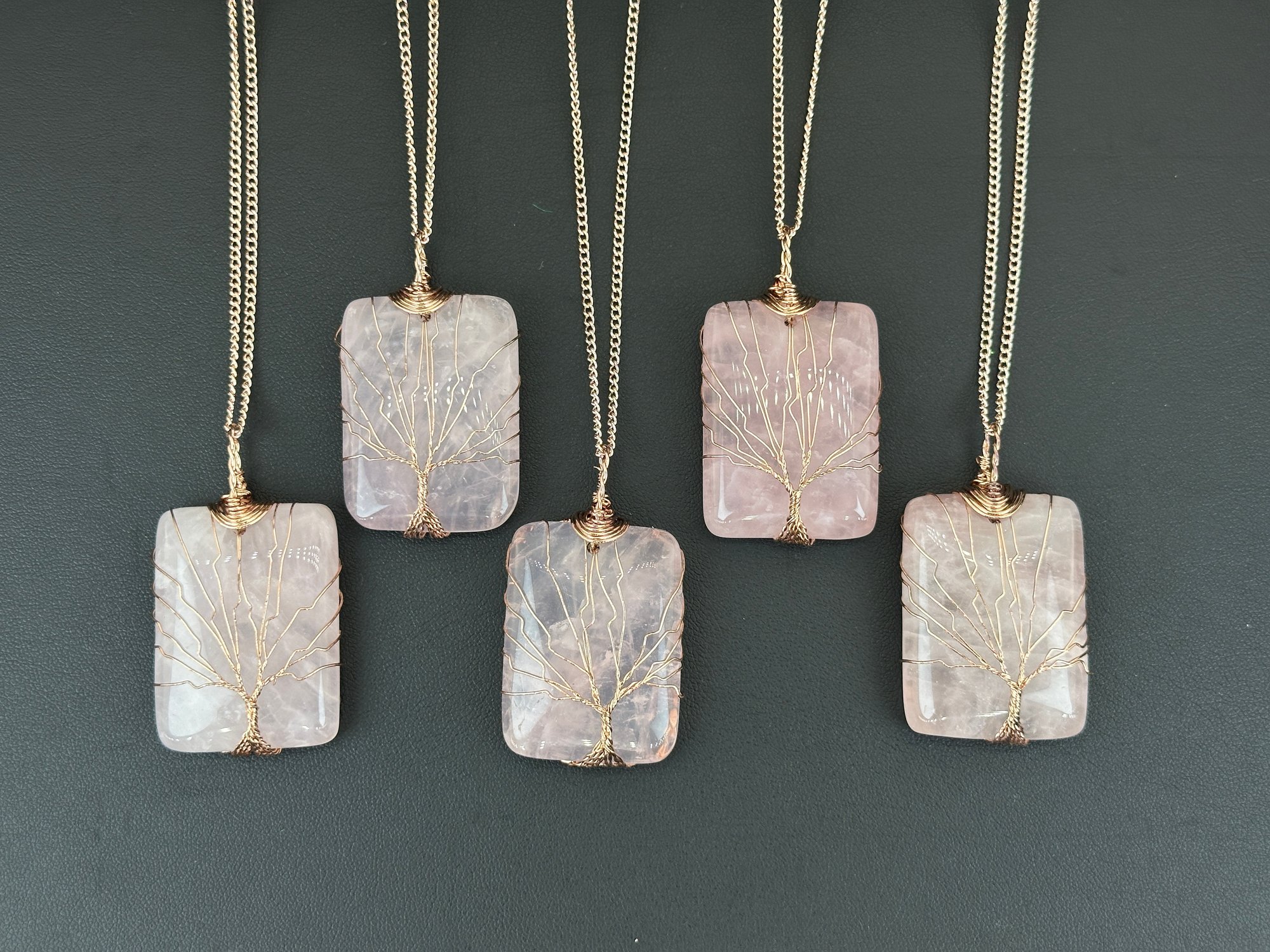 1. Copper Pink Quartz Tree Of Life Necklace Lot