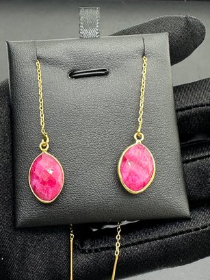 1. Earrings 925 Silver-Tone, Gold-Plated Natural Ruby Gemstone
