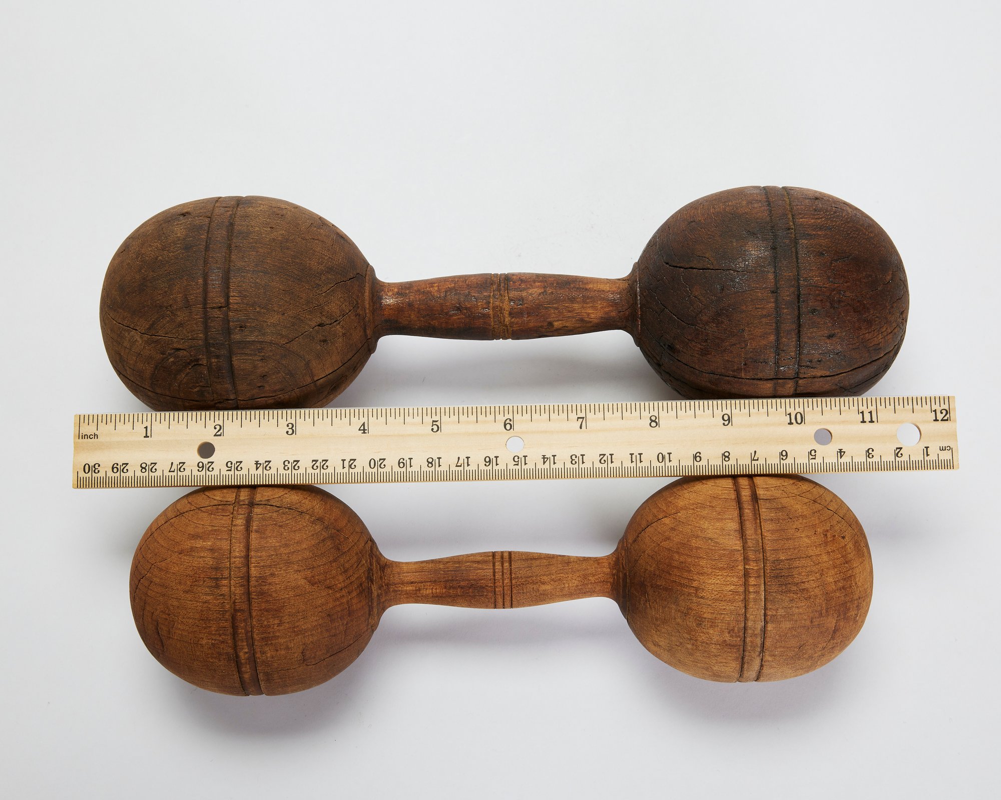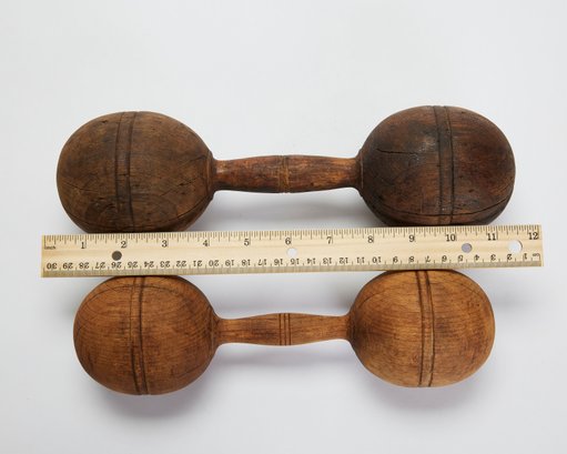 Pair Of Antique Turned Wood Dumbells