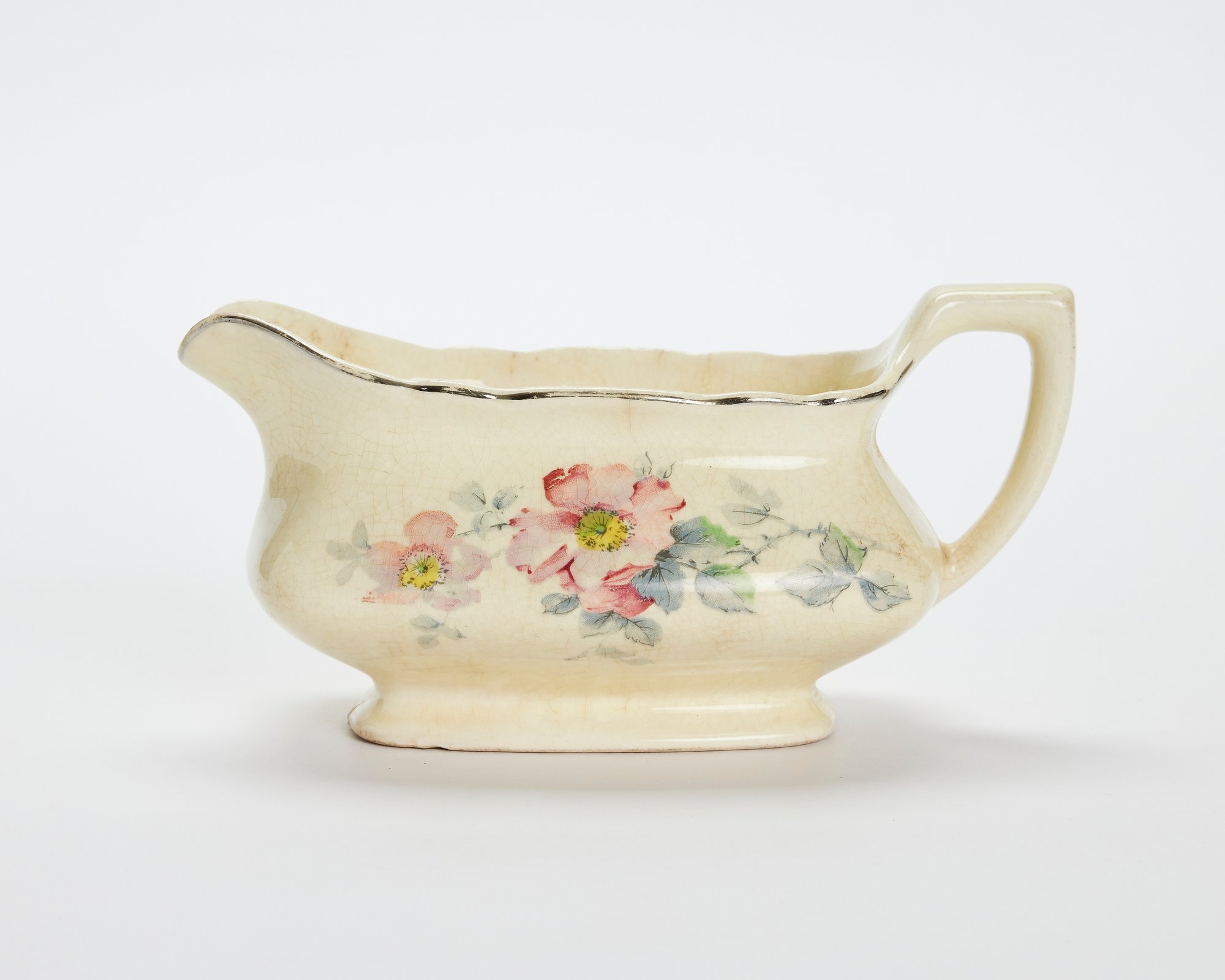 Antique W.S. George "LIDO" Canarytone Floral Pattern Gravy Boat