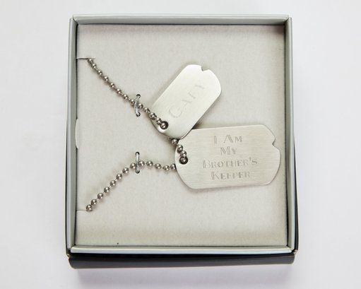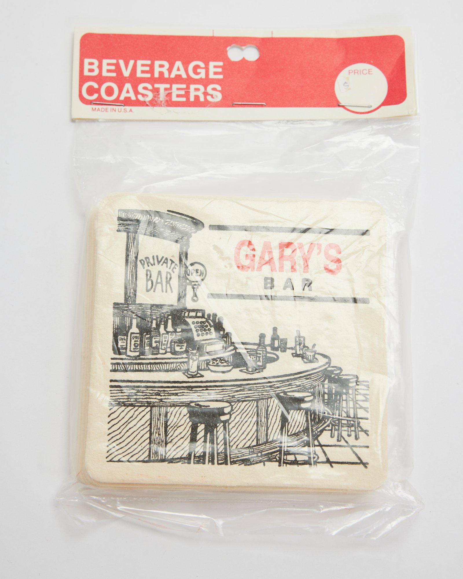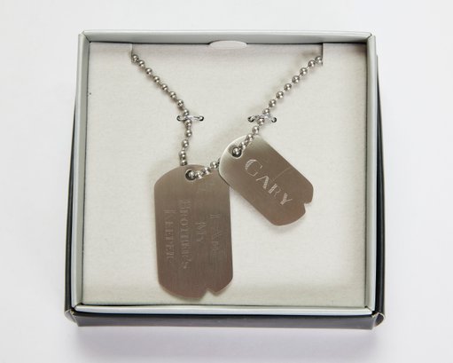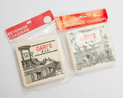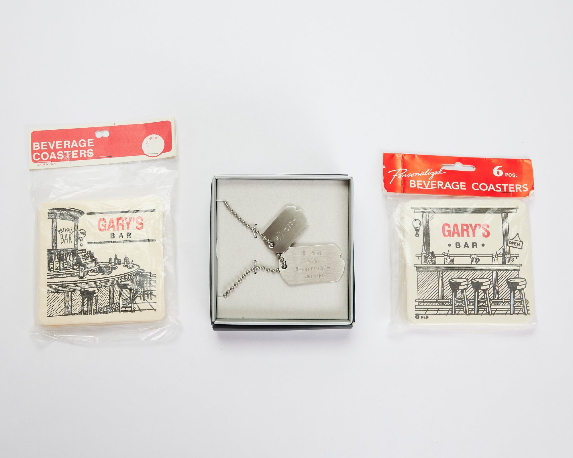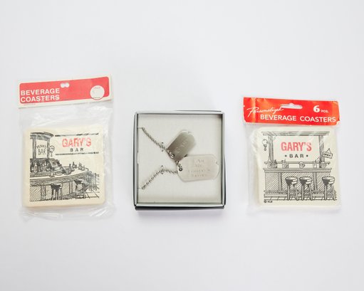 2 packages of beverage coasters and a set of dog tags for someone named Gary!