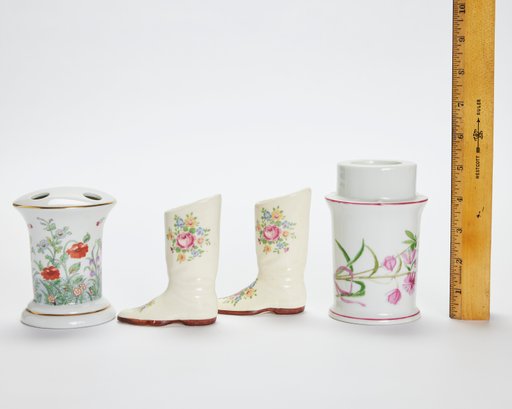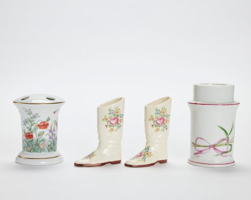 Collection Of Floral Motif Porcelain Items