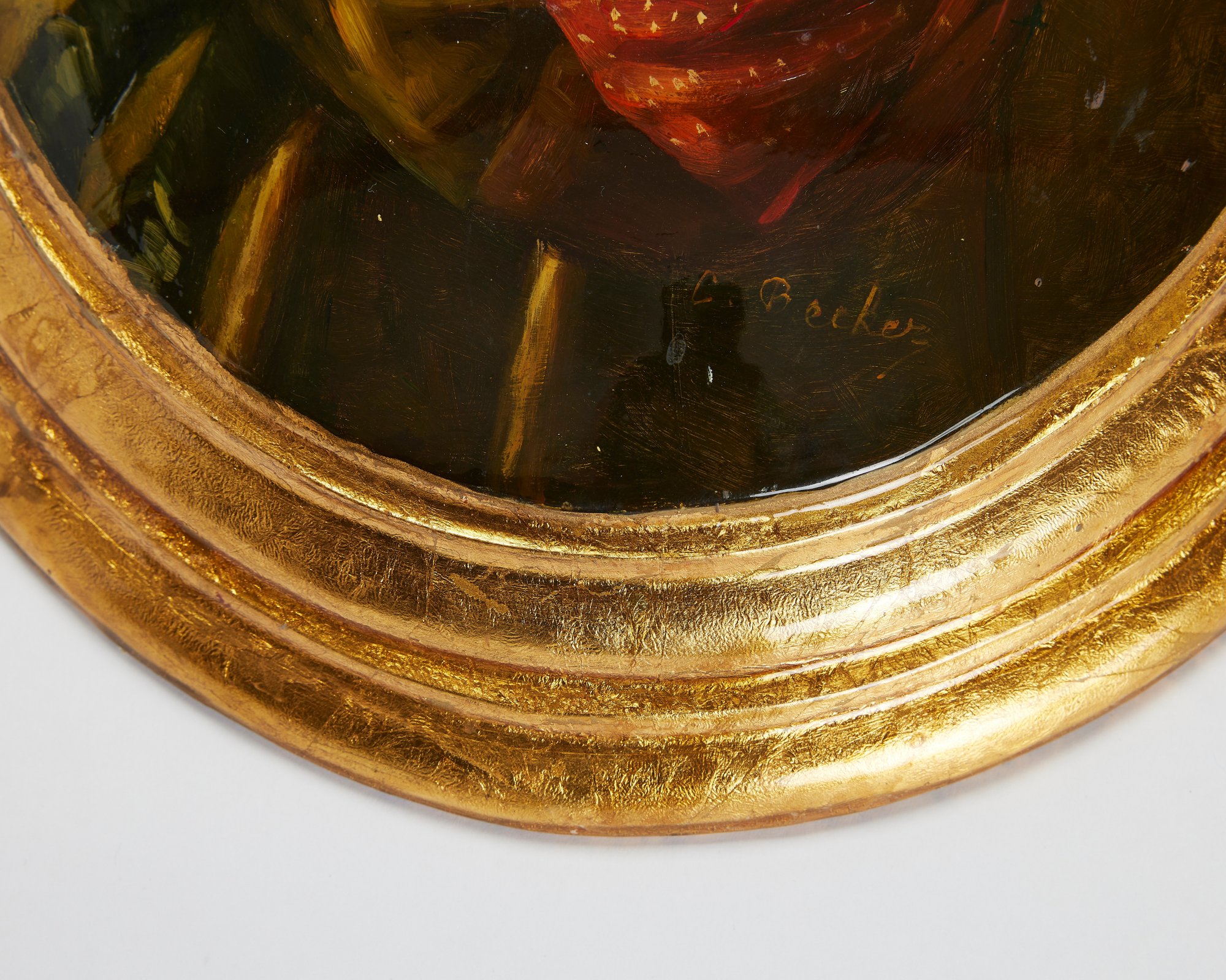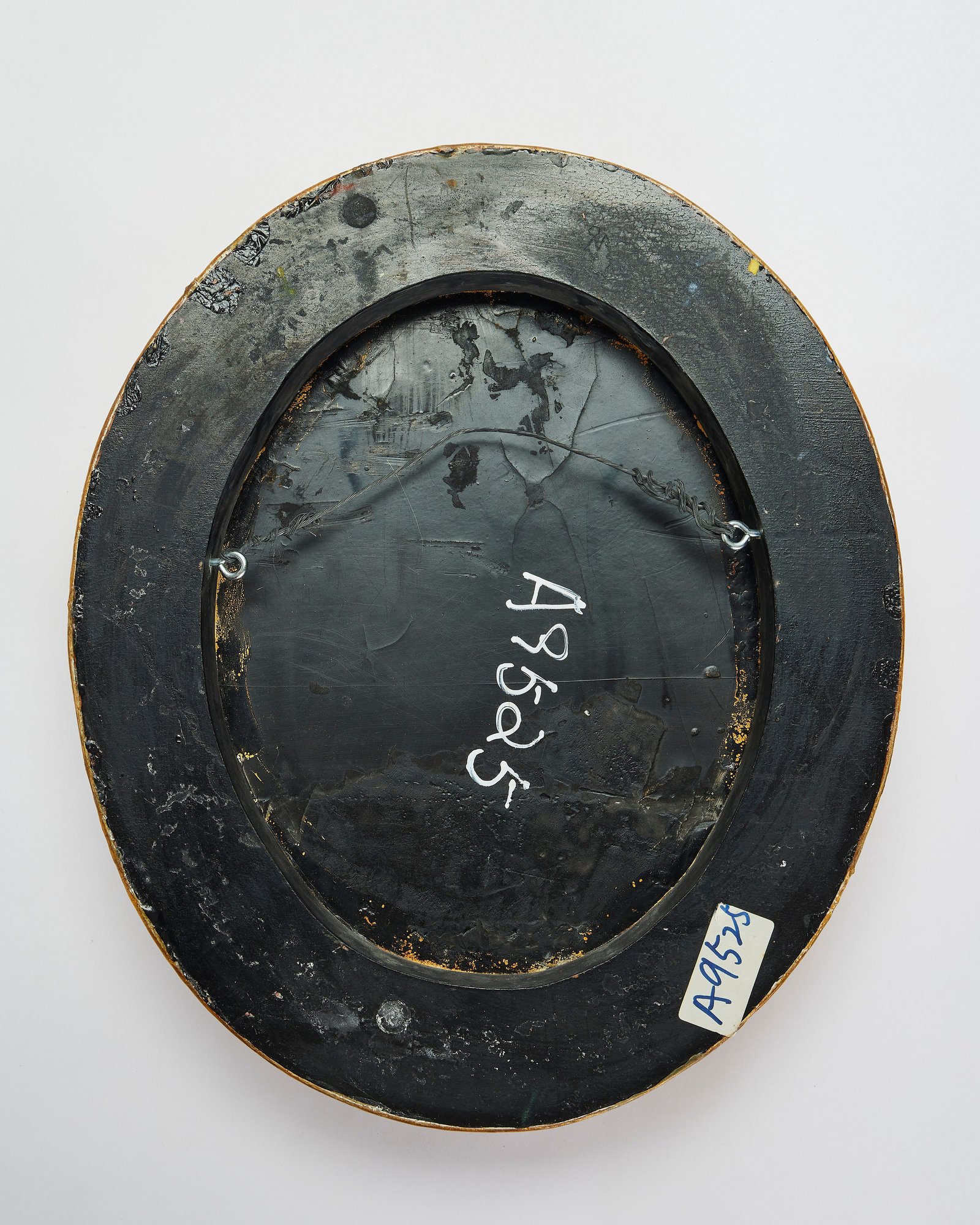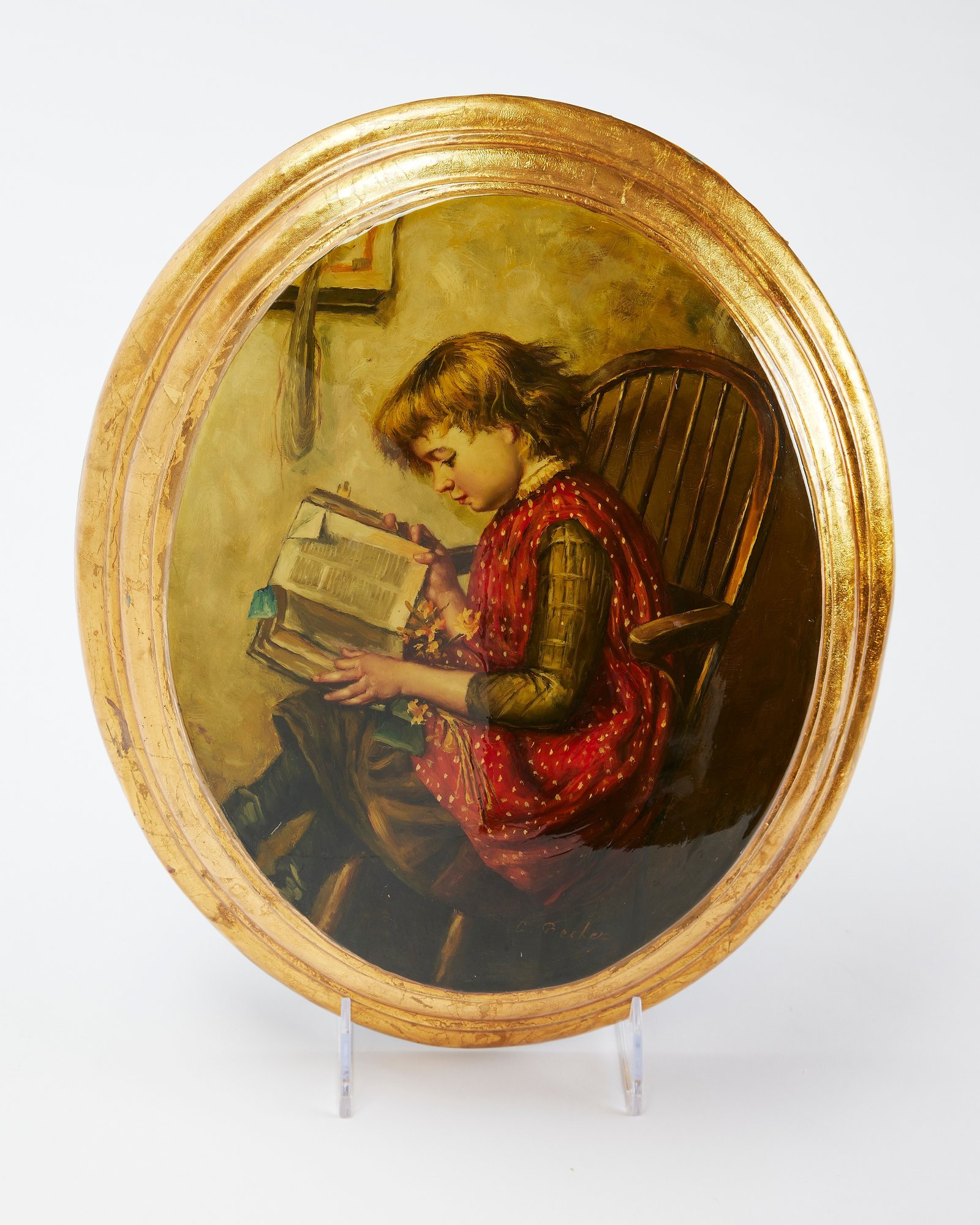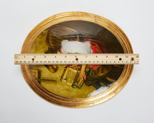 Convex Wall Hanging Of Child Reading In Gilded Oval Frame