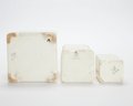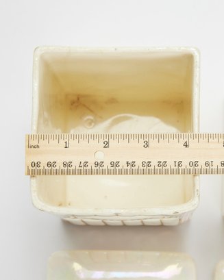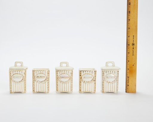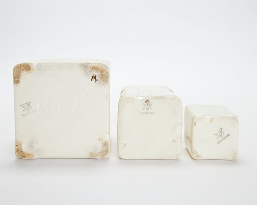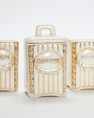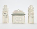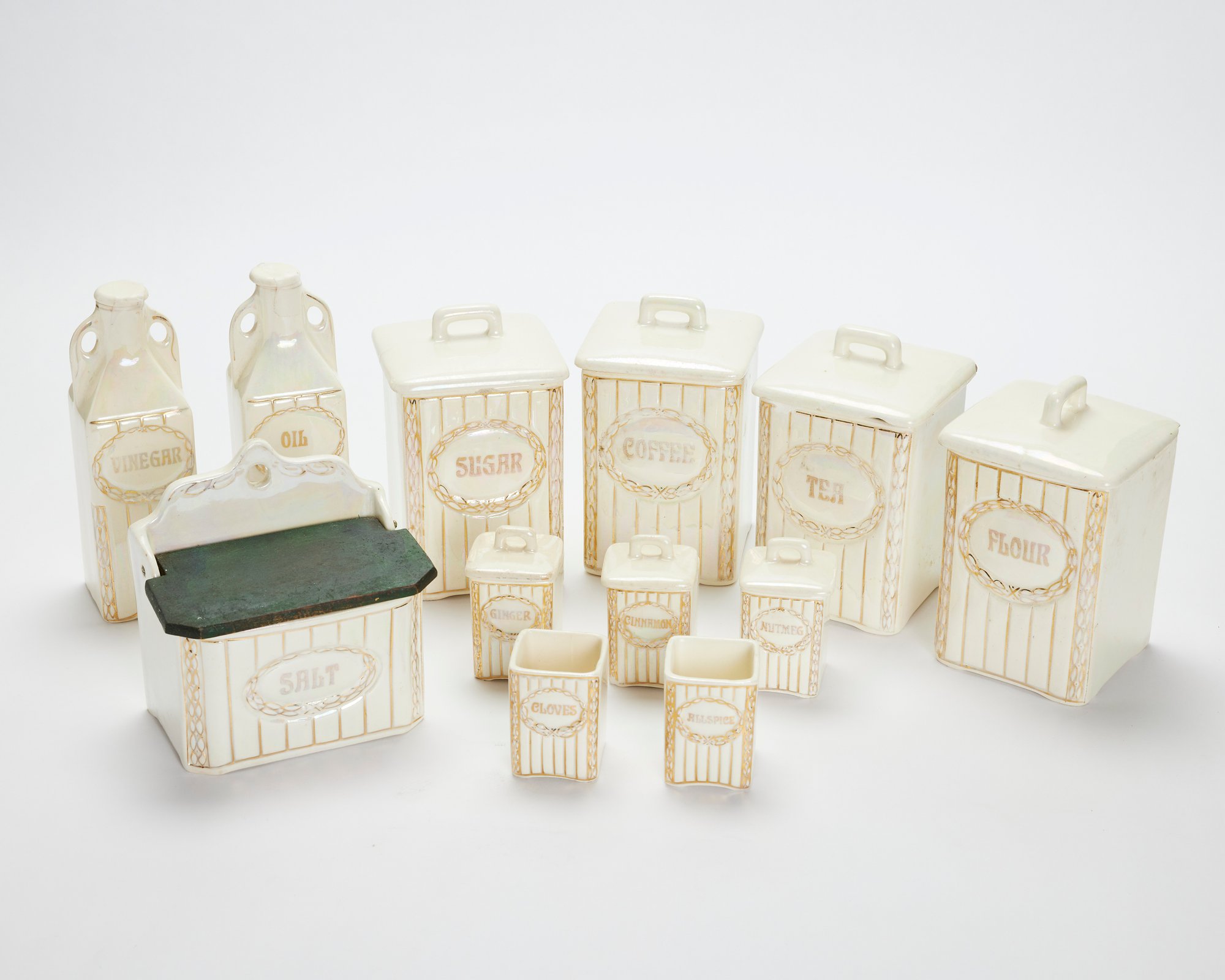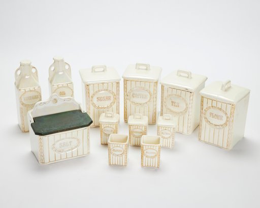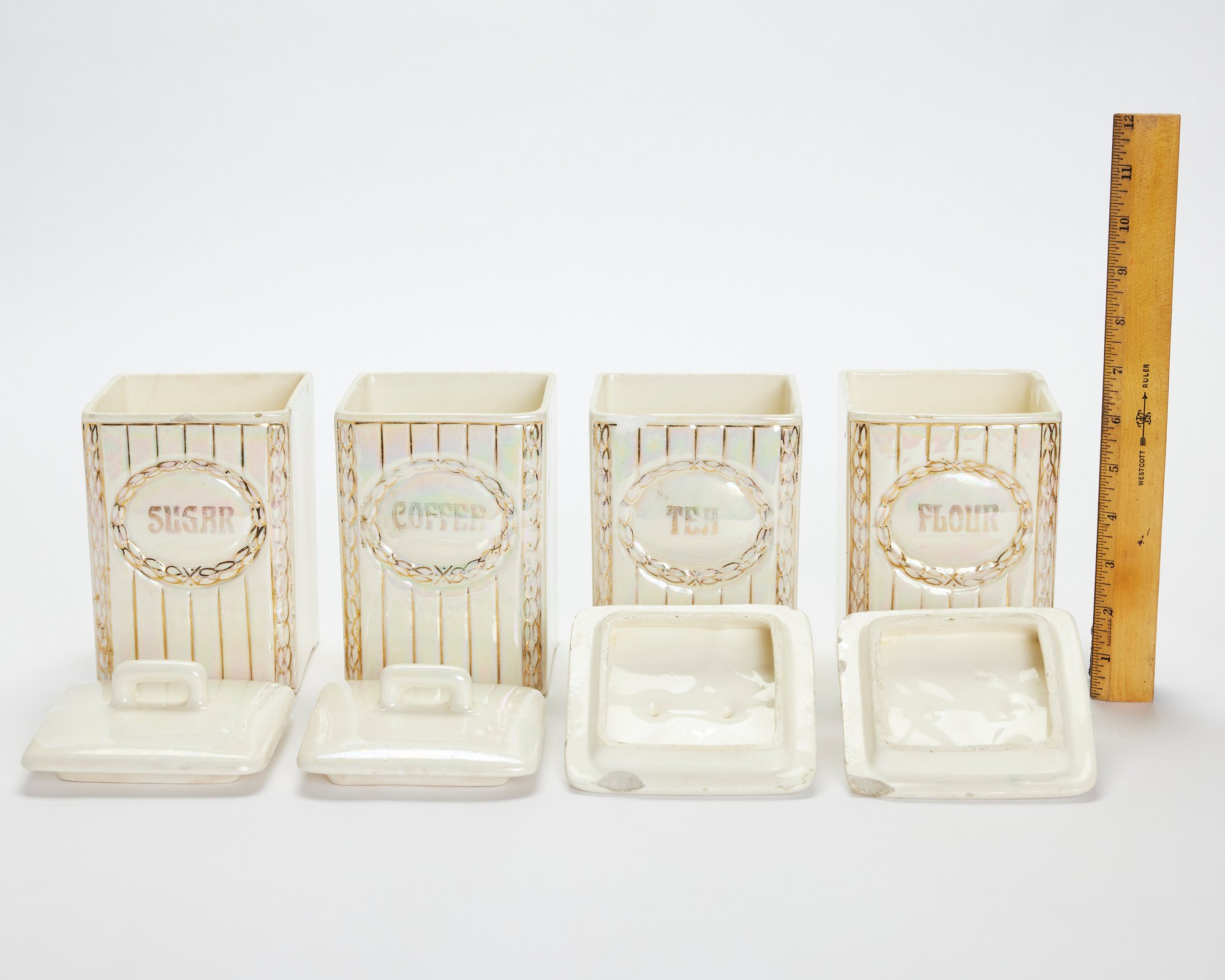 Notes: Missing lids on two of the small canisters. Chips to tops and bottoms on the larger canisters.