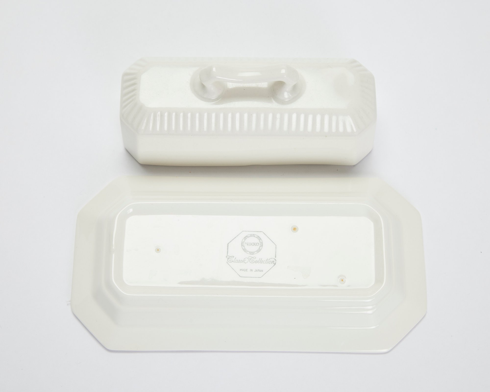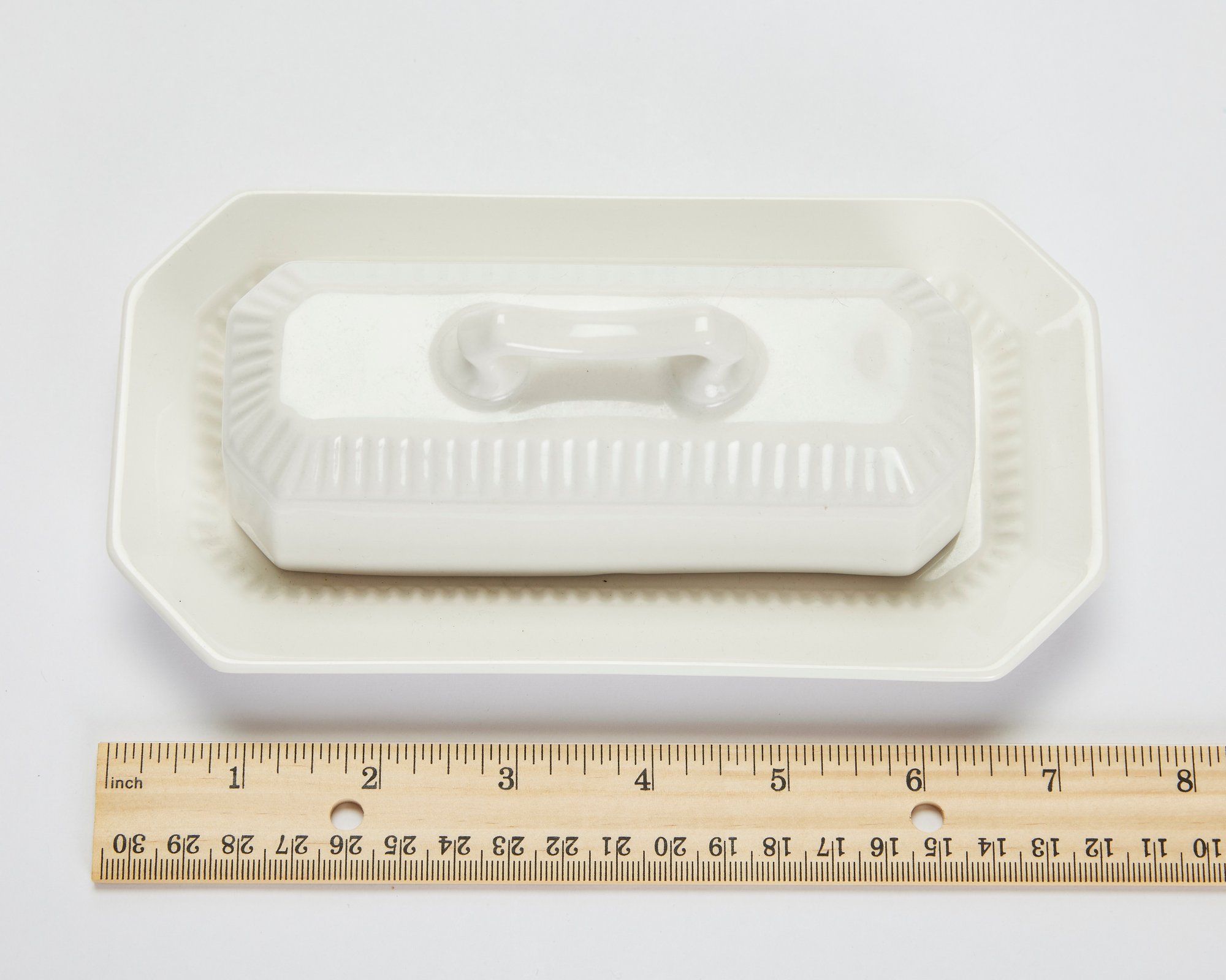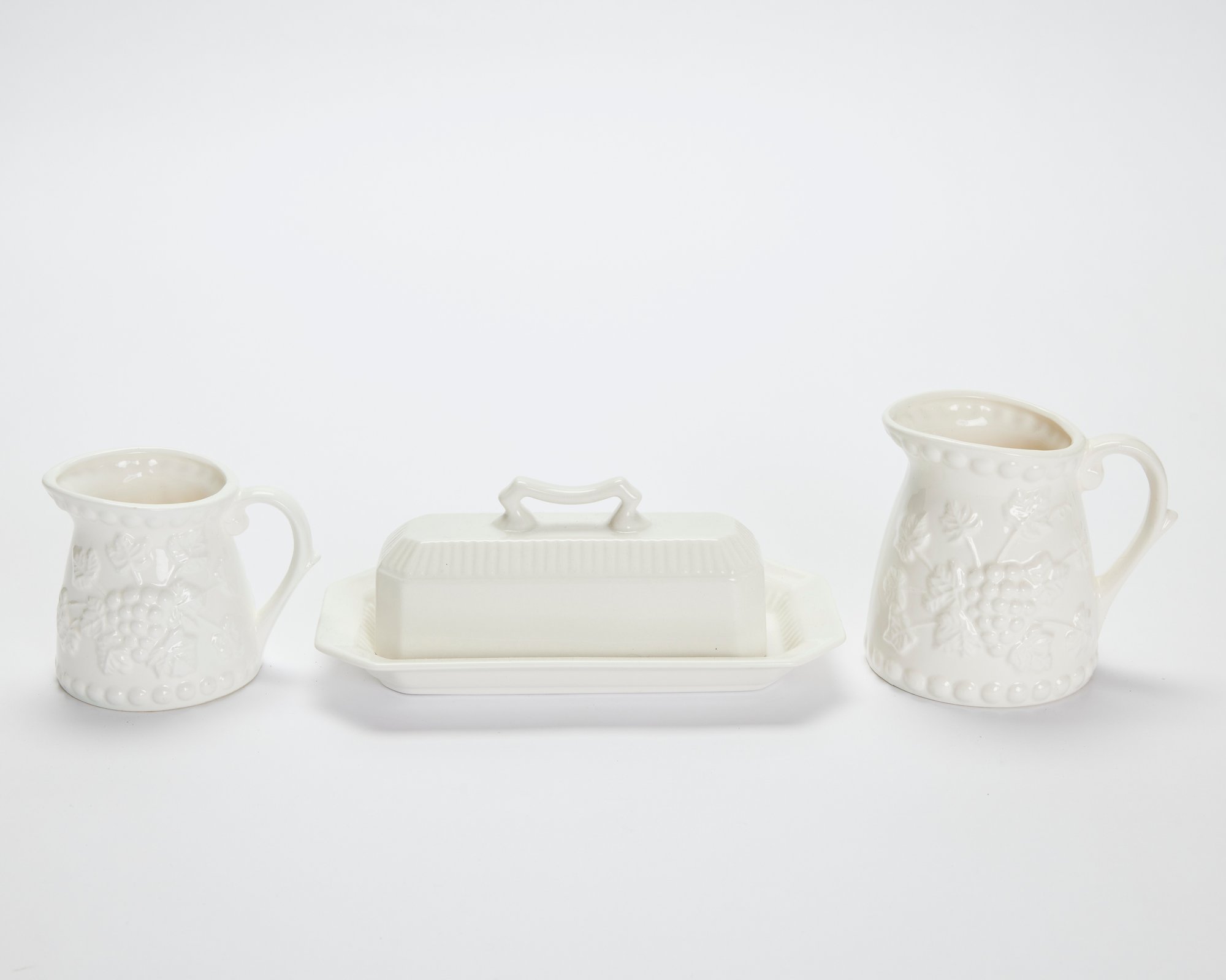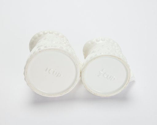 Embossed Measuring Cups & Porcelain Butter Dish