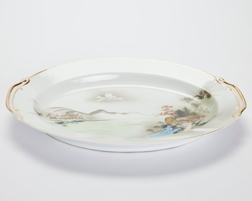 Kutani Scenic Hand-Painted Japanese Porcelain Serving Platter
