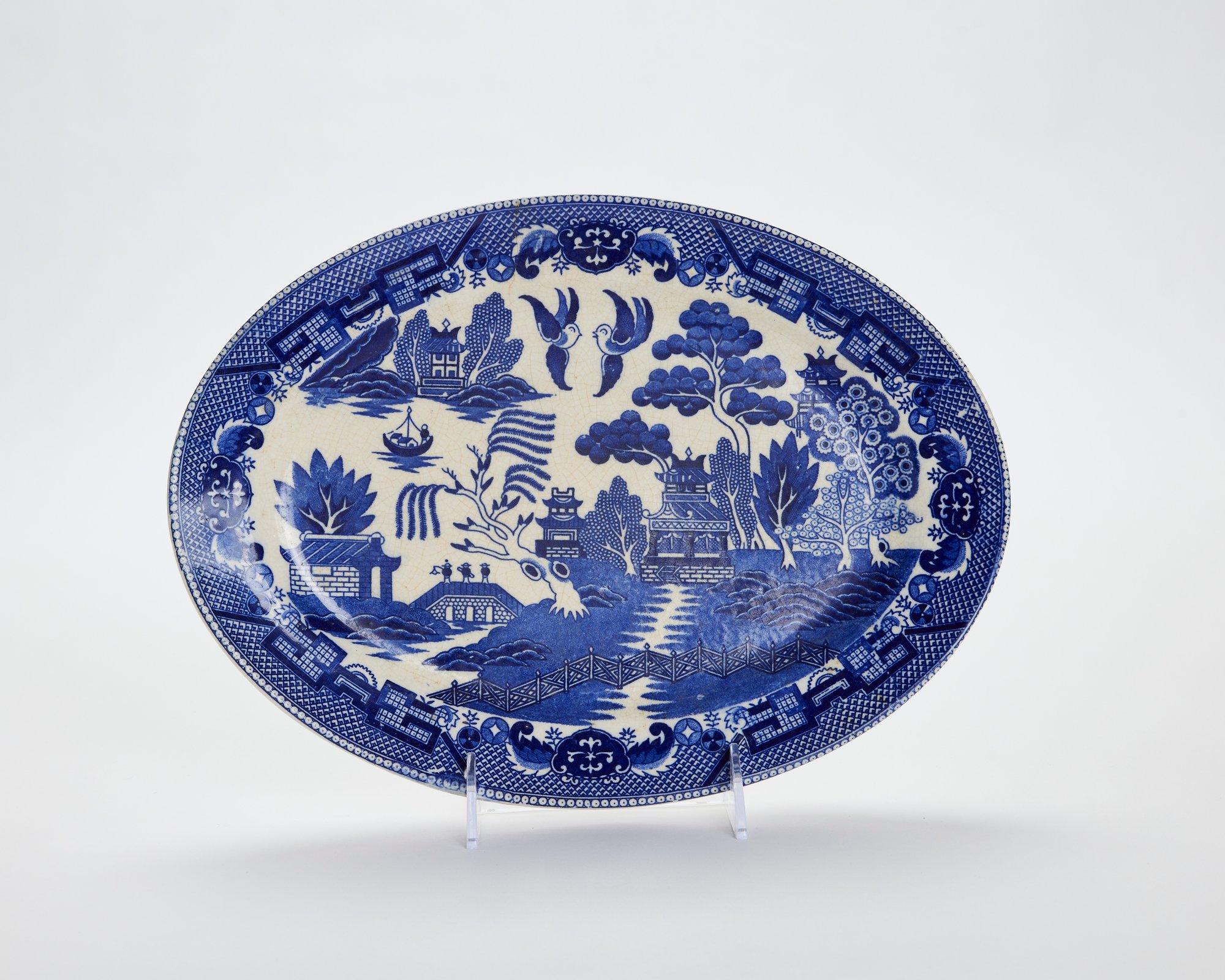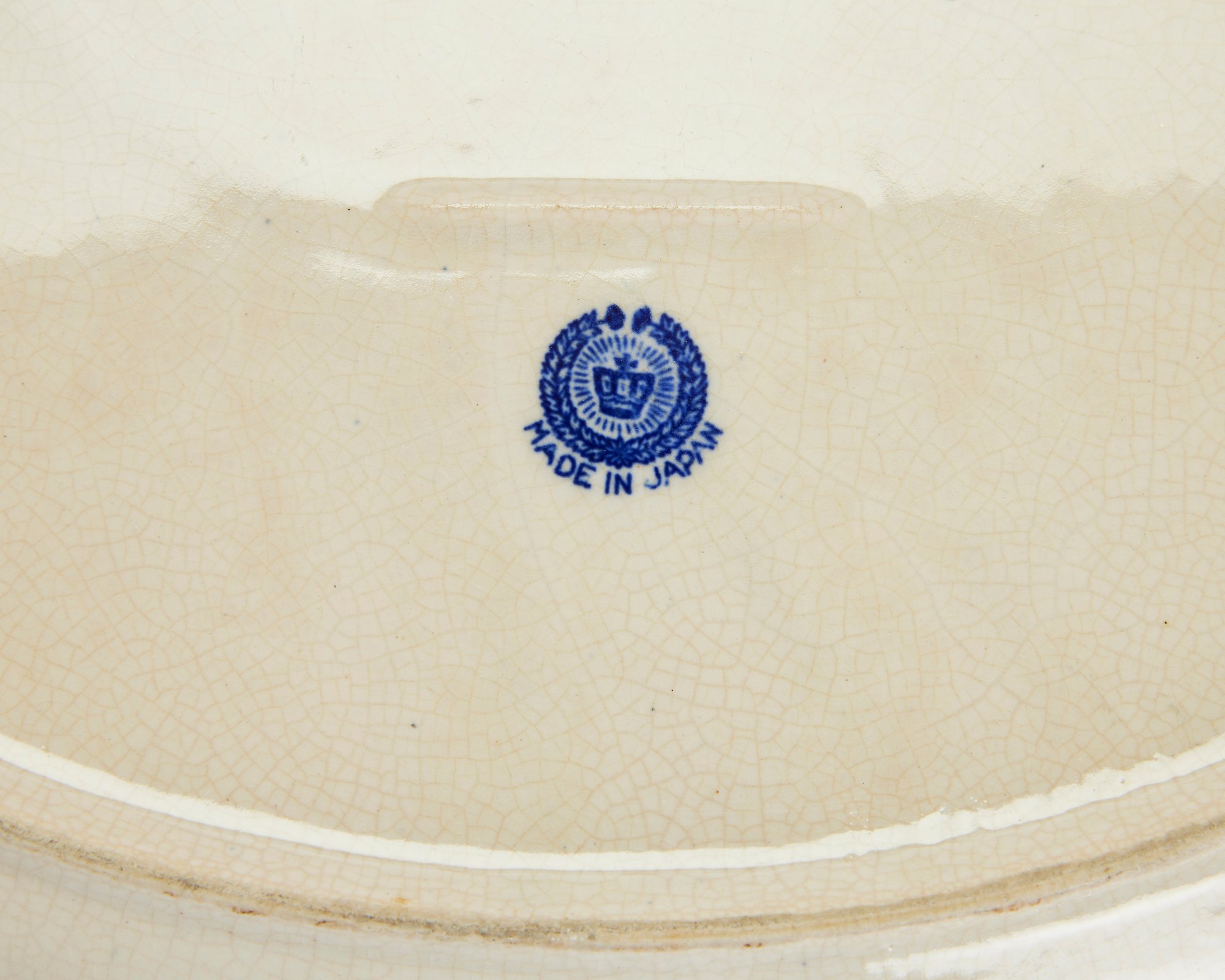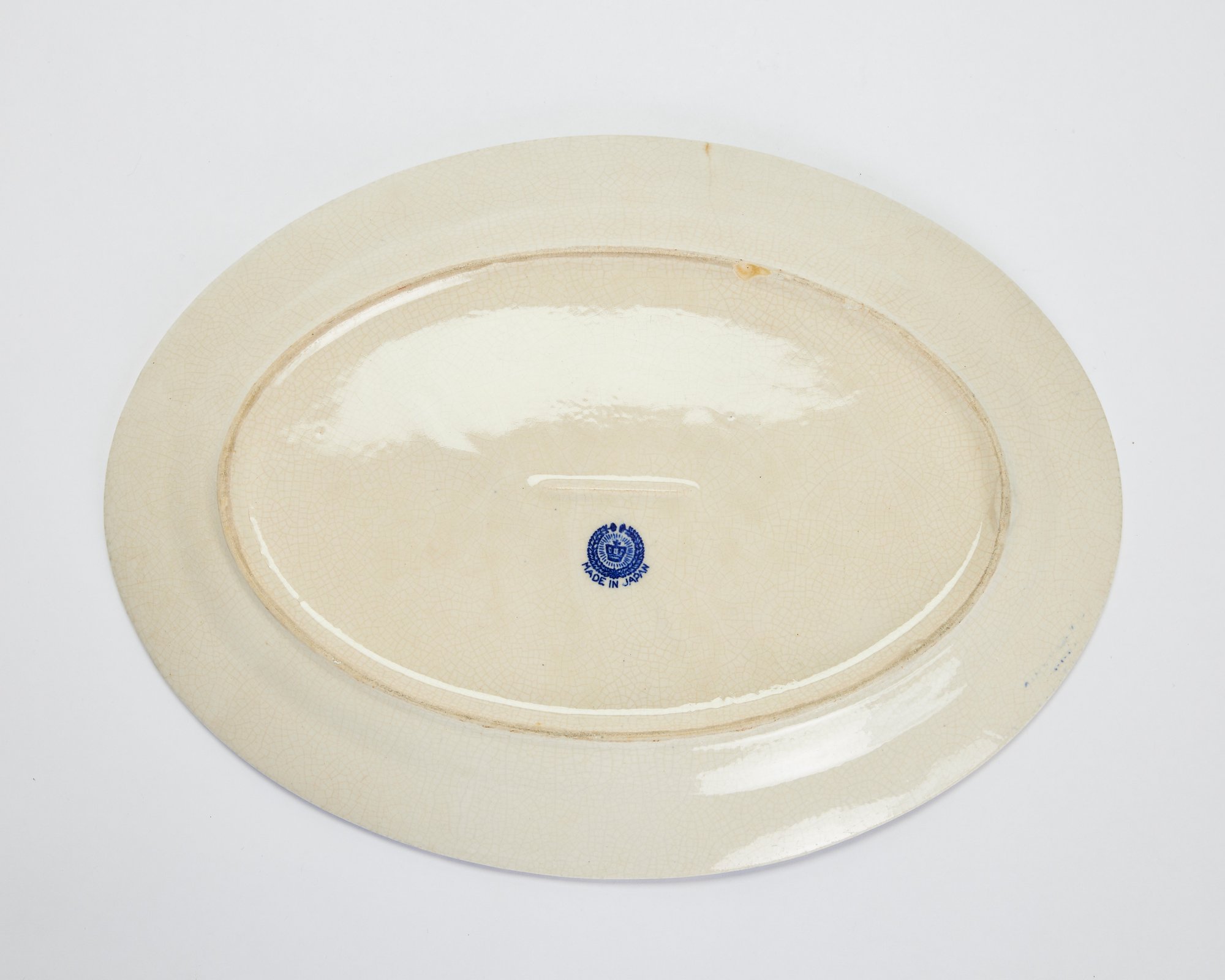 Notes: Overall crazing and color shifting, especially on platter. Chip on bottom of platter.