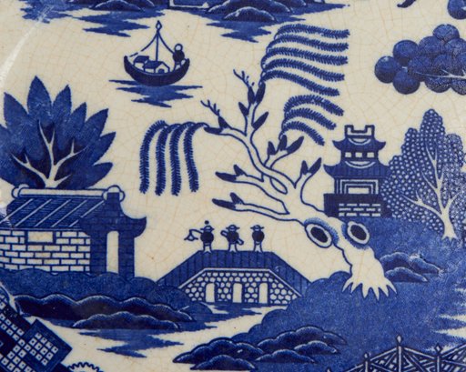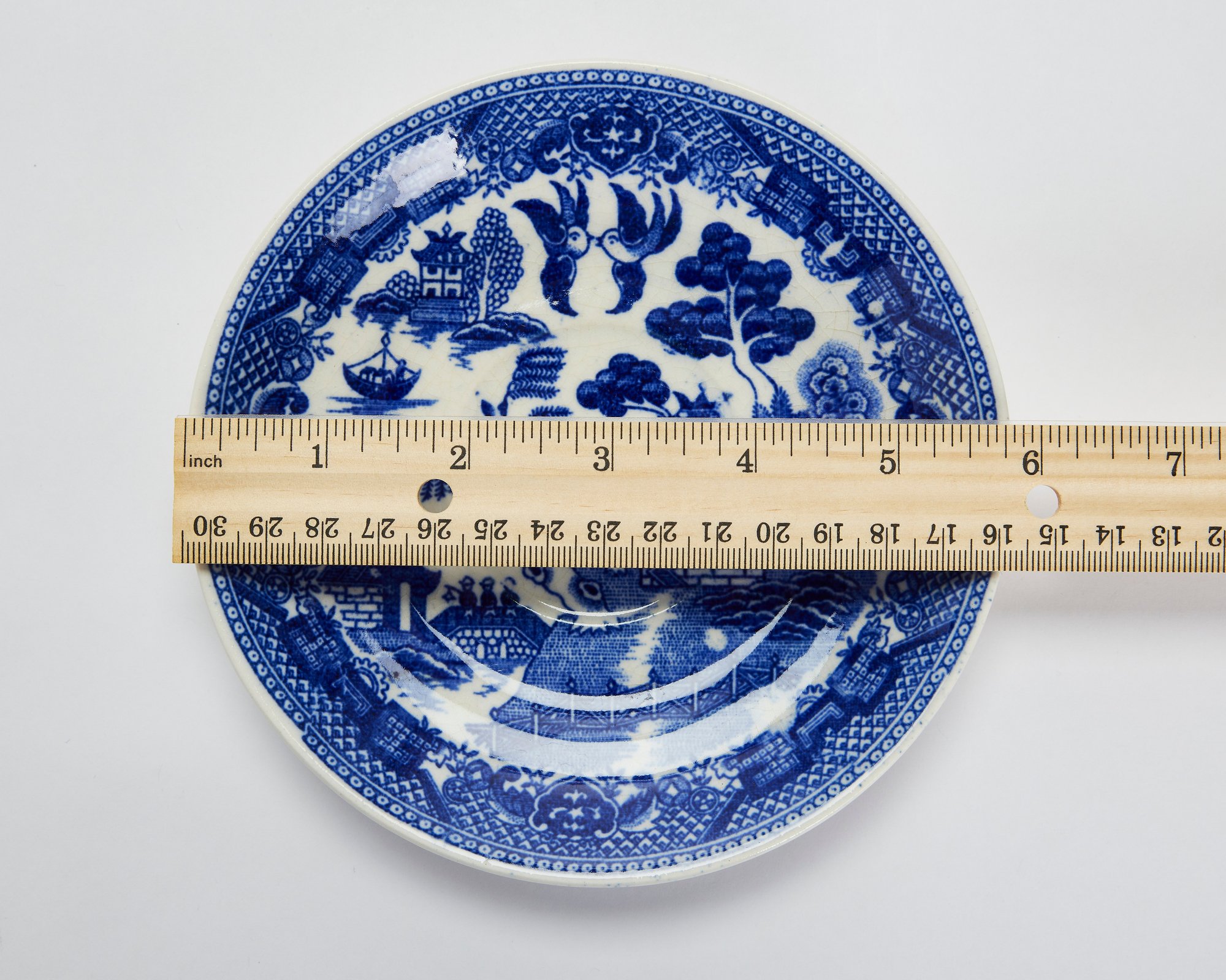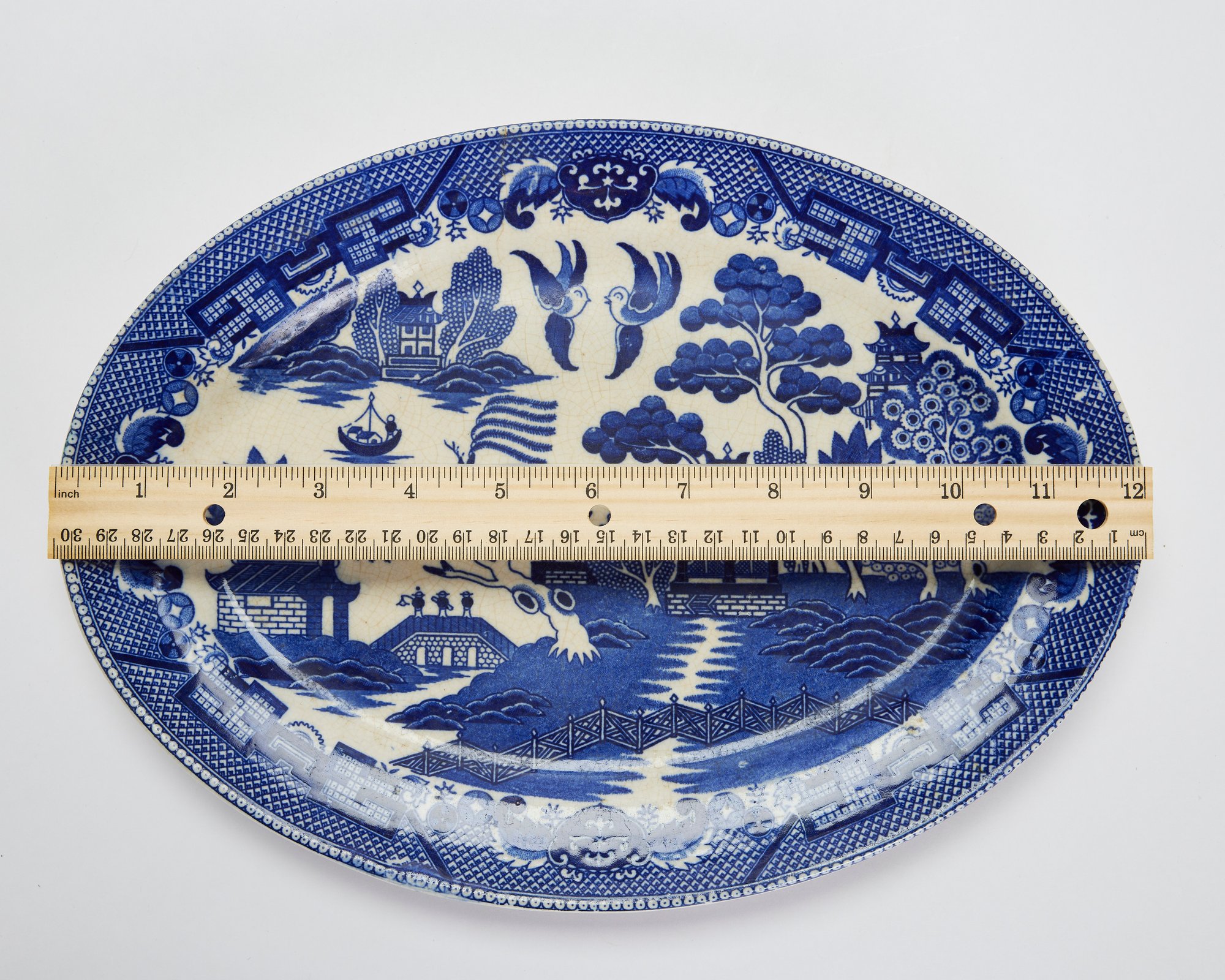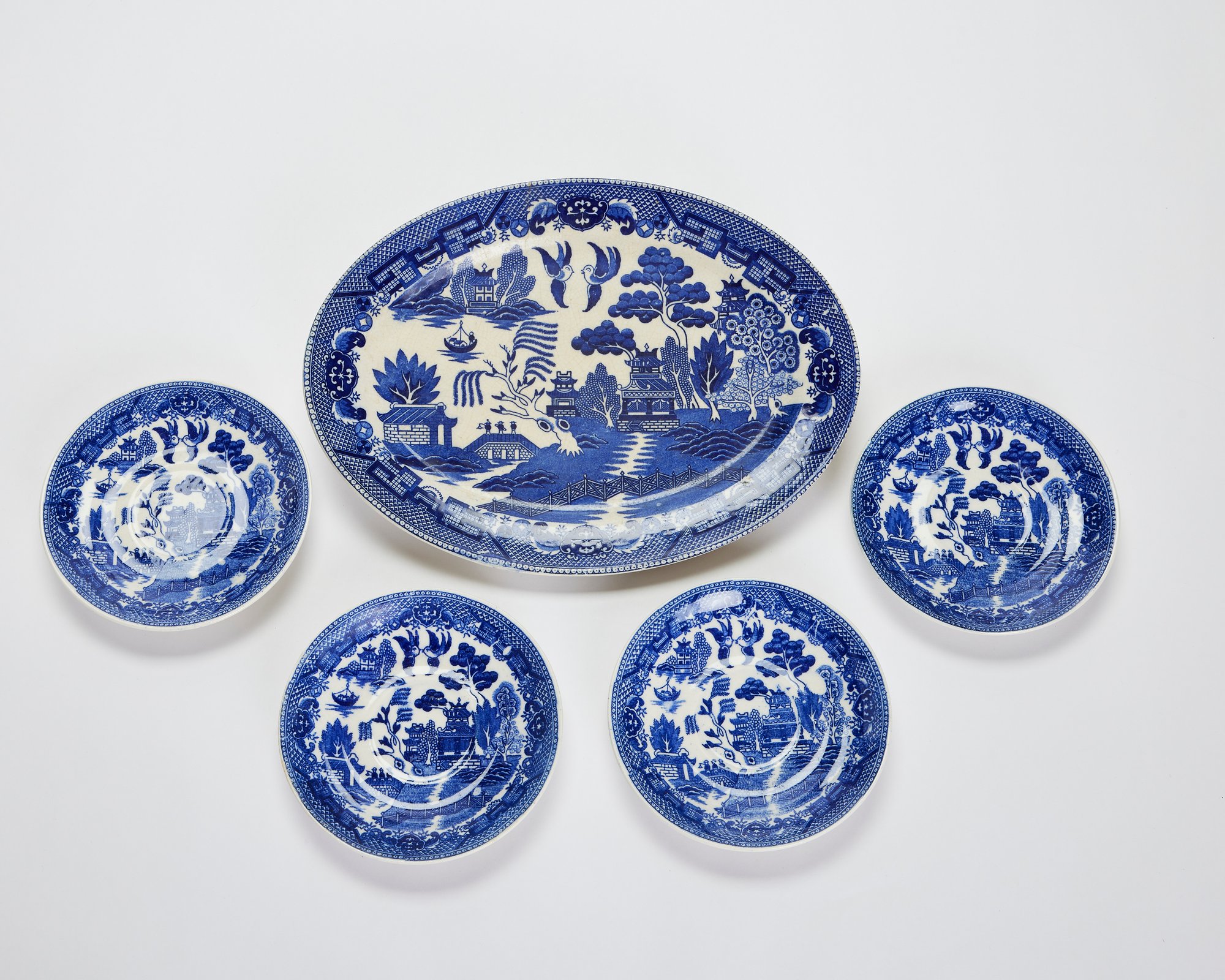 Notes: Overall crazing and color shifting, especially on platter. Chip on bottom of platter.