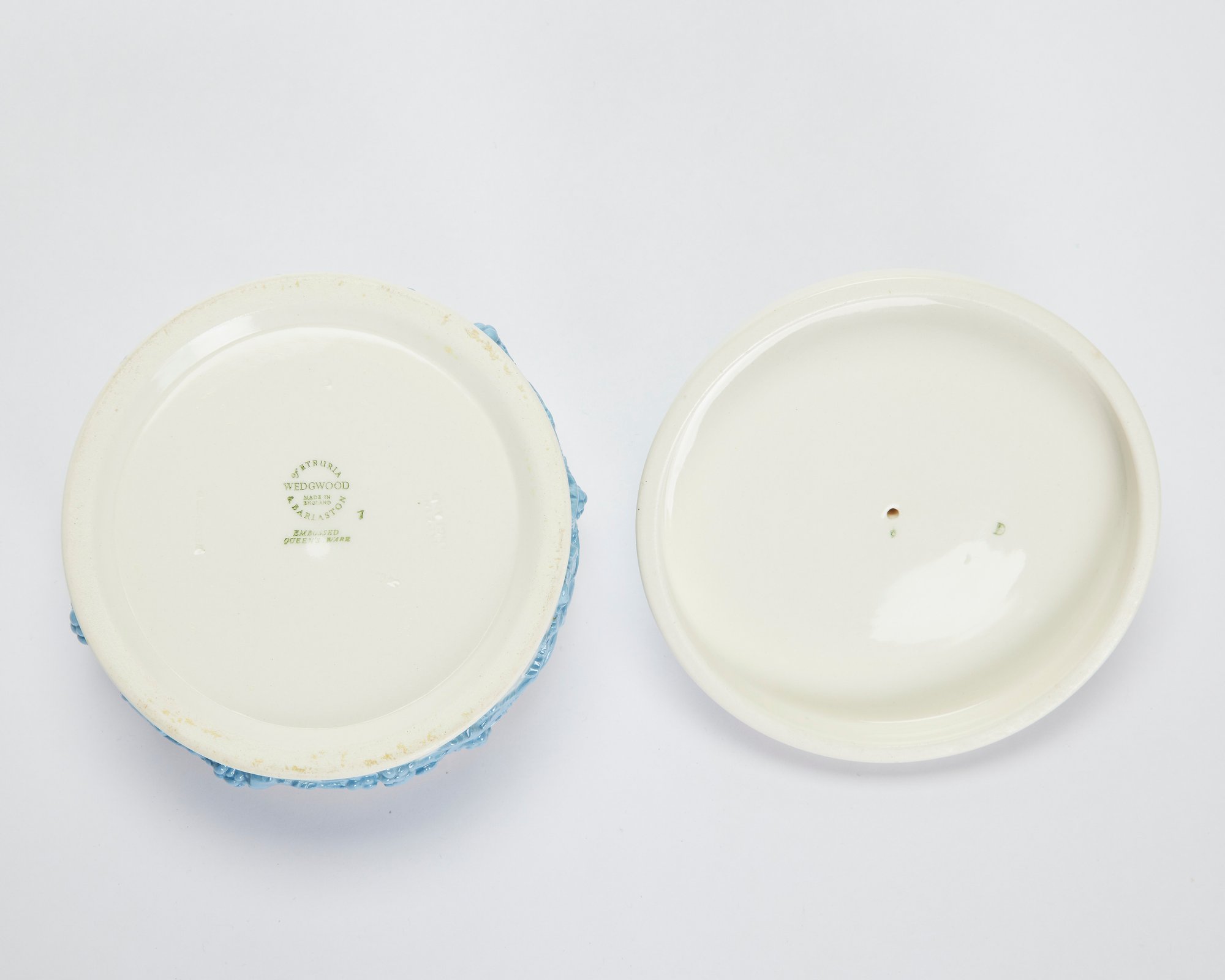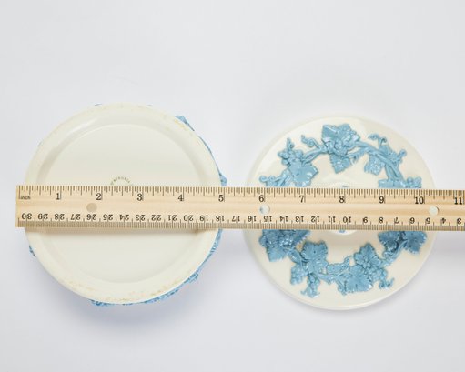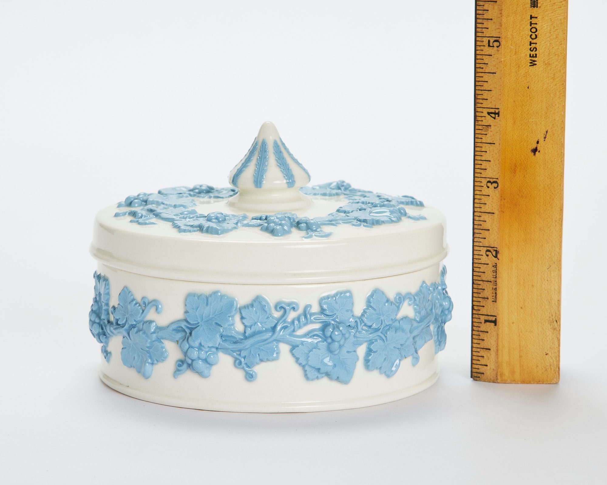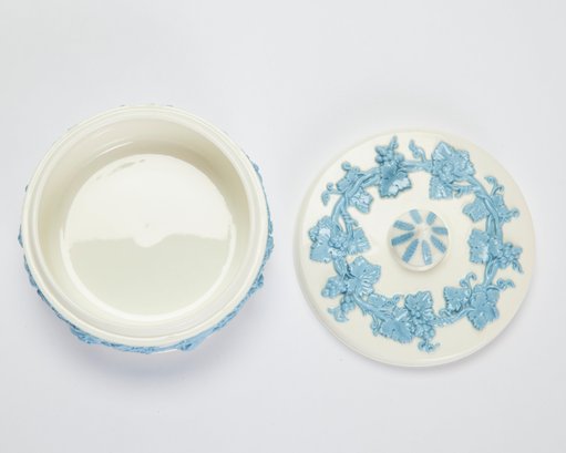 WEDGWOOD Queens Ware Embossed Grape Blue On Cream Lidded Dish