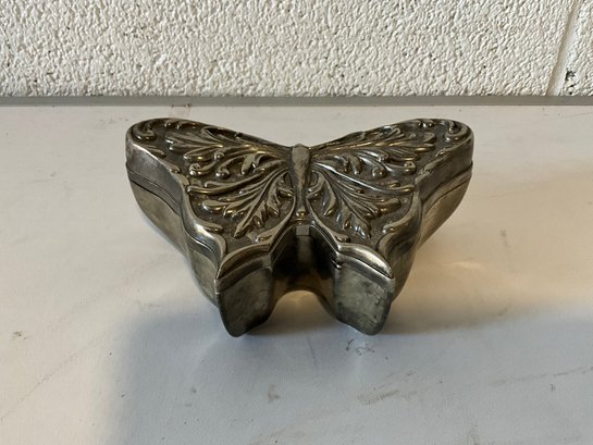 Butterfly silver-plate trinket box with lid.