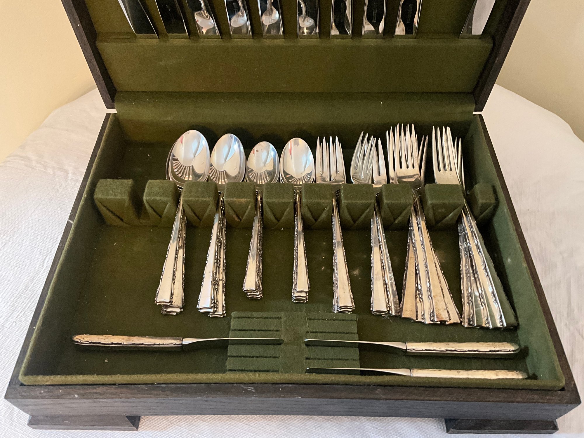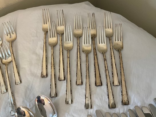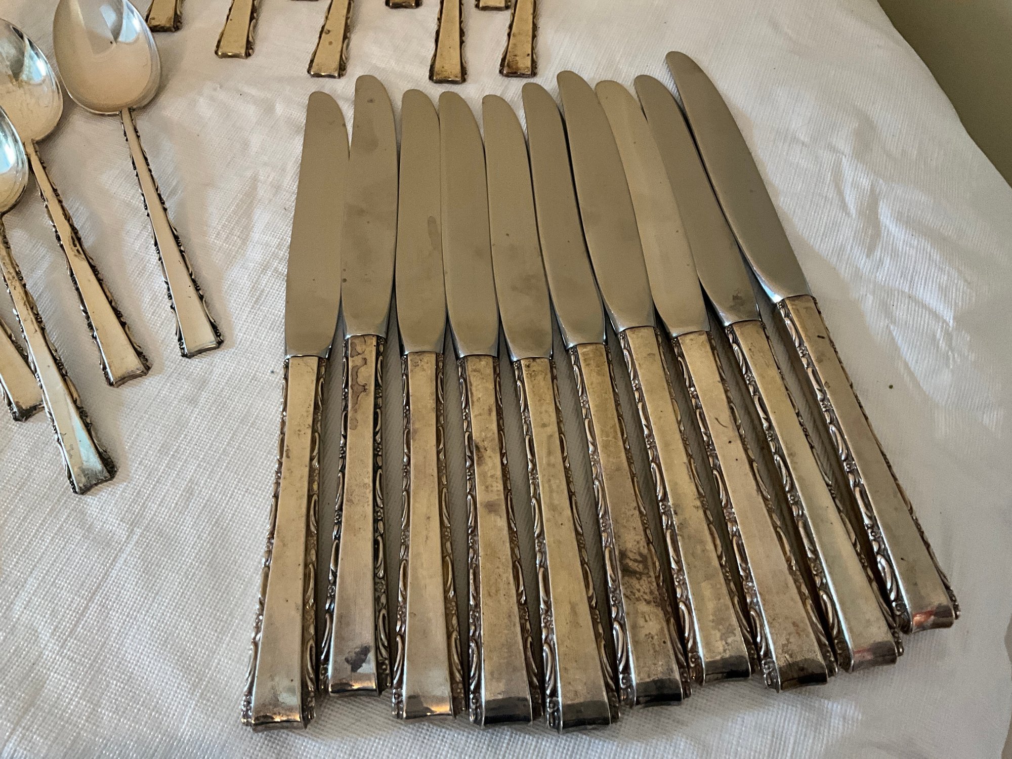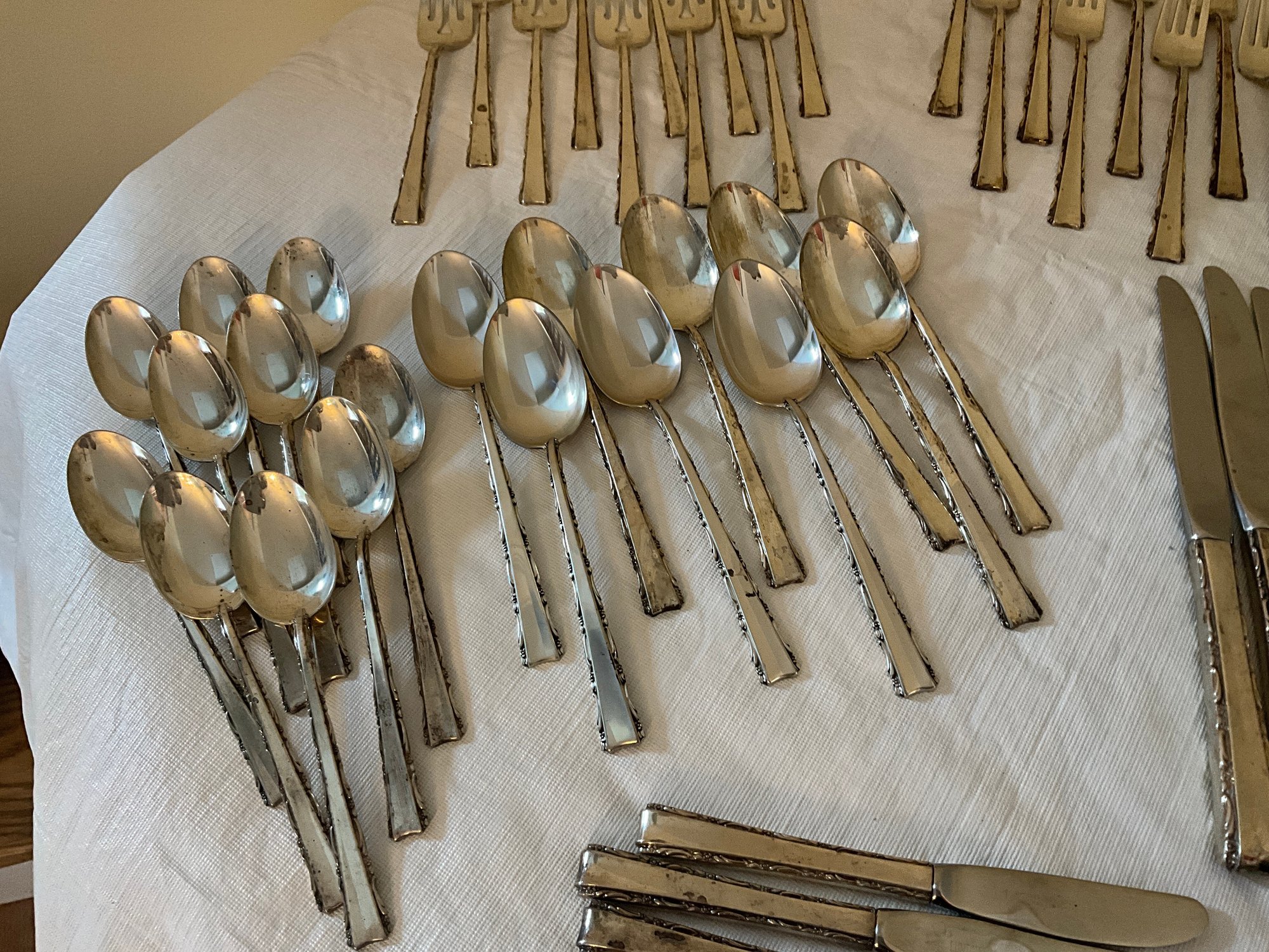 Including (10) knives, (3) butter knives, (10) dinner knives, (10) salad forks, (10) spoons and (10) small spoons.