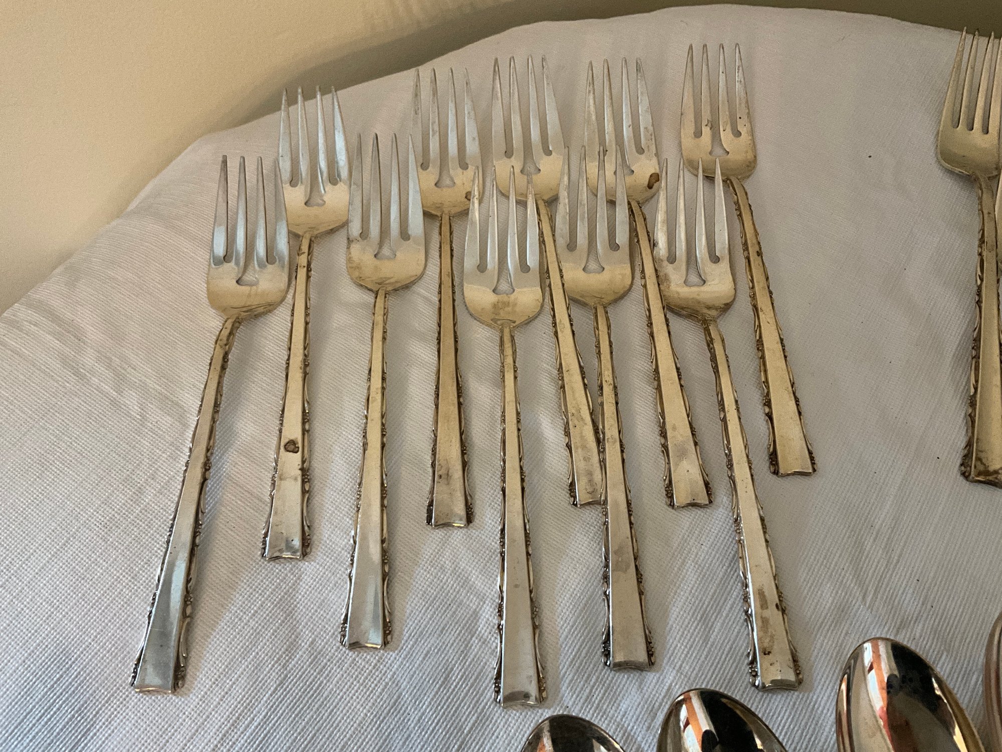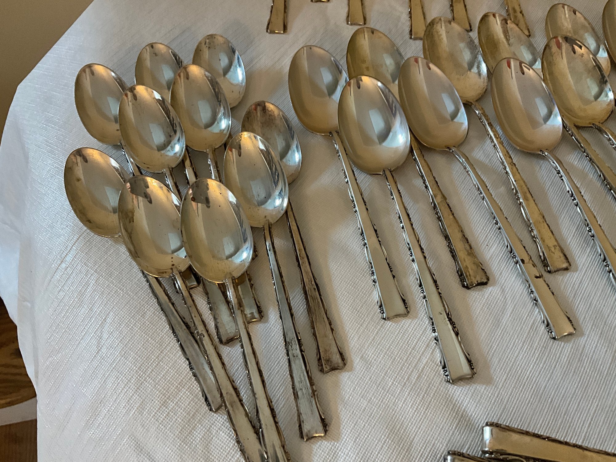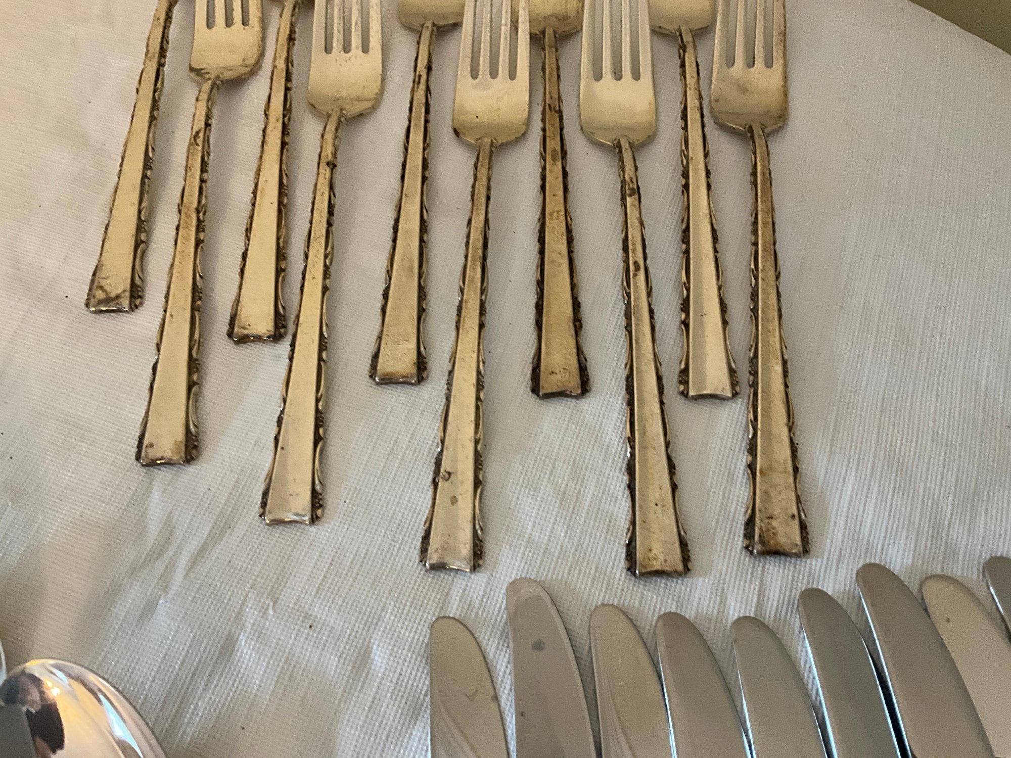 Including (10) knives, (3) butter knives, (10) dinner knives, (10) salad forks, (10) spoons and (10) small spoons.