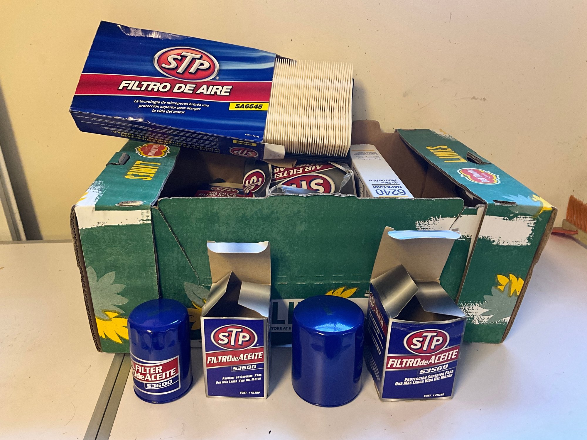 Including oil filter and air filters.