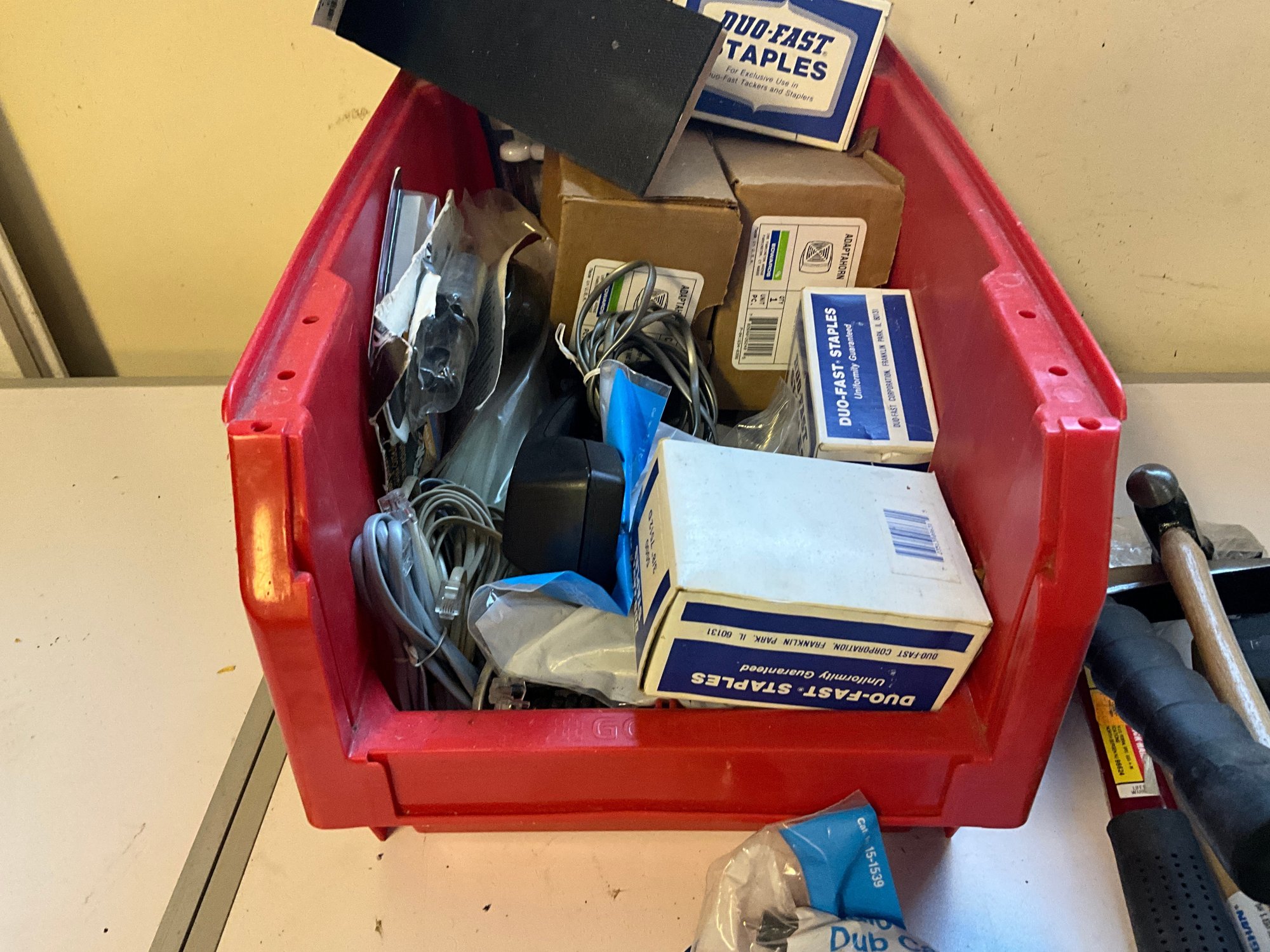 Grouping Of Miscellaneous Garage And Household Items - Hand Tools, Electrical, Staples And More.