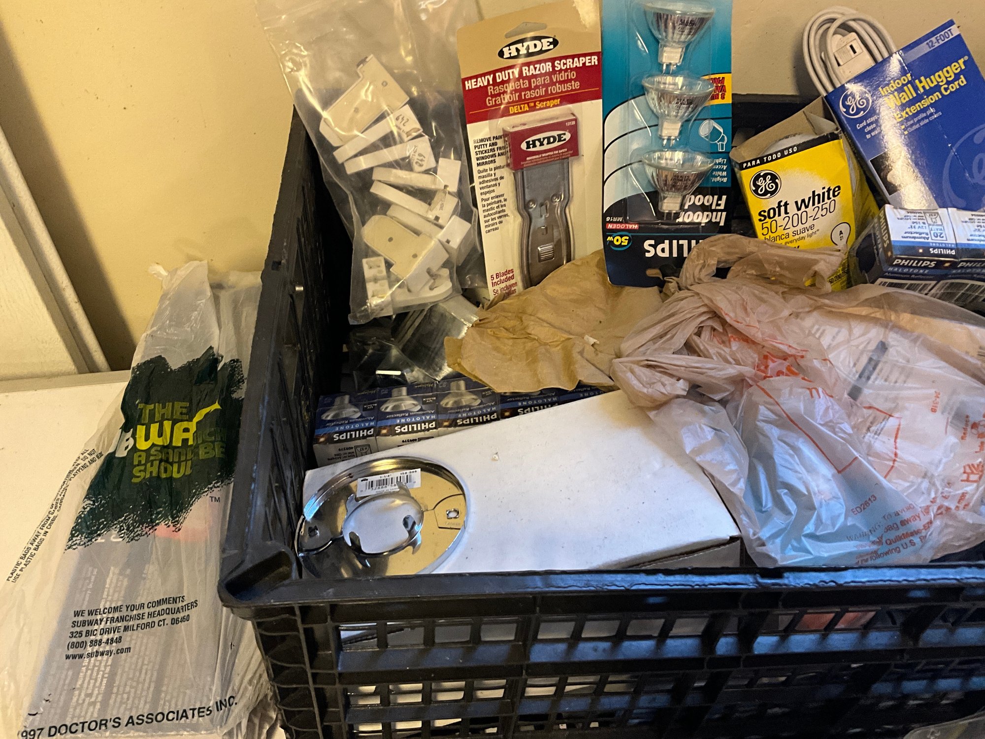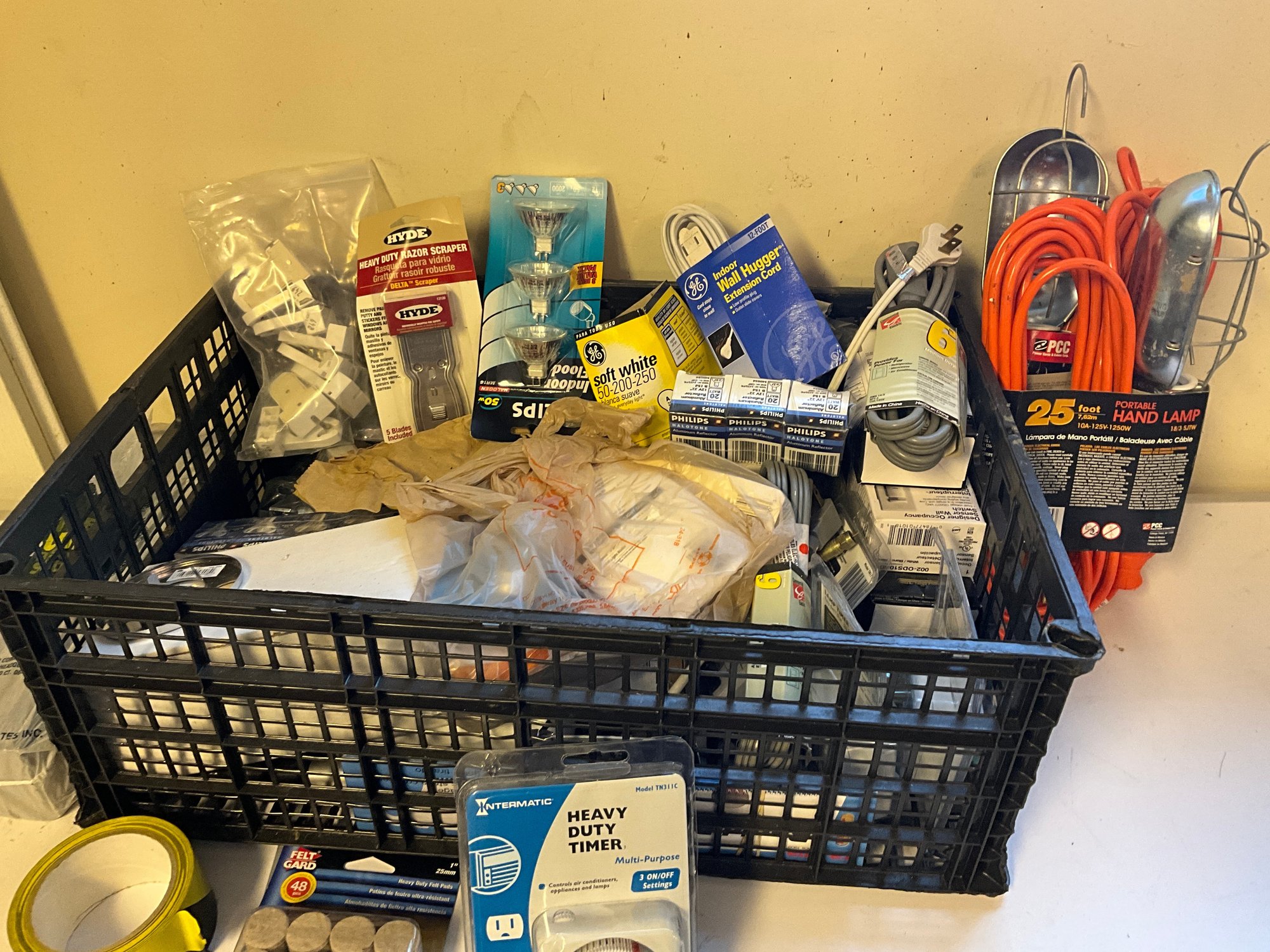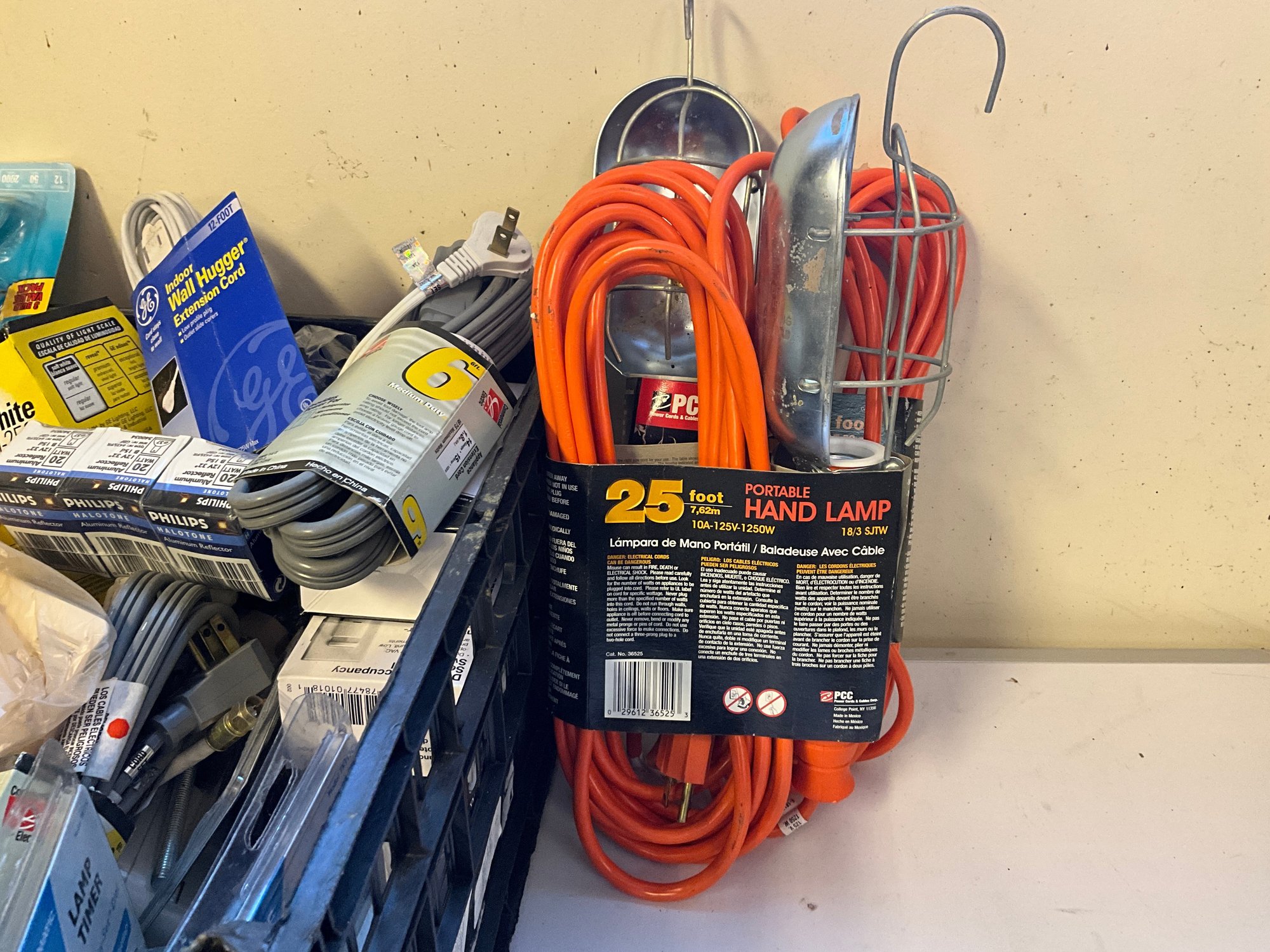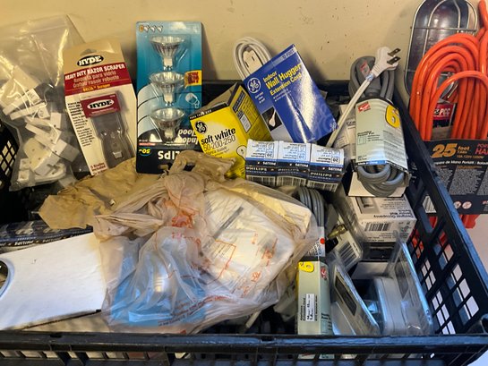 Grouping Of Miscellaneous Garage And Household Items - Lightbulbs, Extension Cords, Hardware And More.