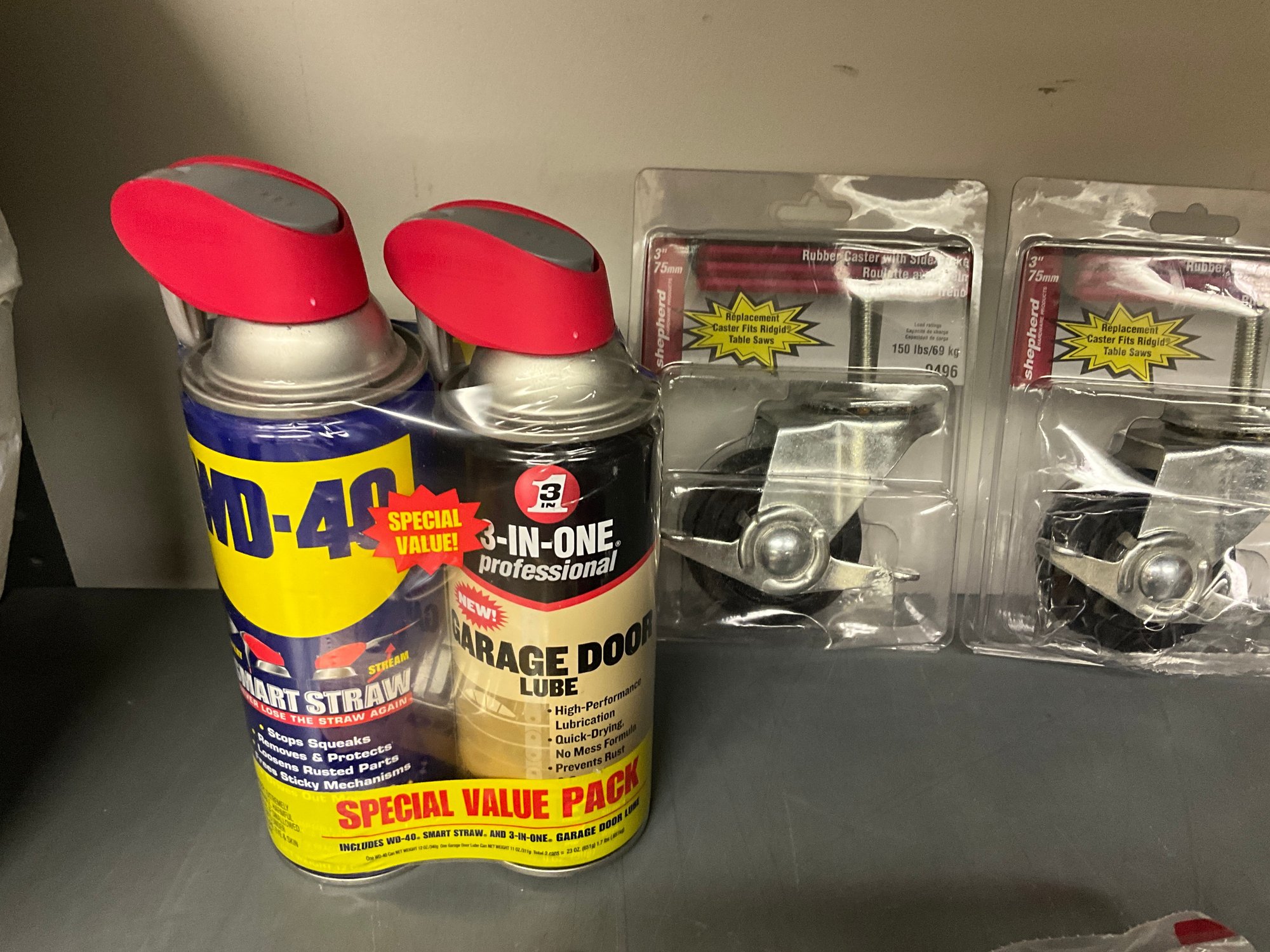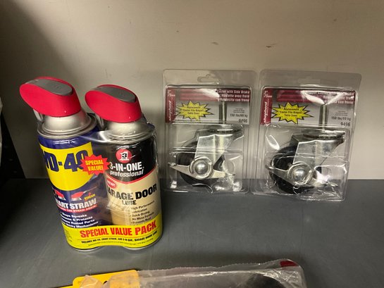 Grouping Of Miscellaneous Garage Items - Casters, WD-40 And More.