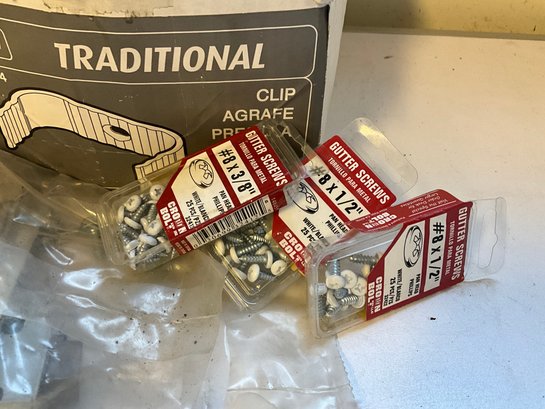 Grouping Of Miscellaneous Gutter Supplies And Parts - Hardware, Clips And More.