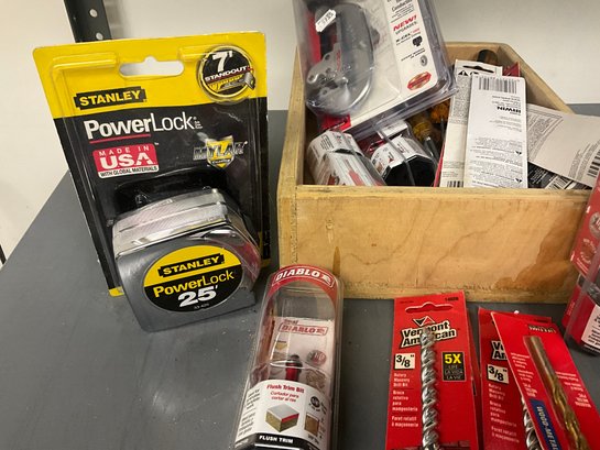 Grouping Of Miscellaneous Hardware And Hand Tools - Drill Bits, Screw Drivers And More.