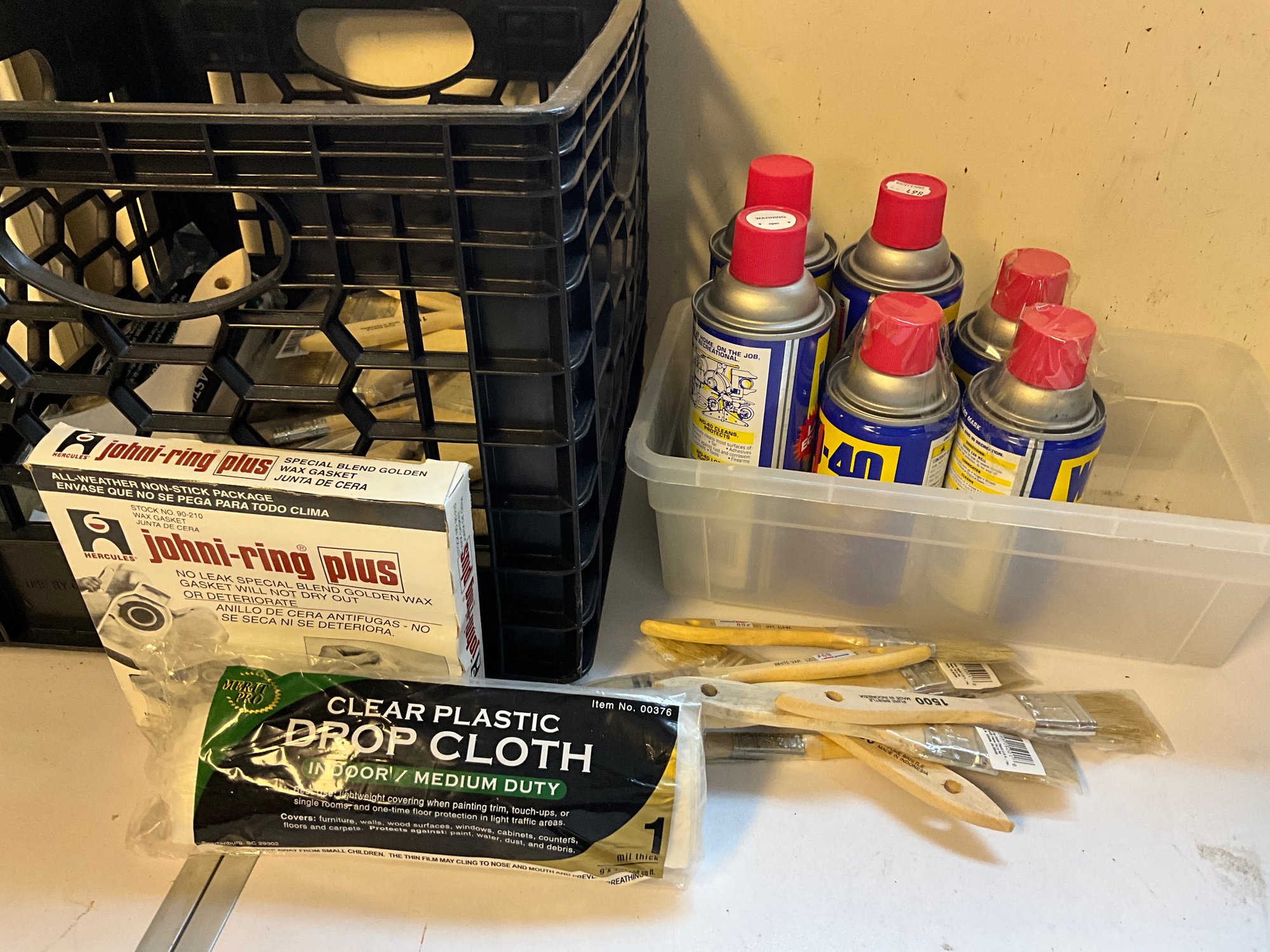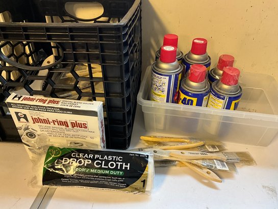 Grouping Of Miscellaneous Items - WD-40, Paint Brushes And More.,