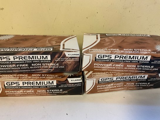 Including (4) boxes of XL power free vinyl gloves.