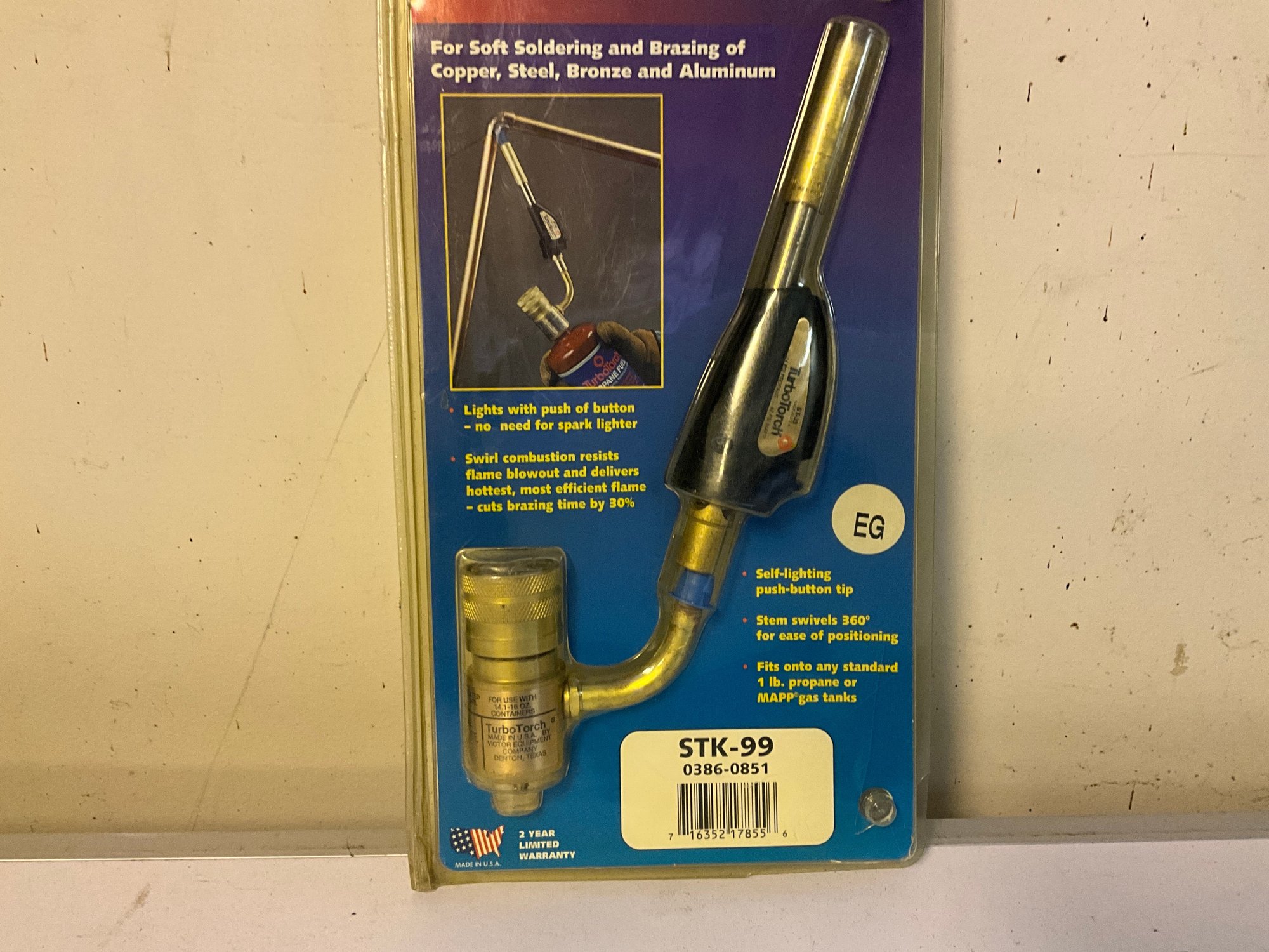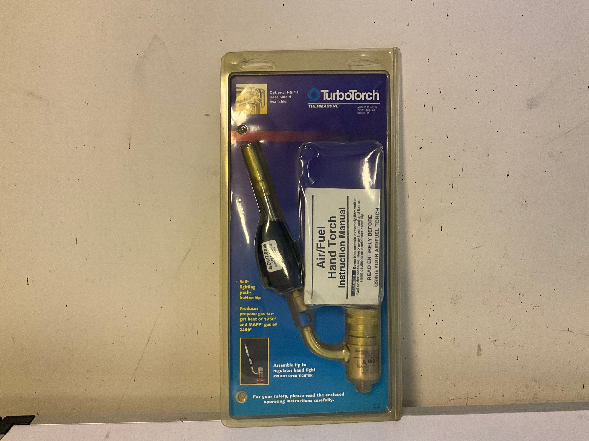 Self-lighting hand torch.