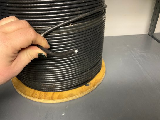Good amount of cable on wooden spool. No labels, wire is unmarked.