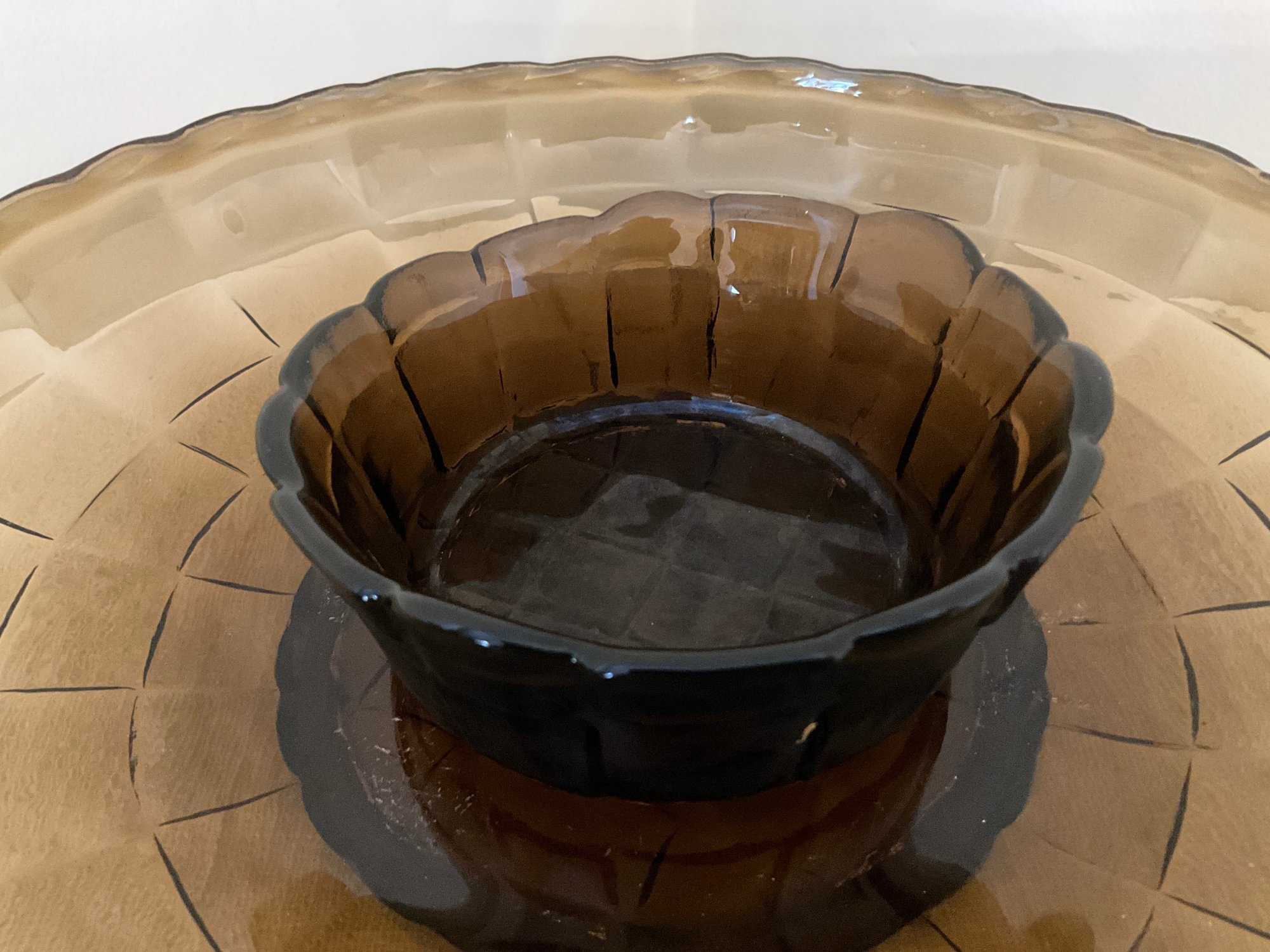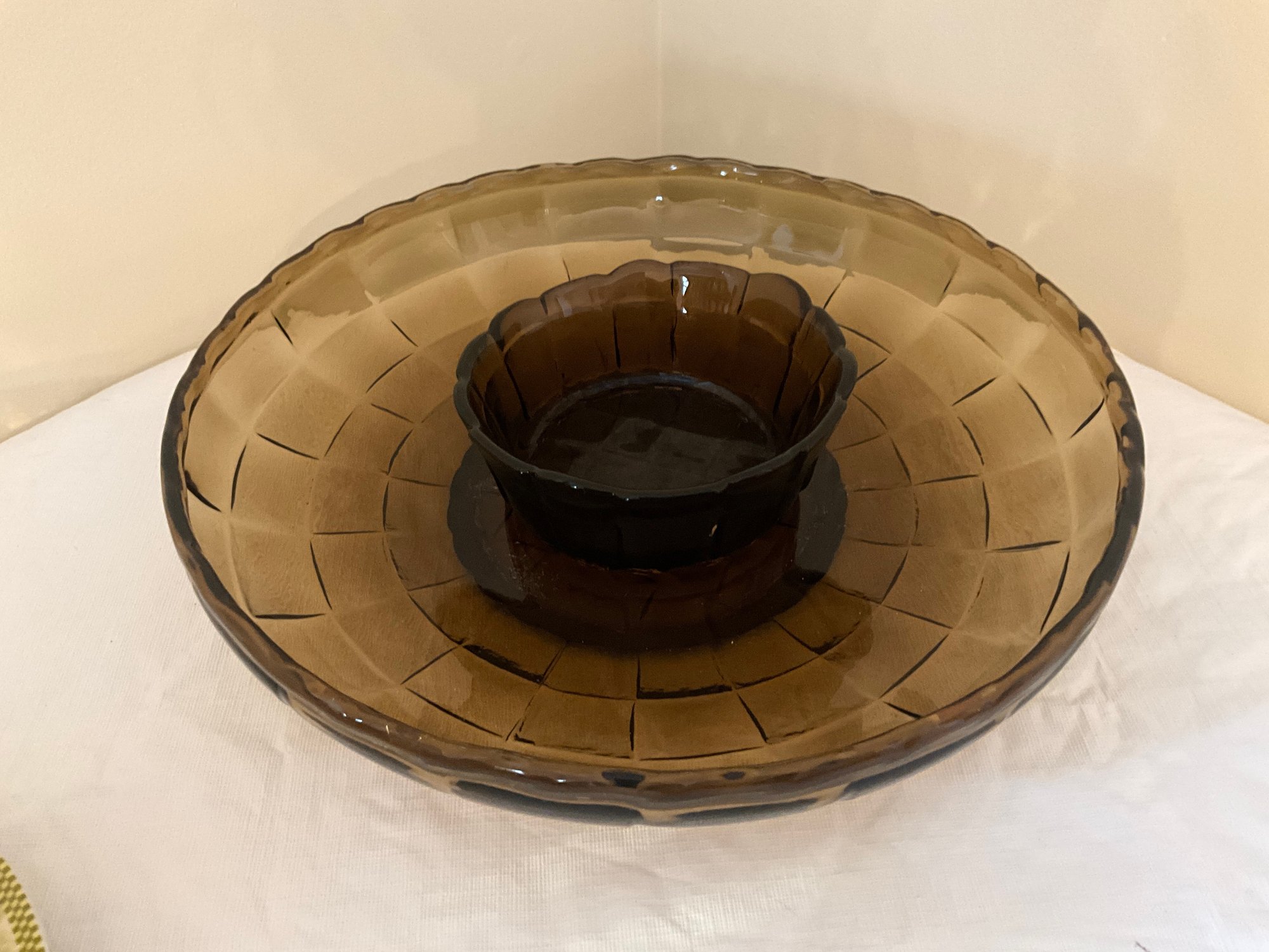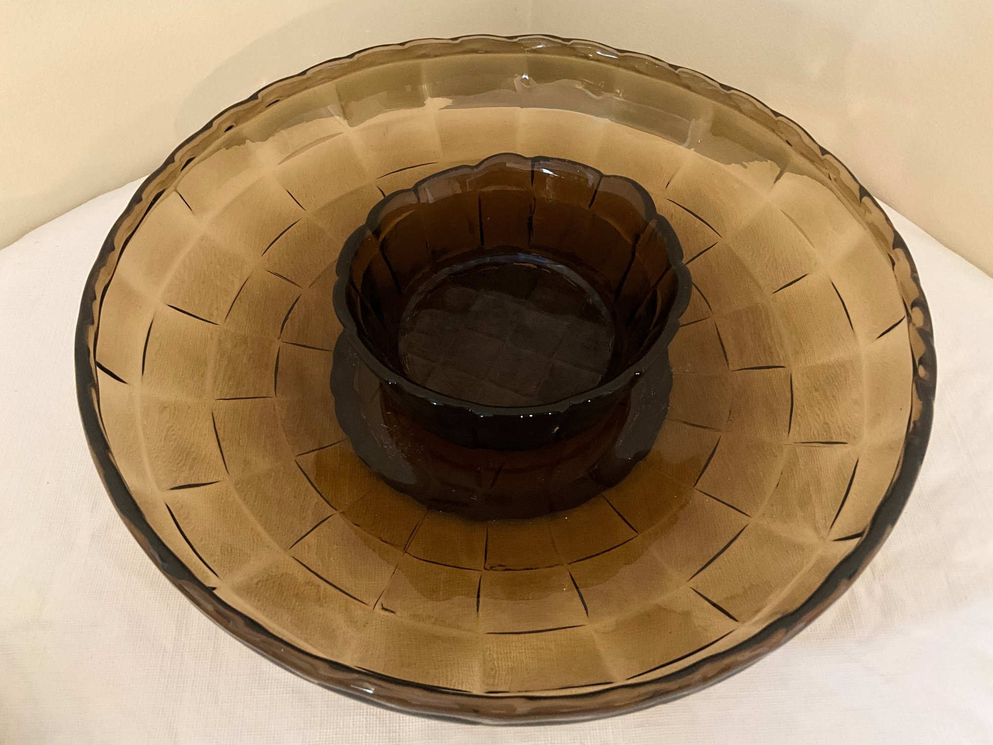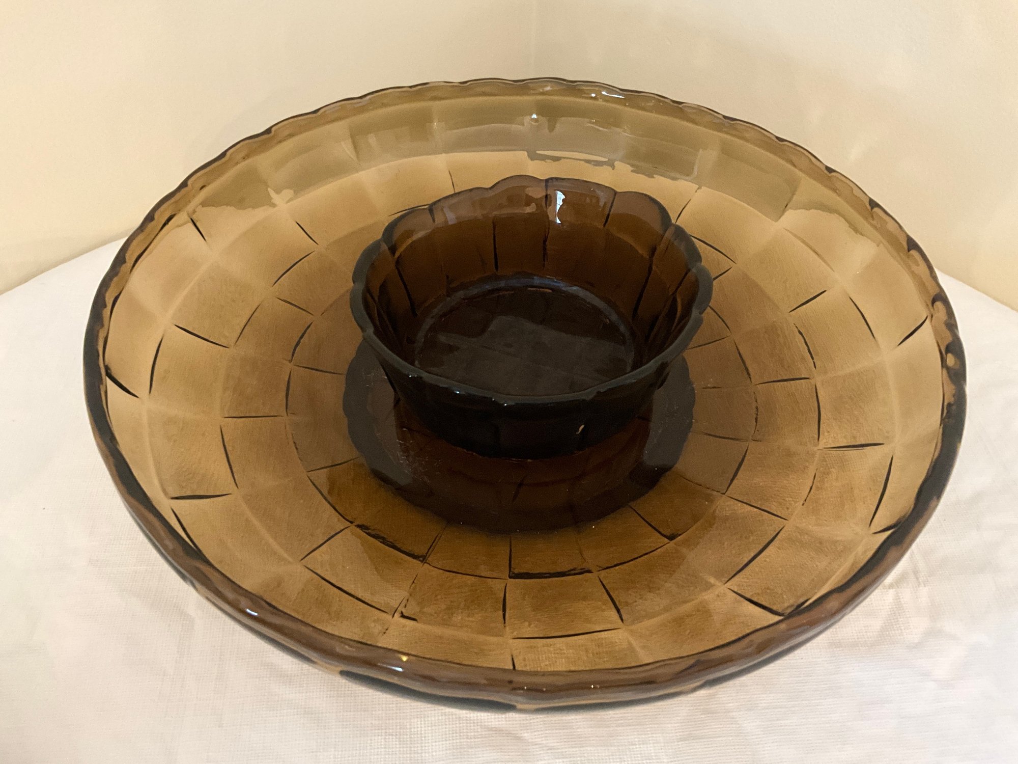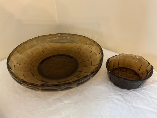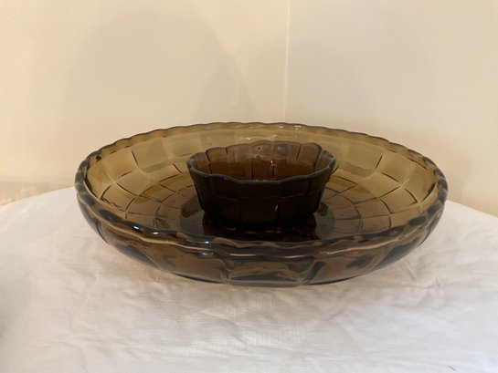Woven brown glass chip and dip set.