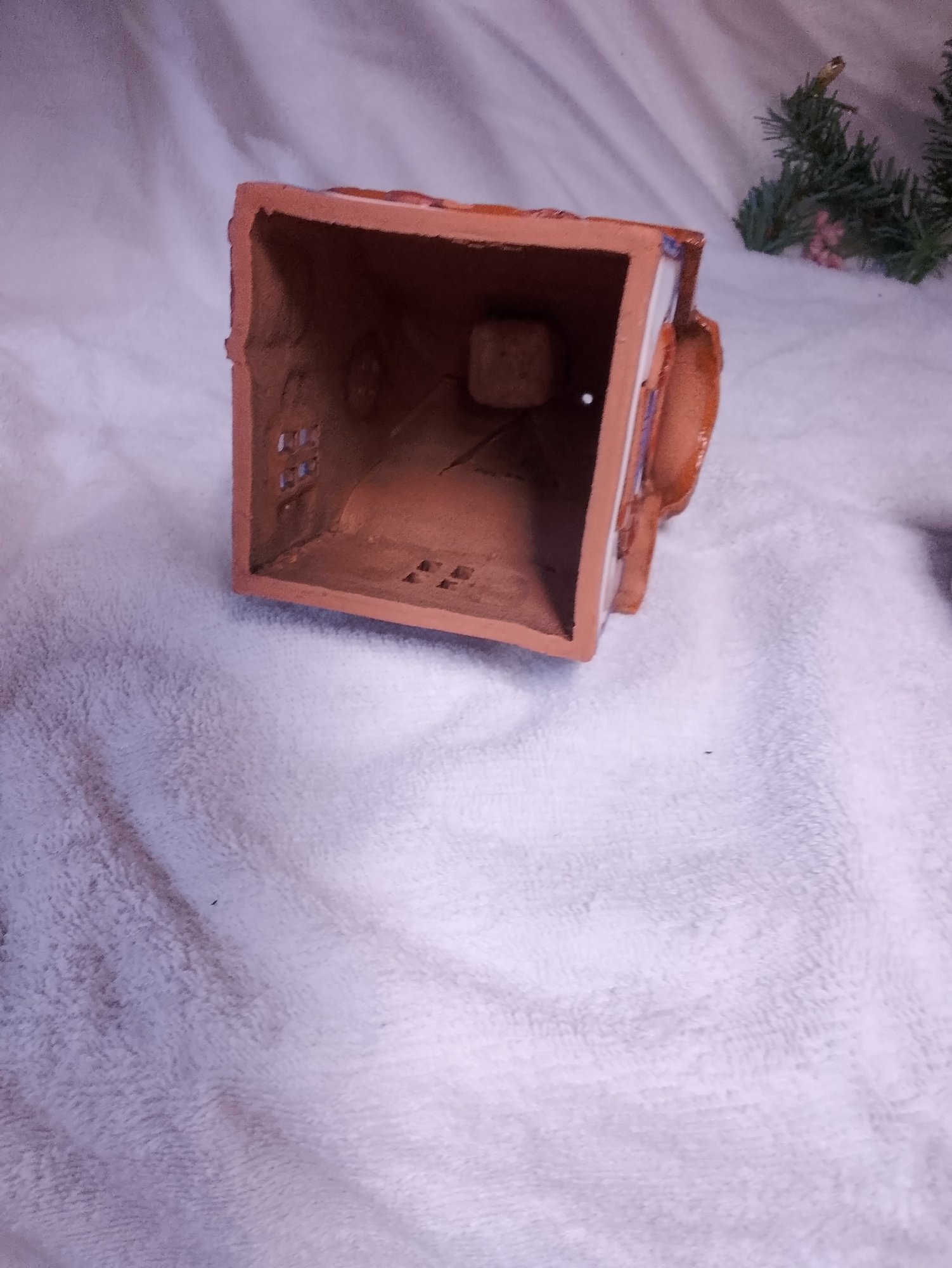 European 5x4x5 made of clay, can sit atop a votive,high glaze finish