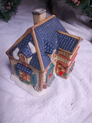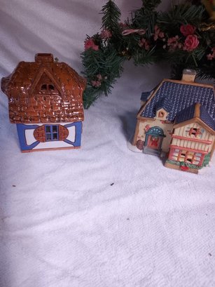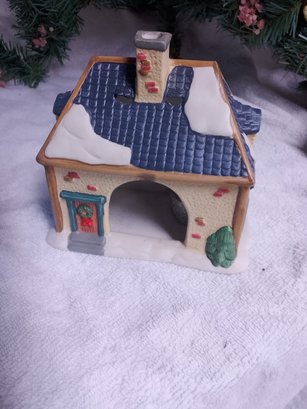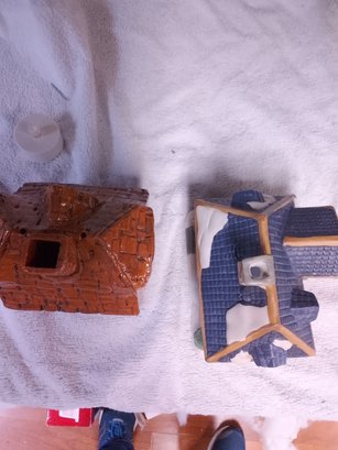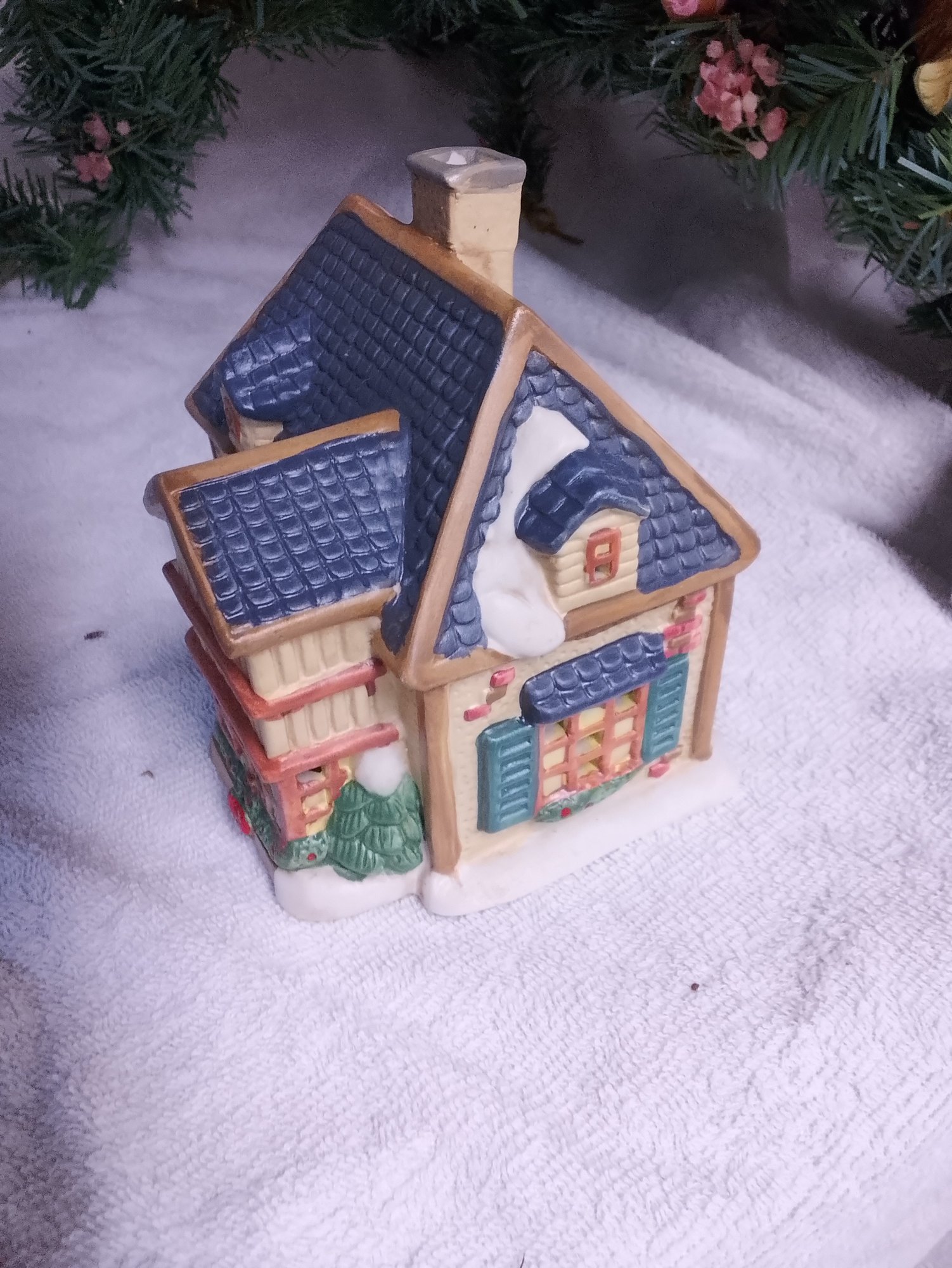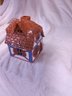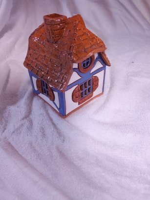 Leaning towards blue colors. Ceramic with hole for votive 5x4x5 is ceramic