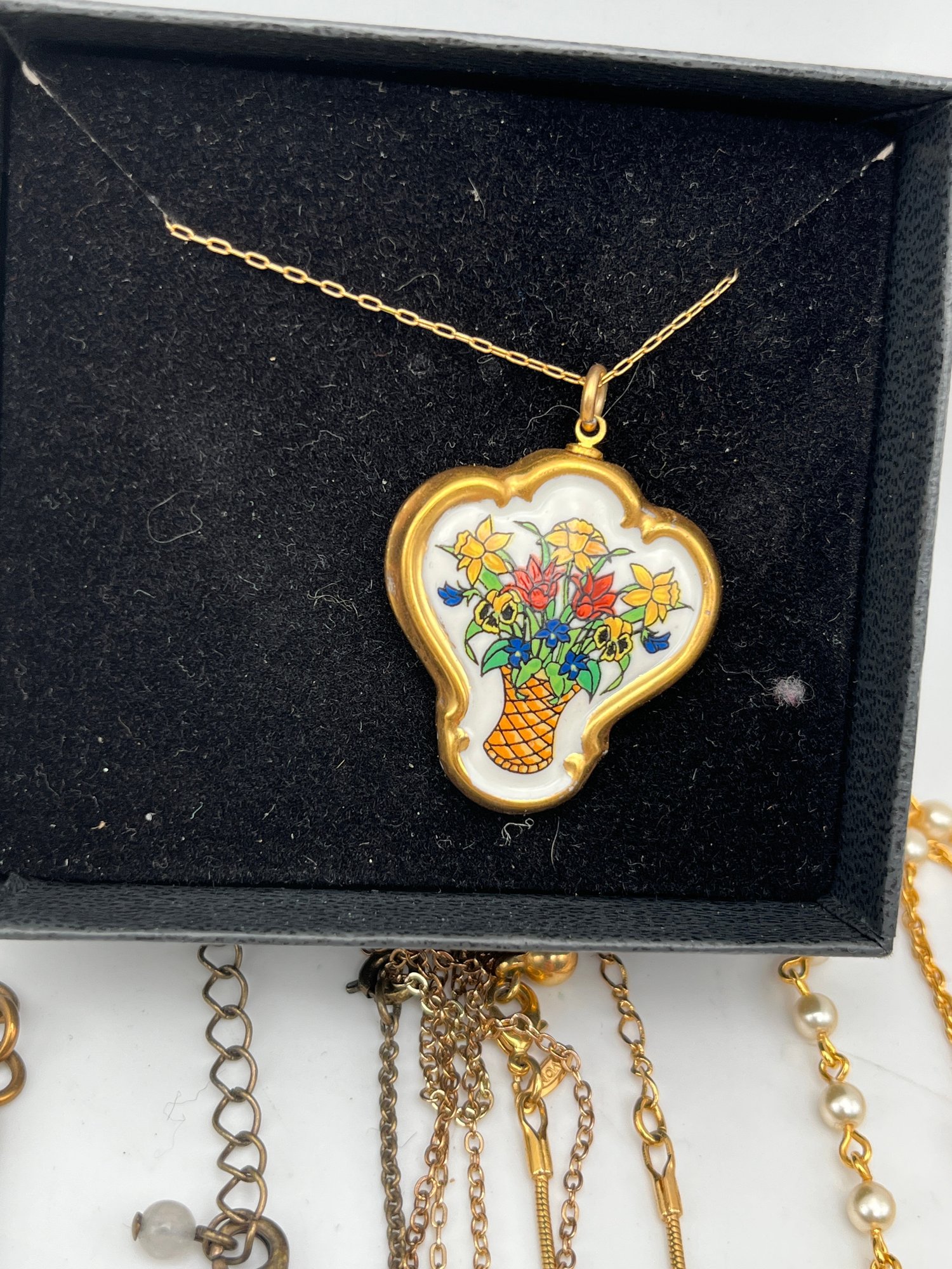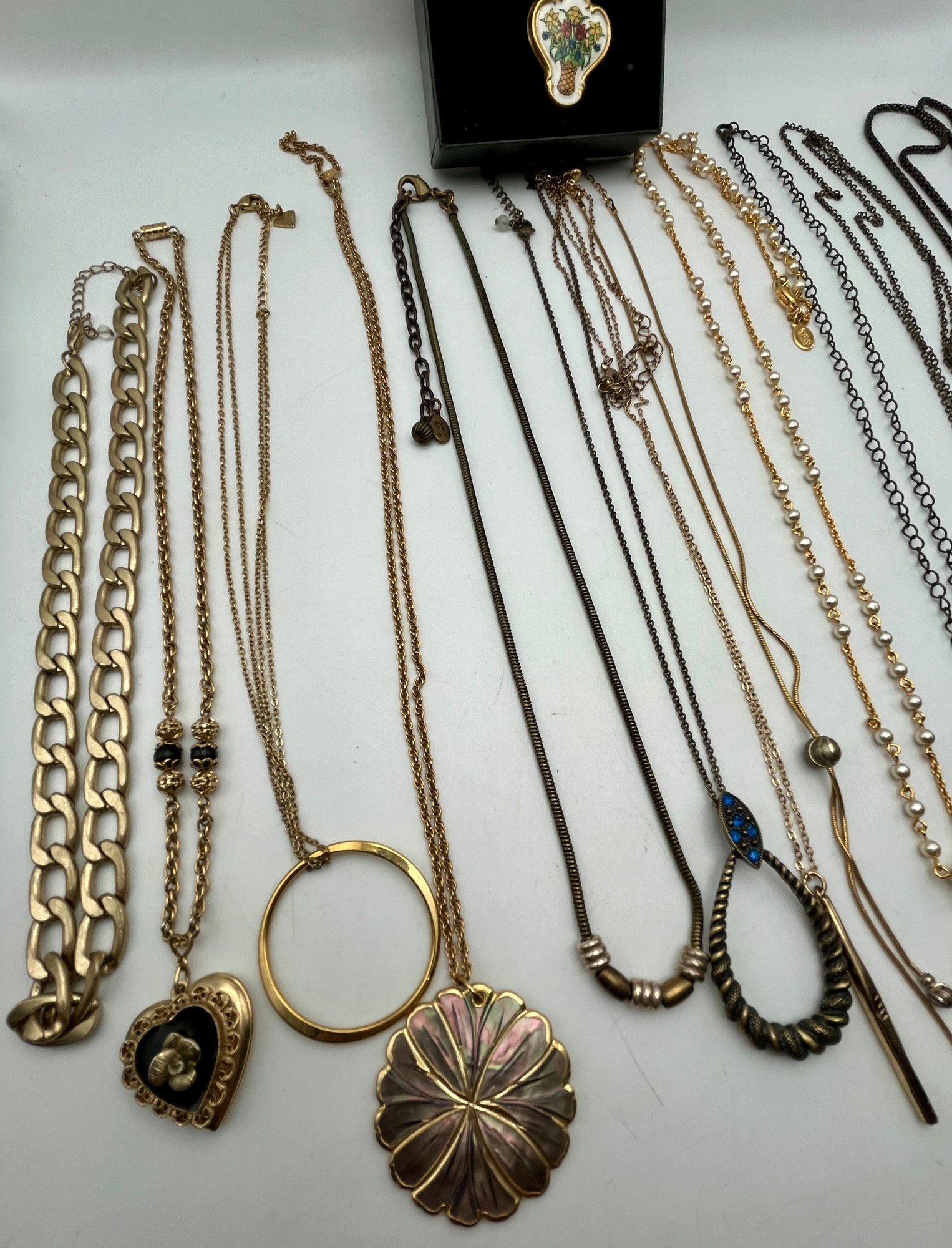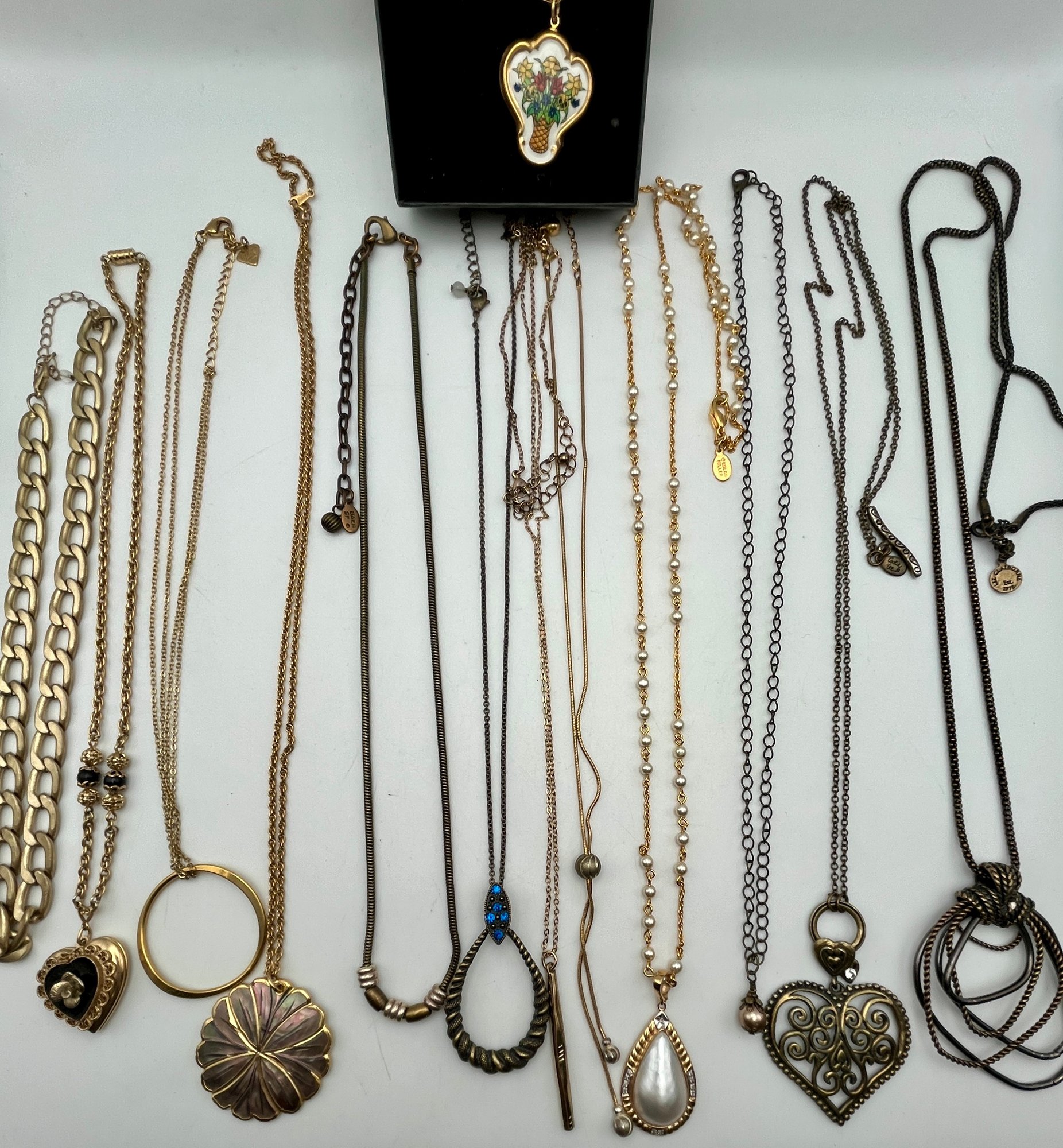 13 Necklaces- Nolan Miller, Cookie Lee, Baer Sf, Avon, Liz Claiborne and NIB Franklin porcelain