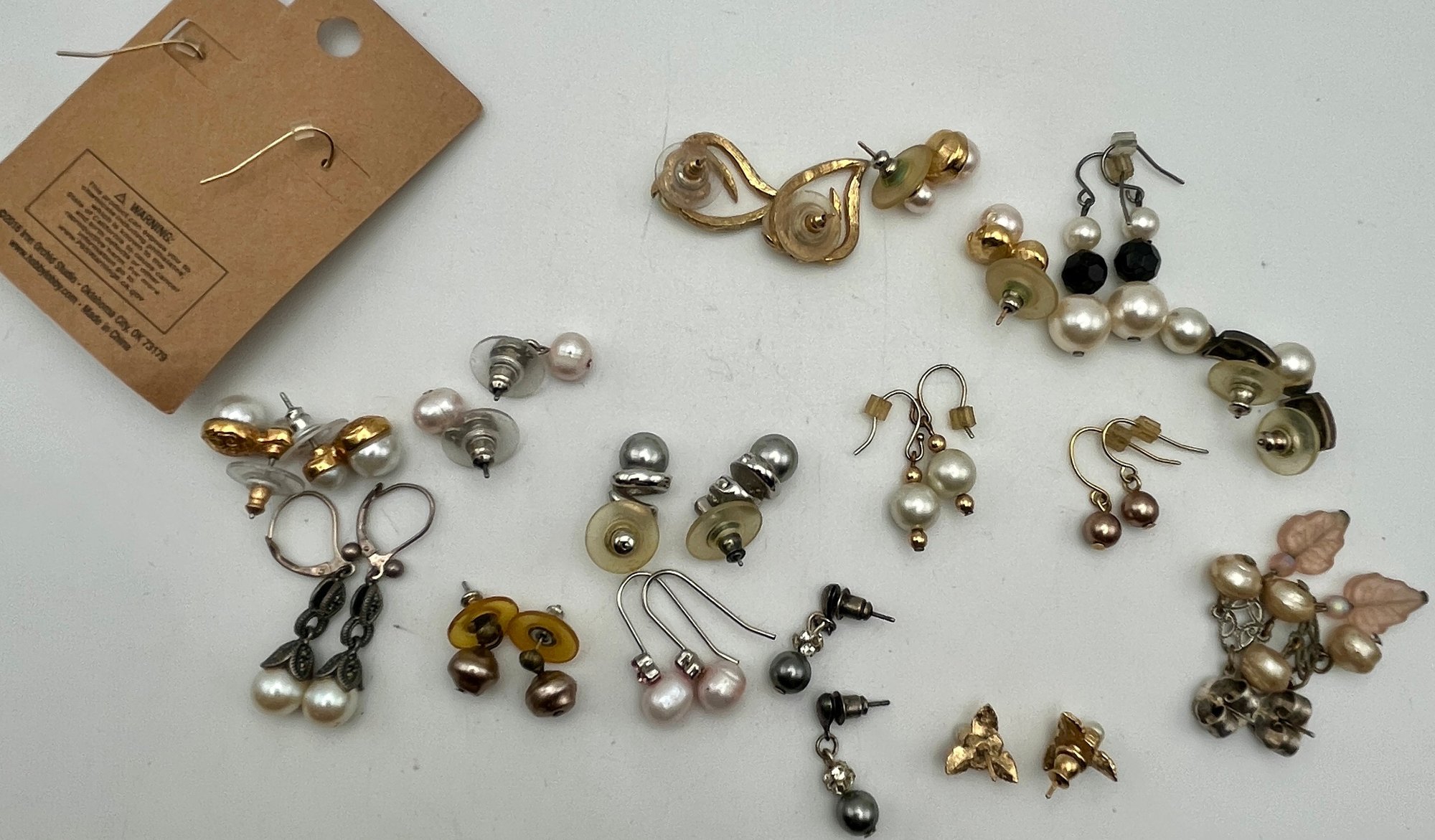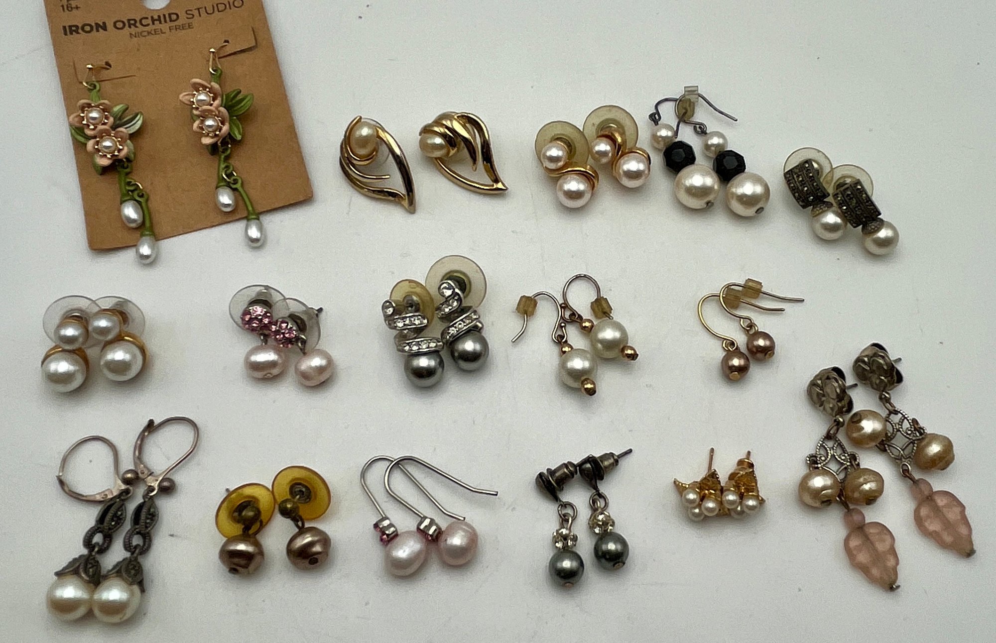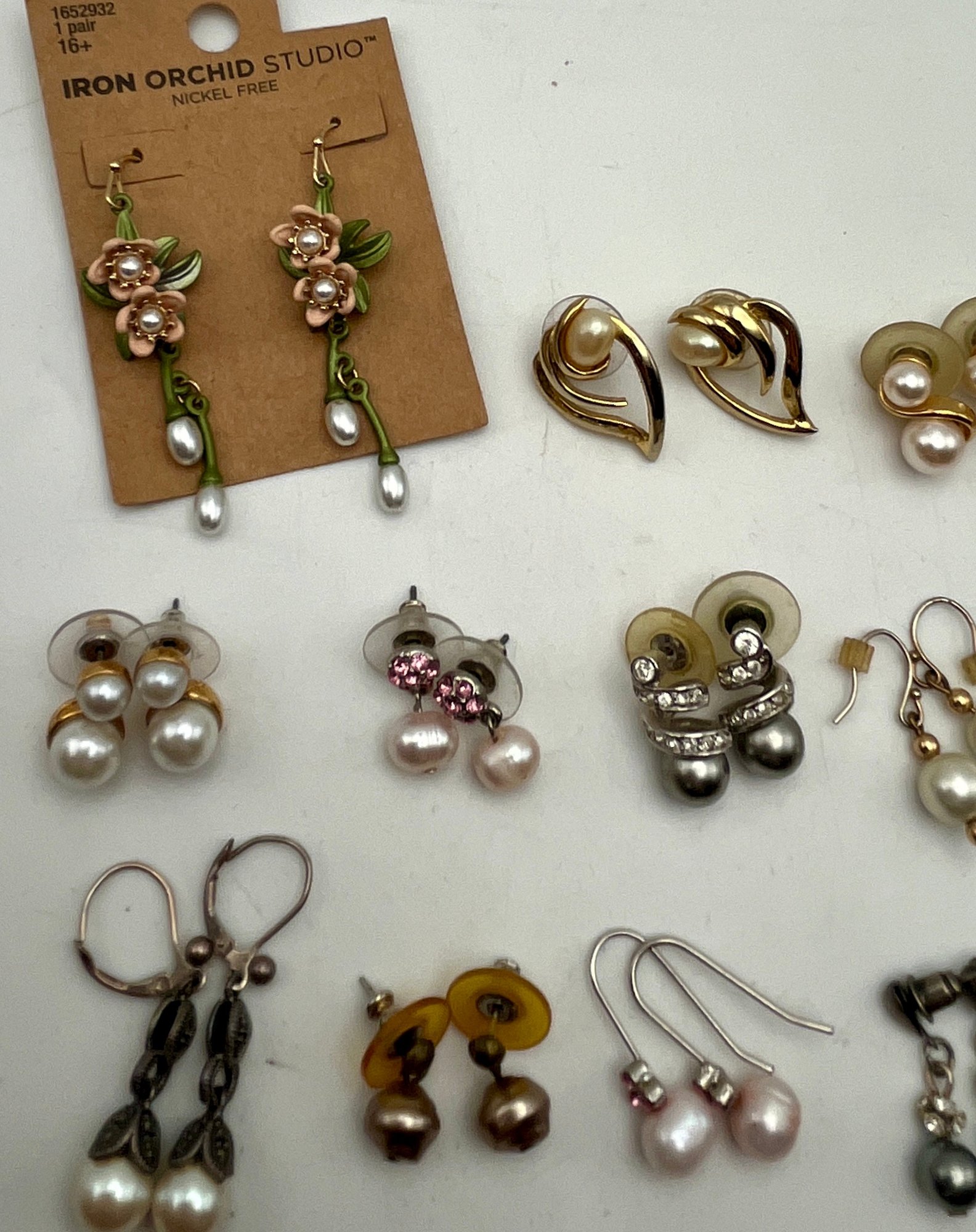 16 Pairs Pierced Earrings - Pearls & Other