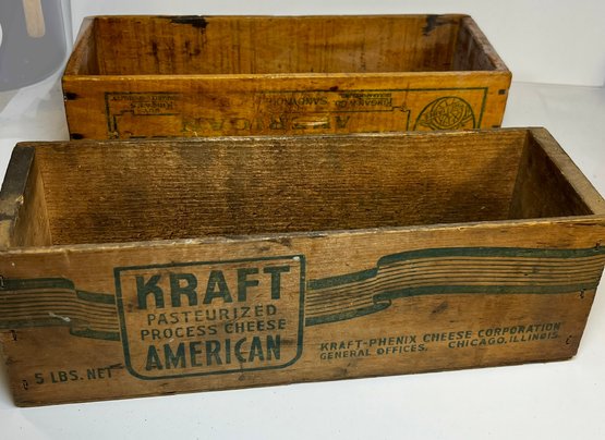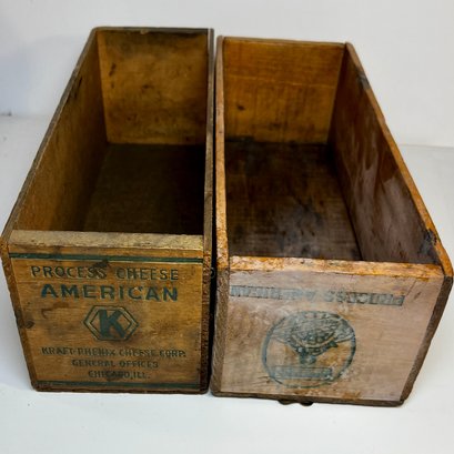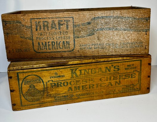 2 Old Wood 5lb Cheese Boxes -American, Kingan’s