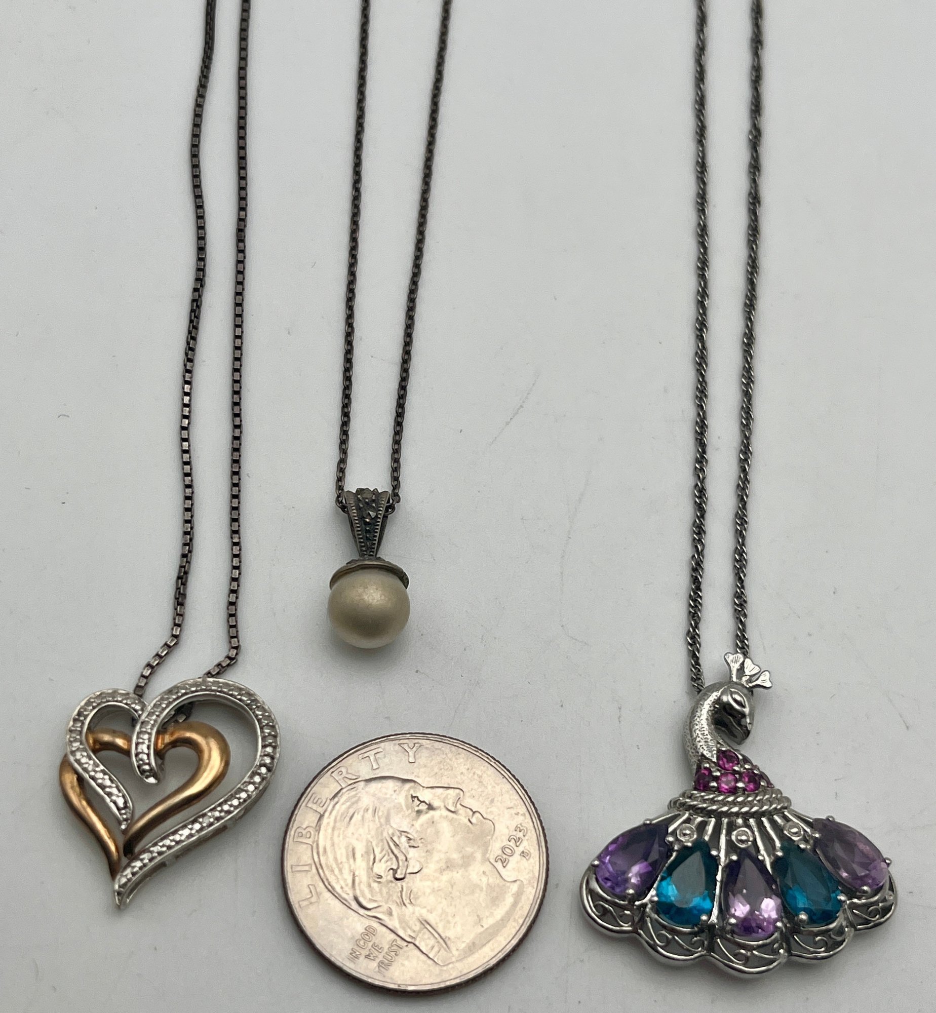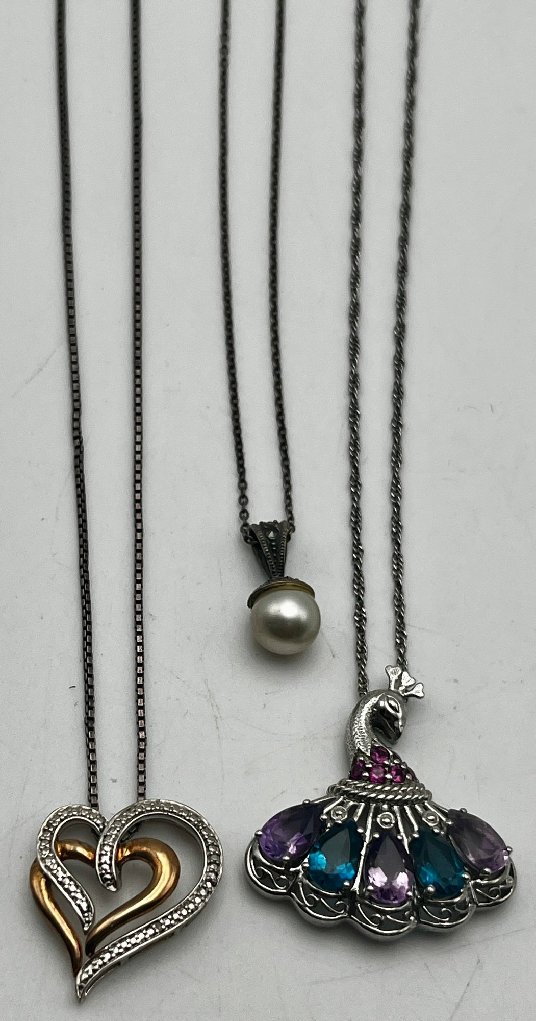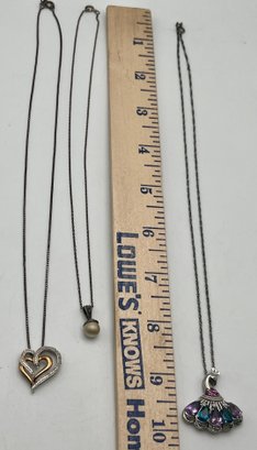 (3)Marked 925/Sterling Pendant Necklace Lot