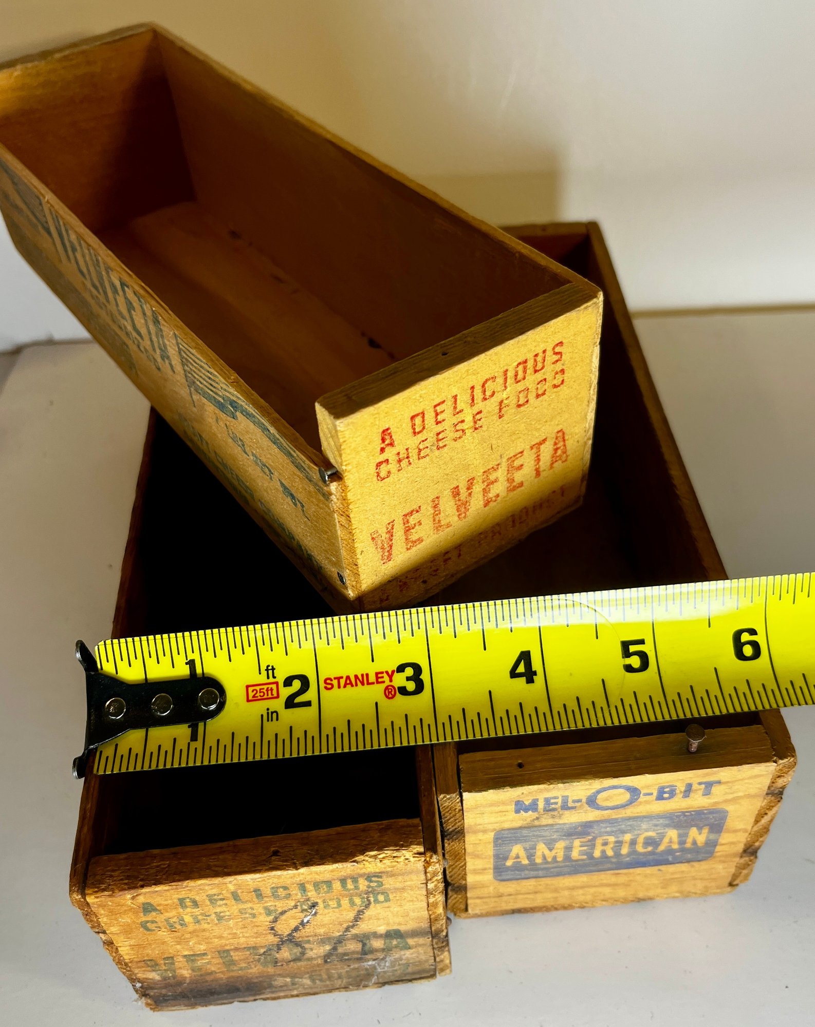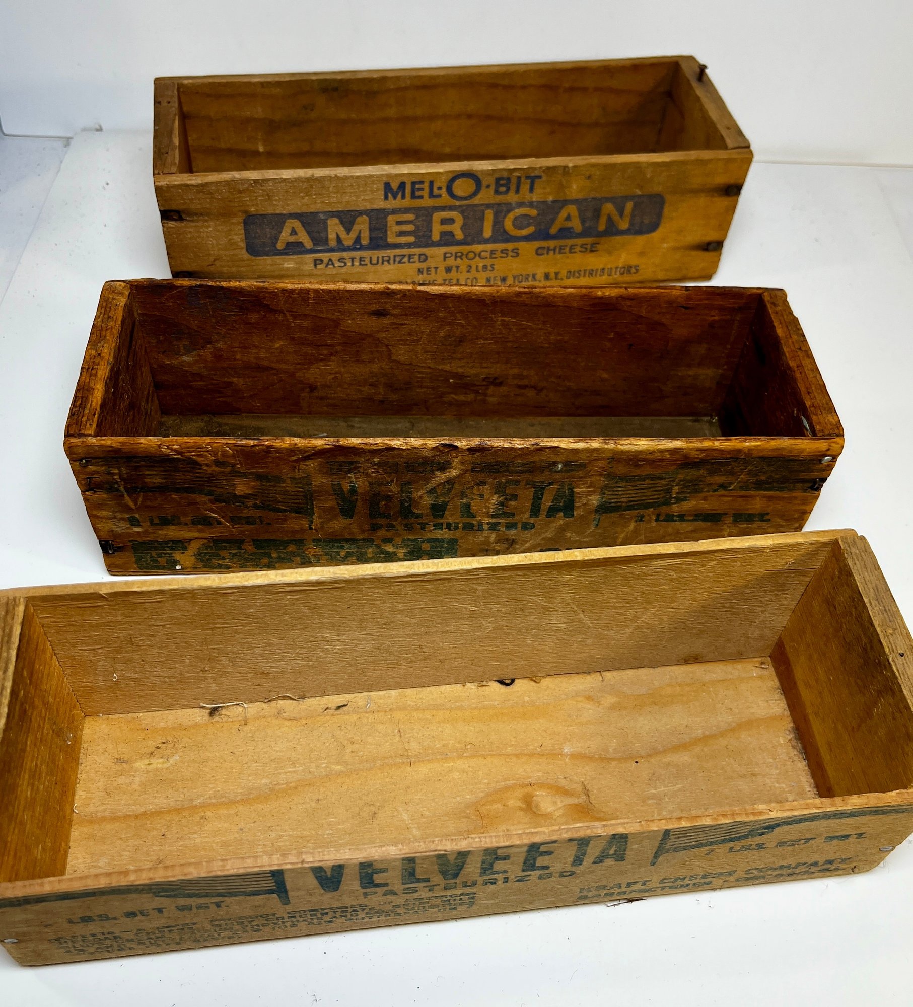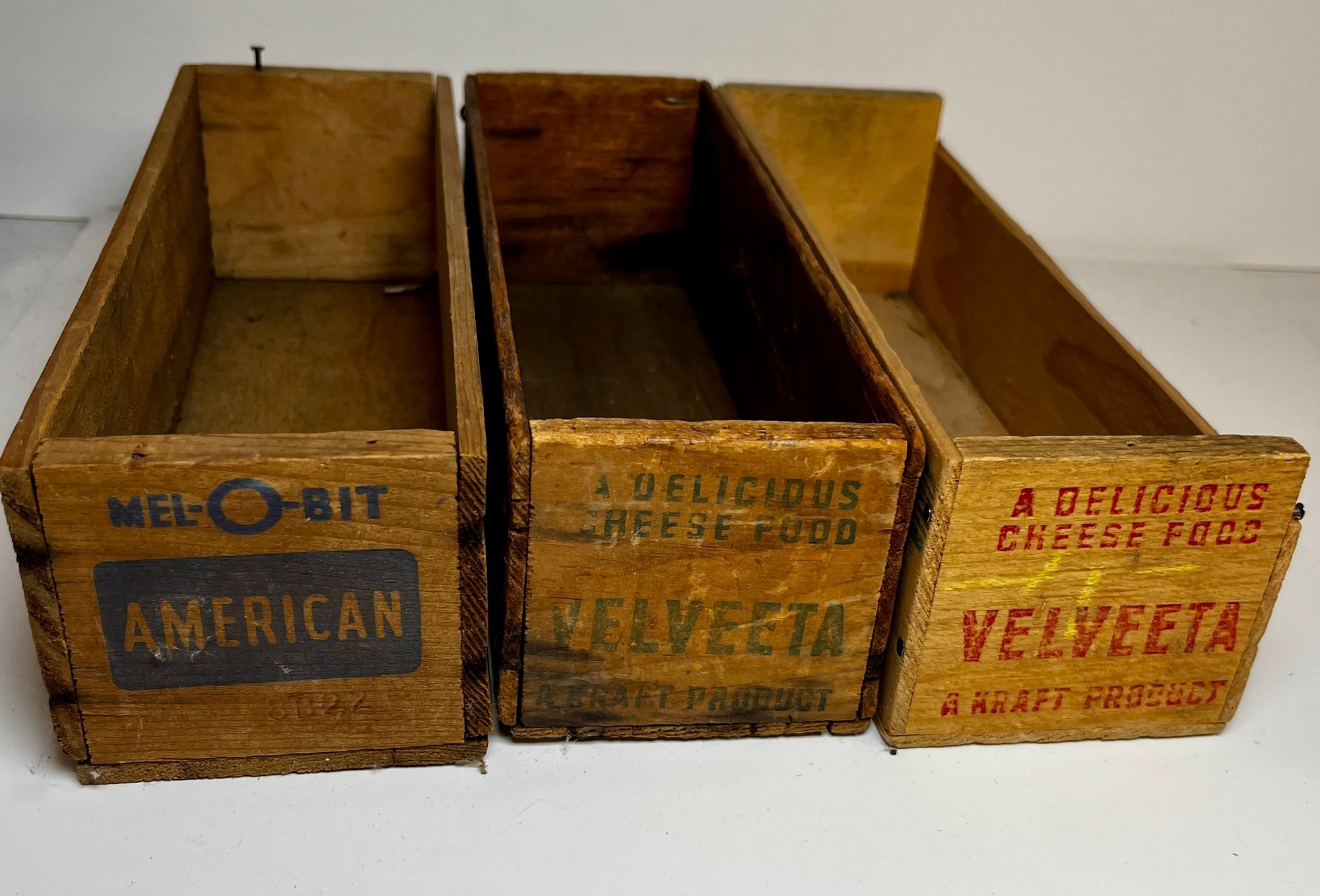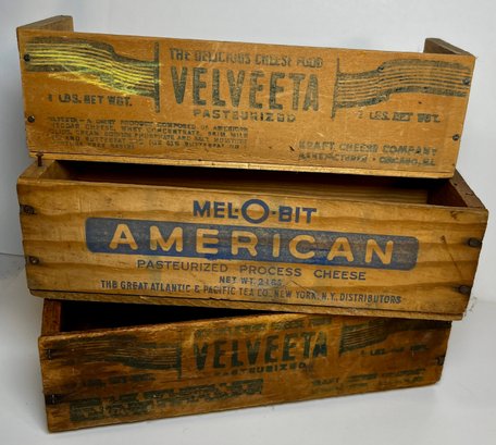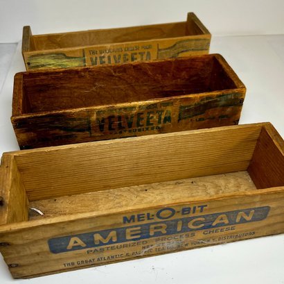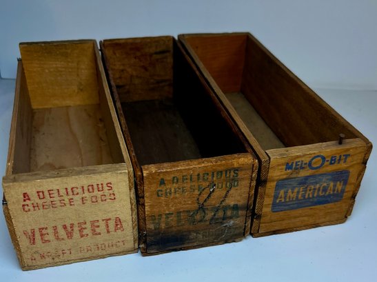 3 Old Wood Cheese Boxes -Velveeta & American