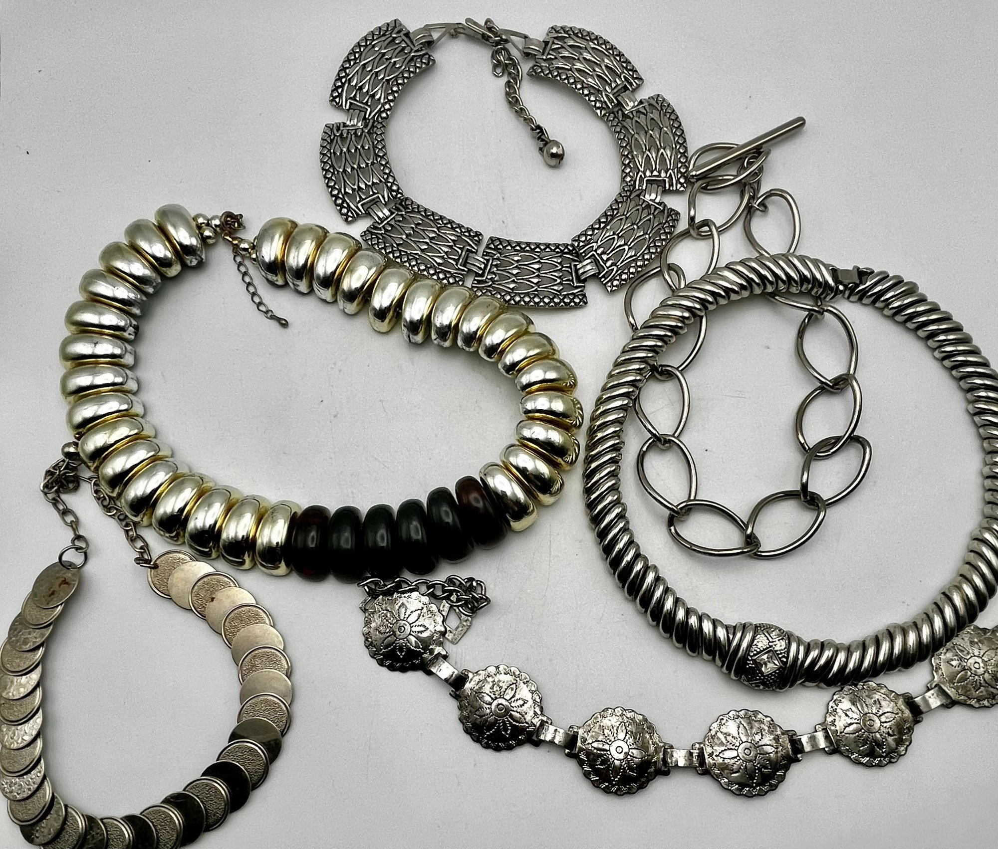6 Collar /Choker Silver Tone Necklace Lot