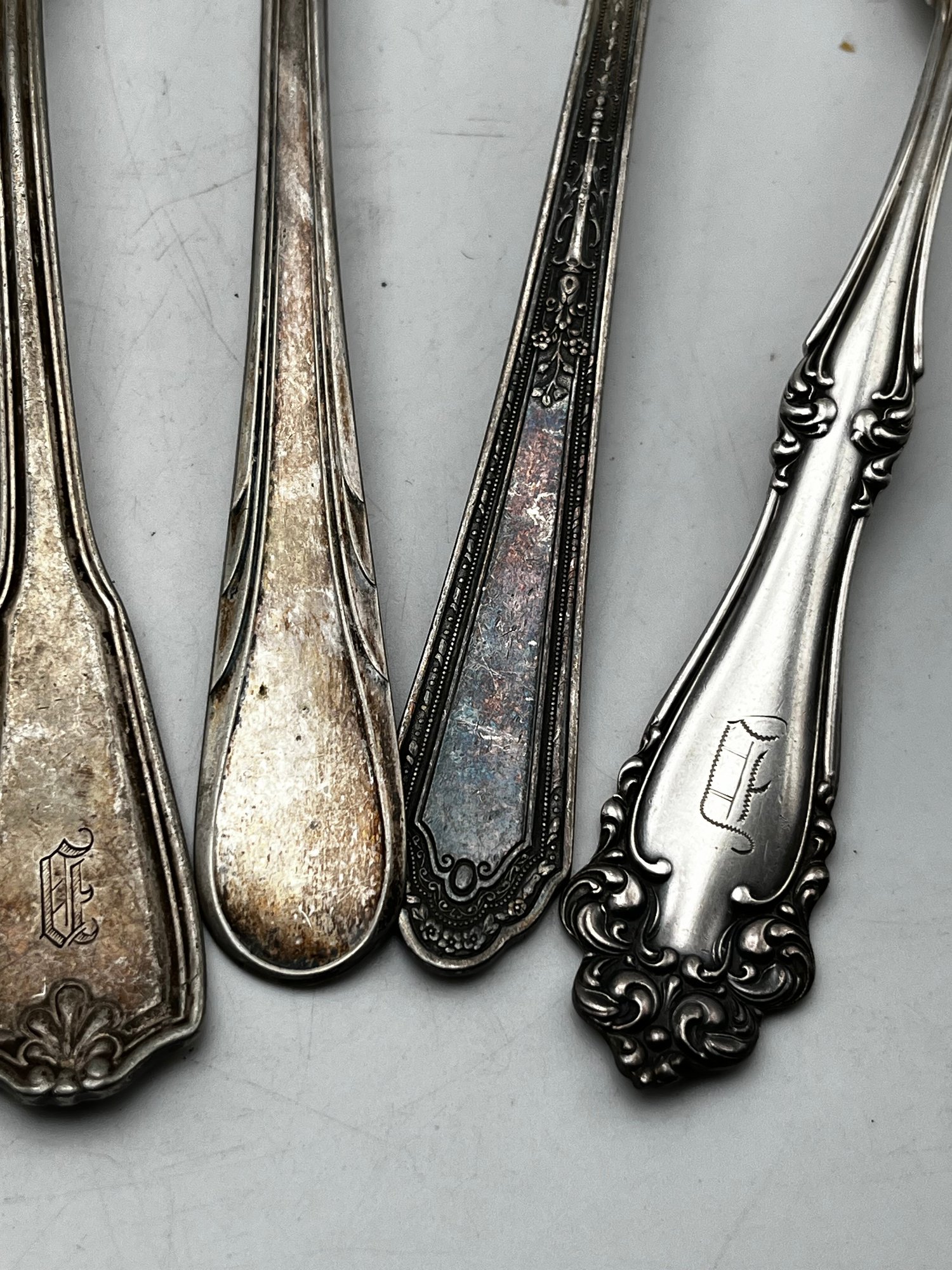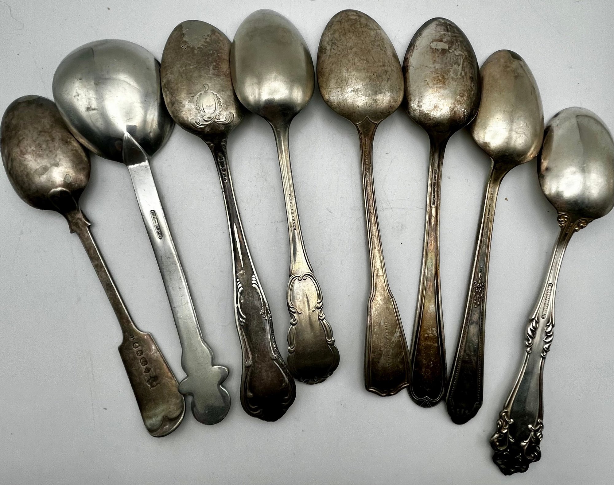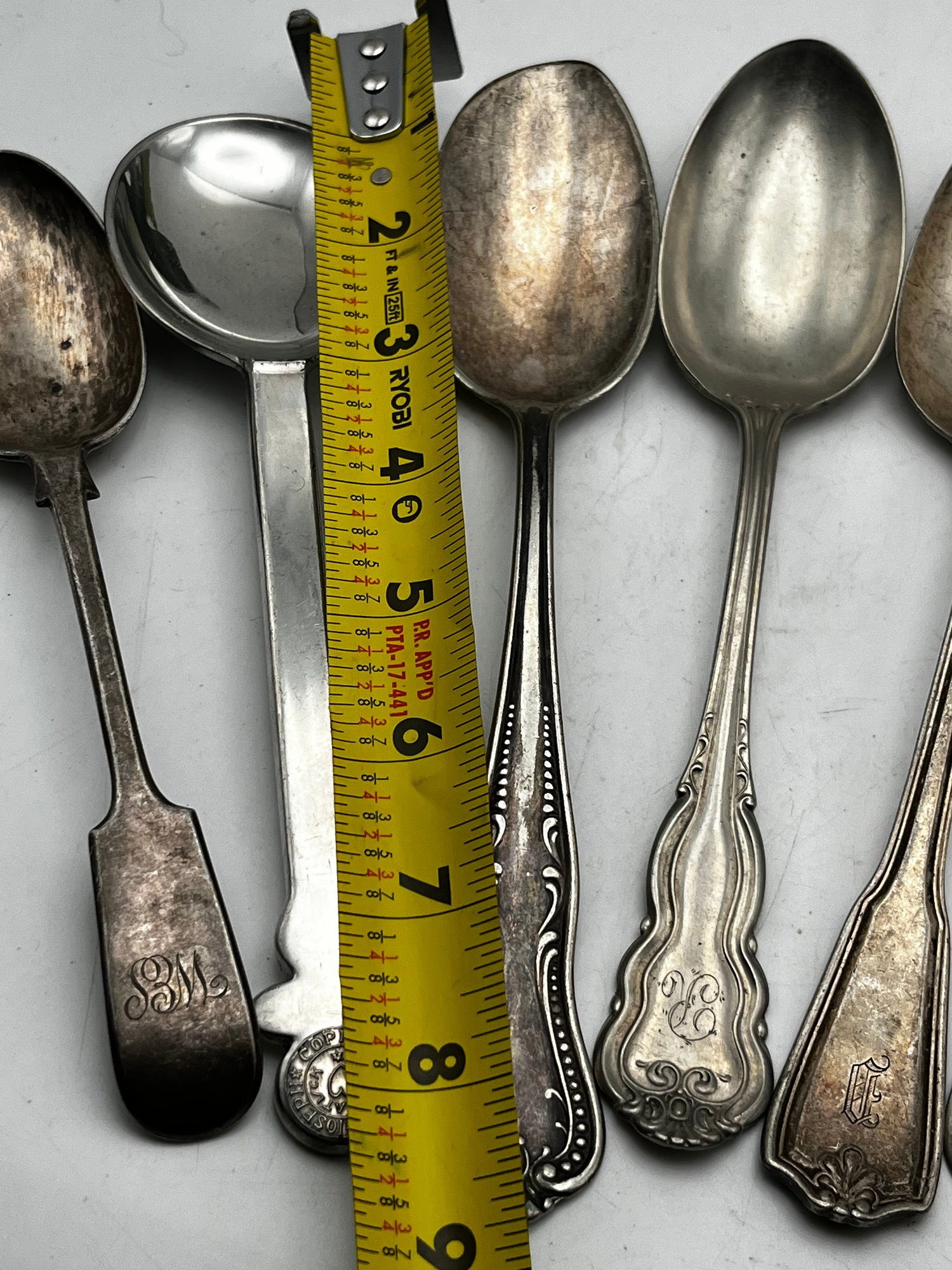 6 Silver Plate & 1 Pewter Serving Spoon Lot