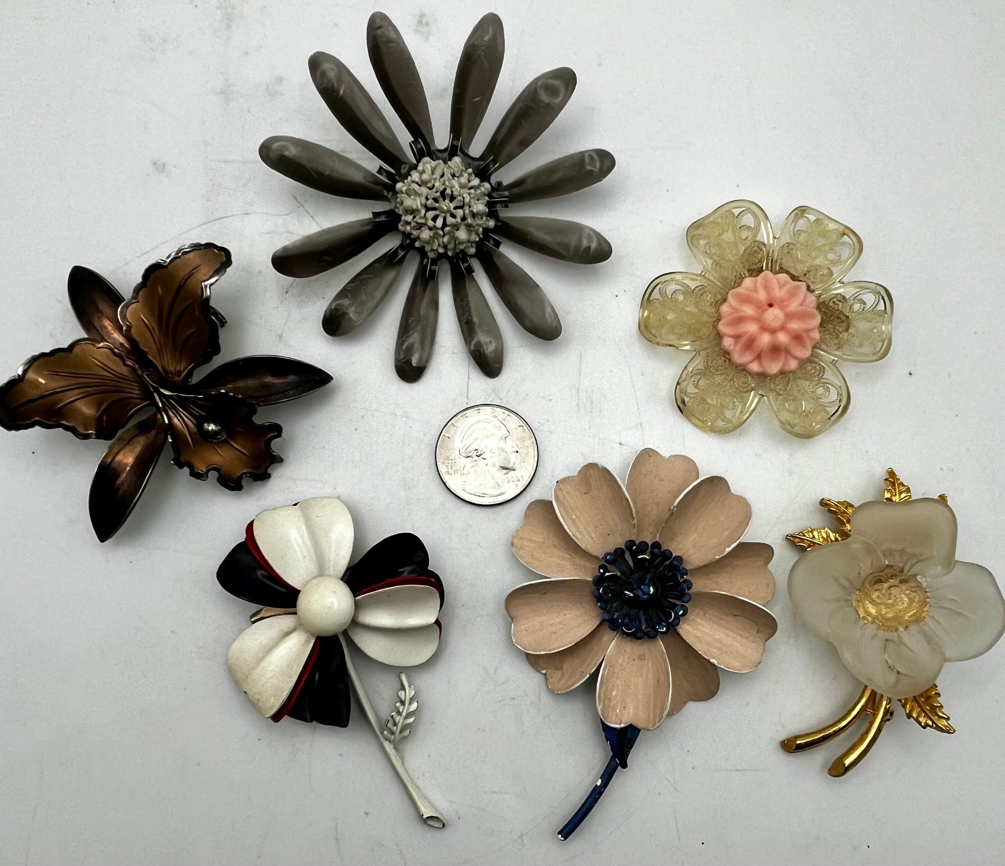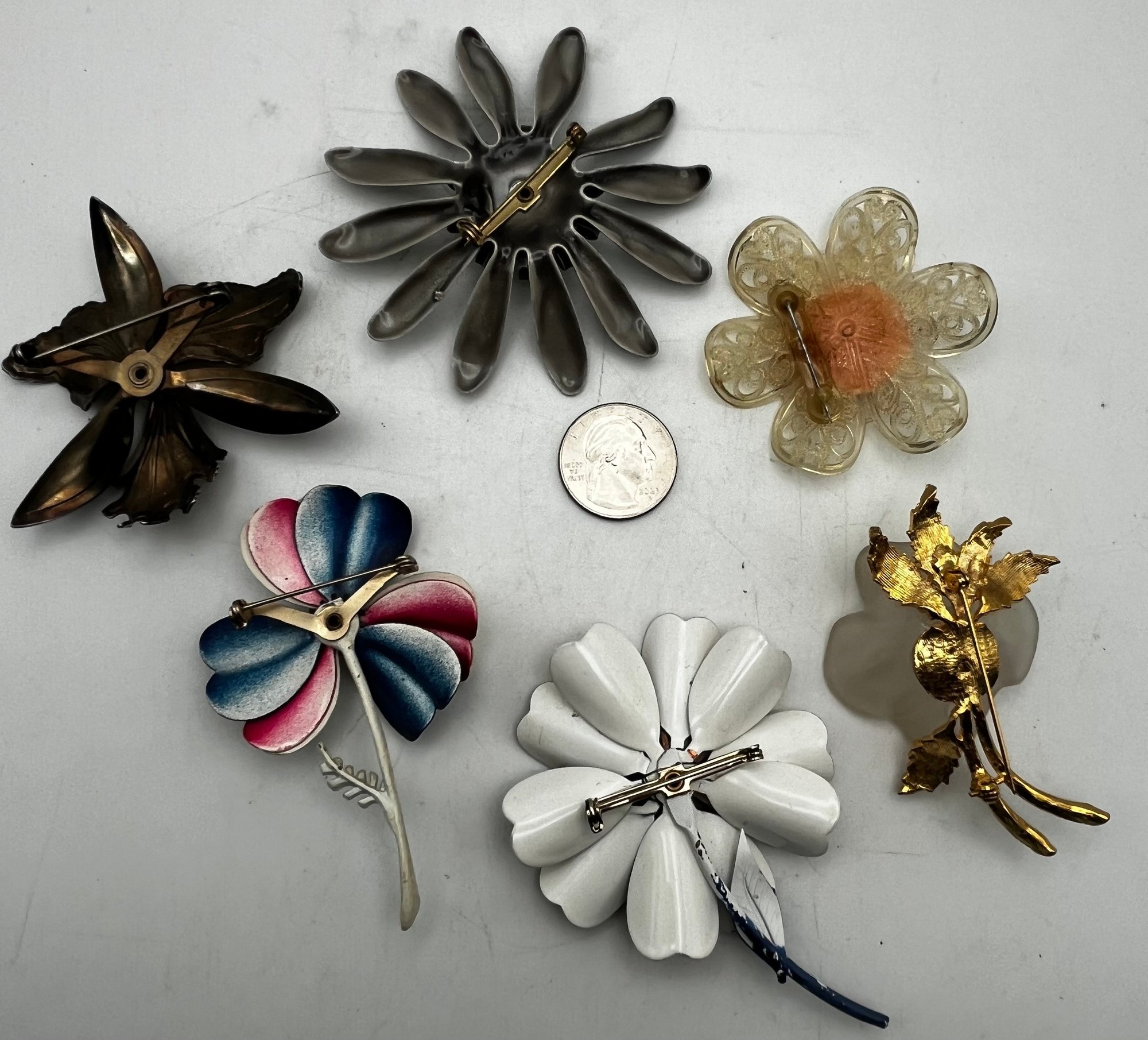 6 Vintage Flower Pins