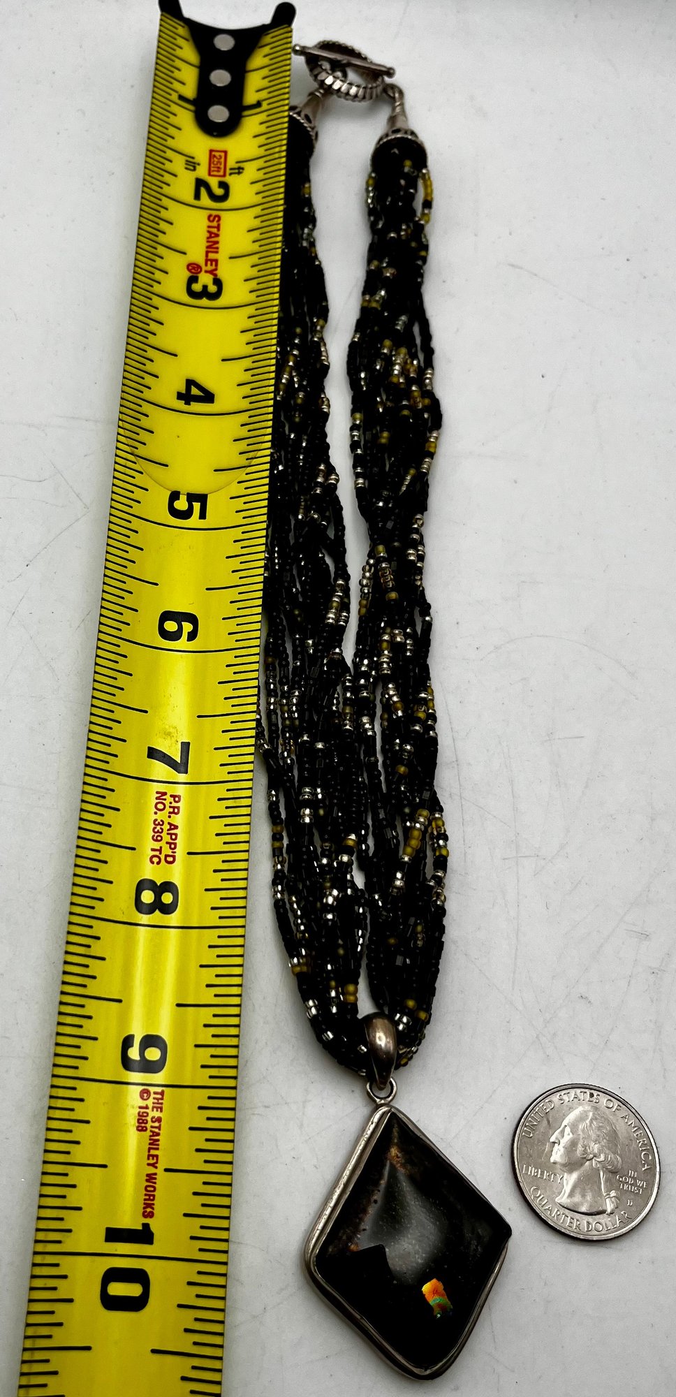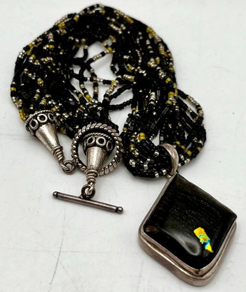 925 Sterling Cased Pendant On Beaded Necklace With toggle clasp