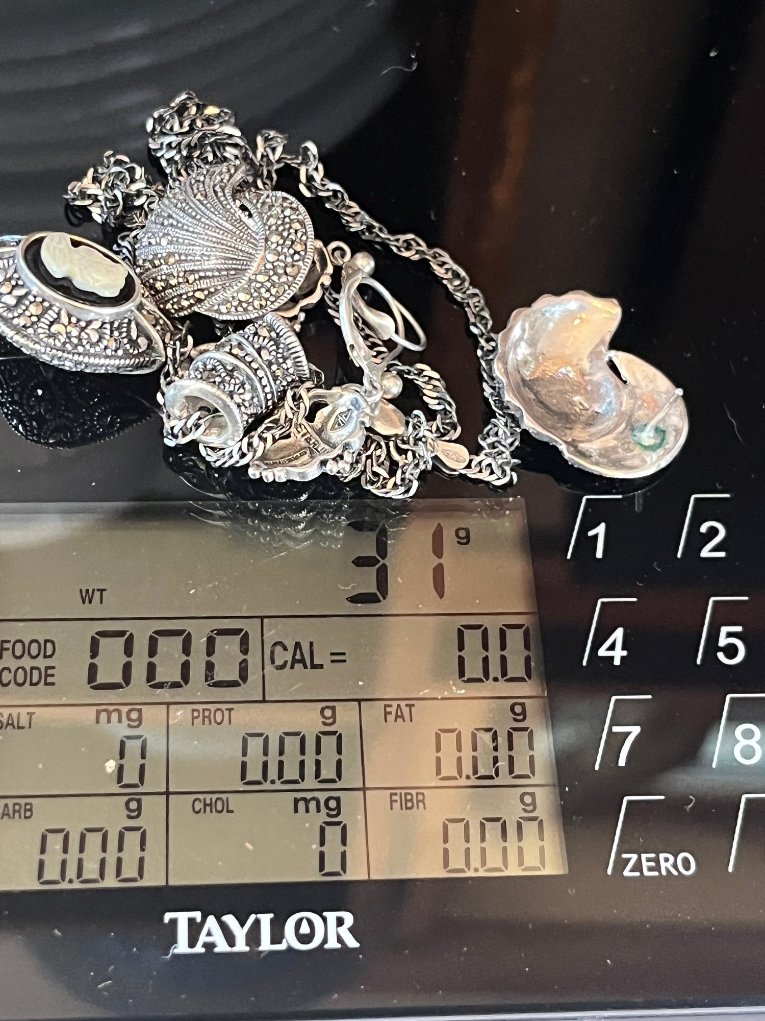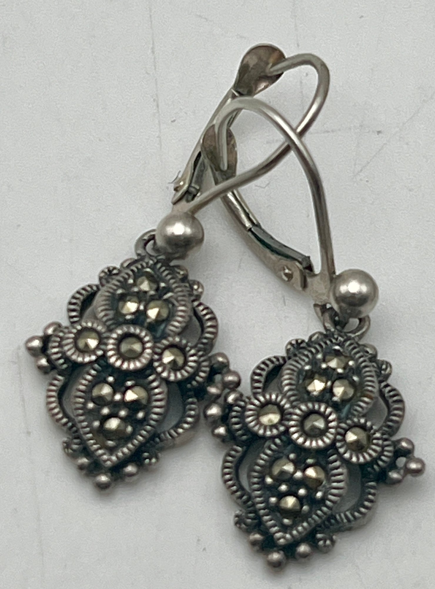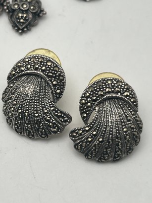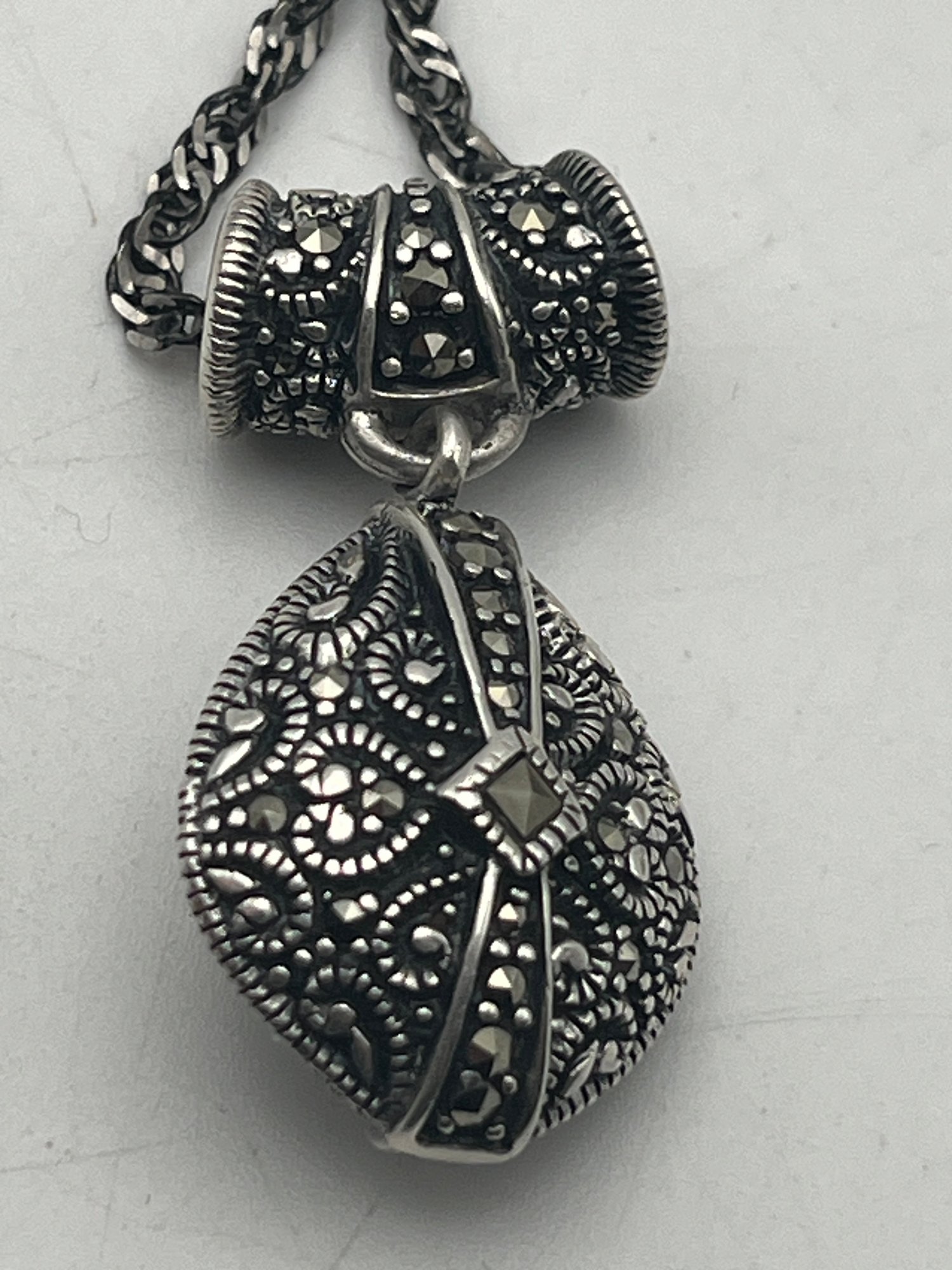 925/Sterling Marcasite Cameo Necklace & Marcasite Earrings