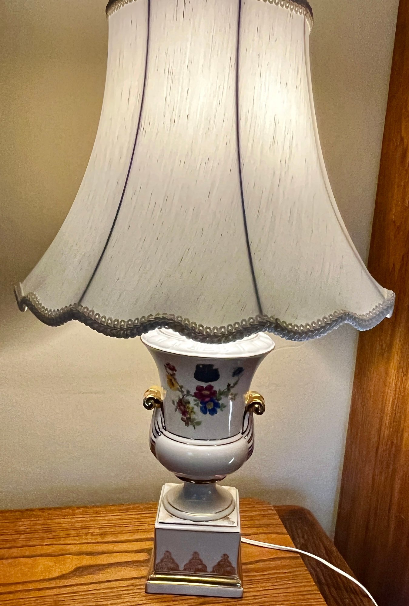 American China 22 Karat Gold Hand Decorated Lamp With Shade