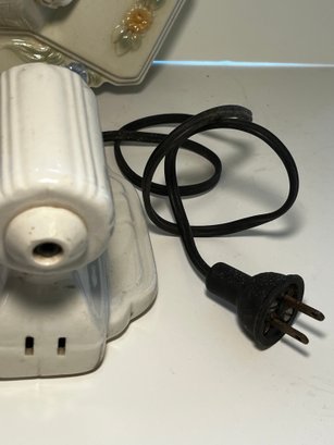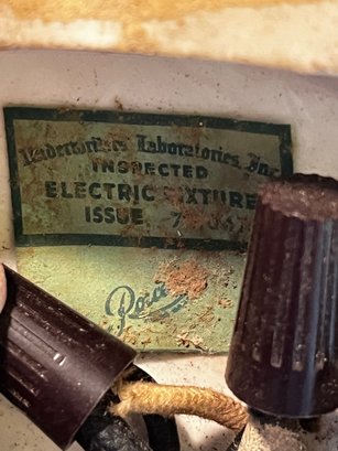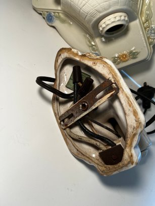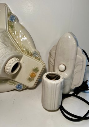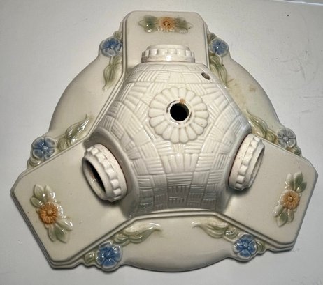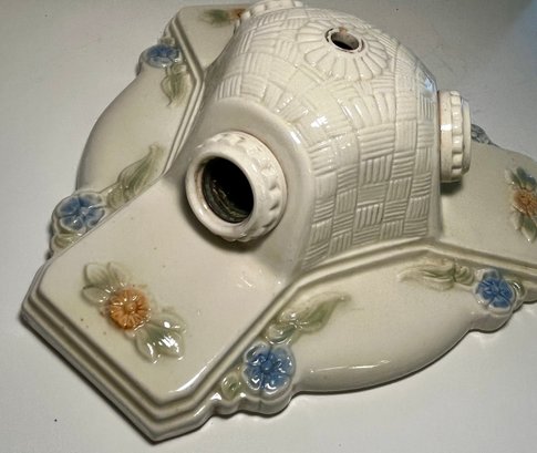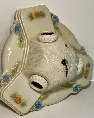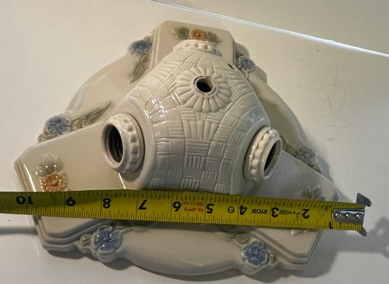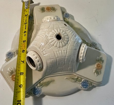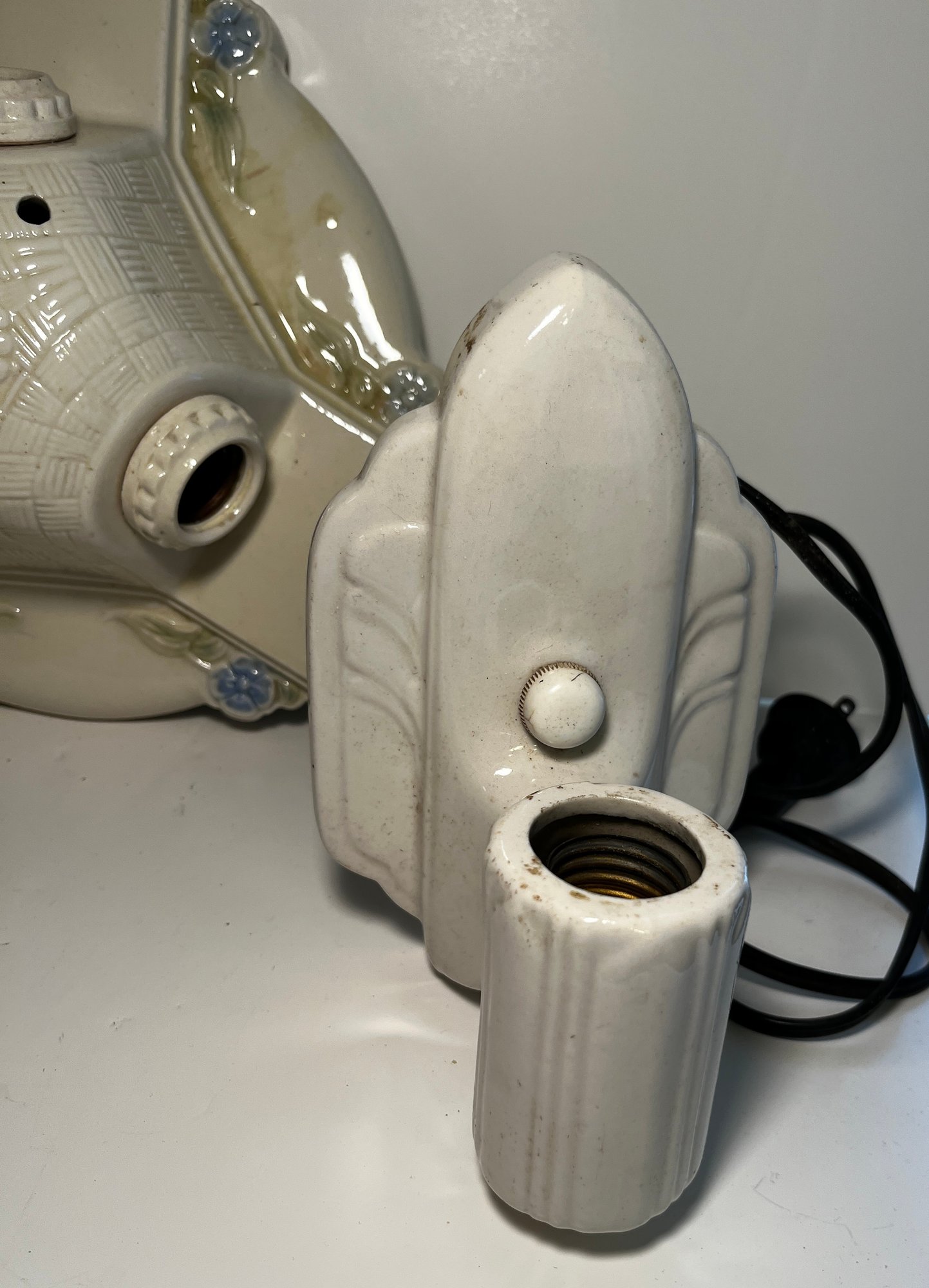Parceled Basket Weave 3 Bulb Porcelain Ceiling Light as shown & Art Deco porcelain Wall Sconce old plug in