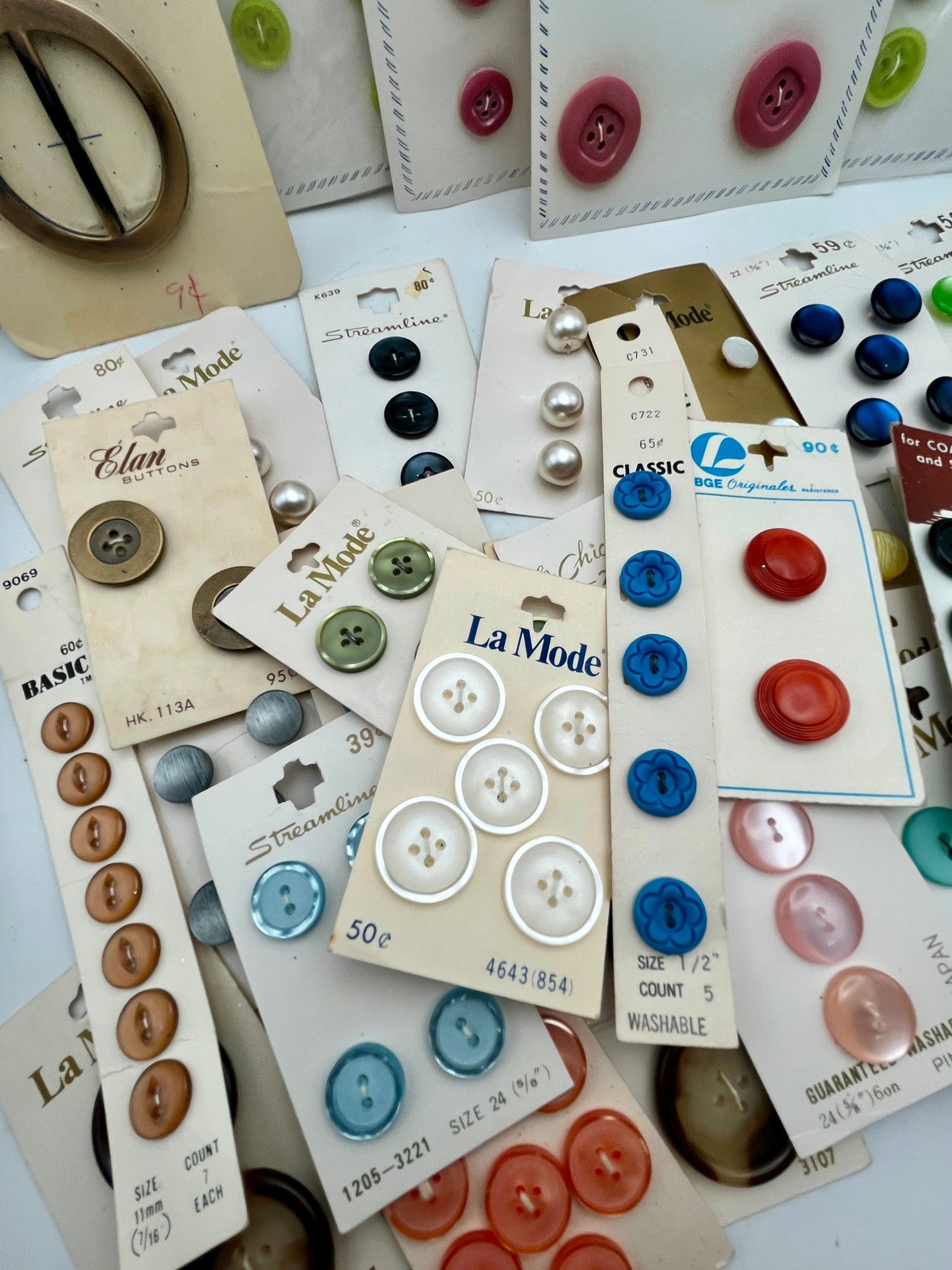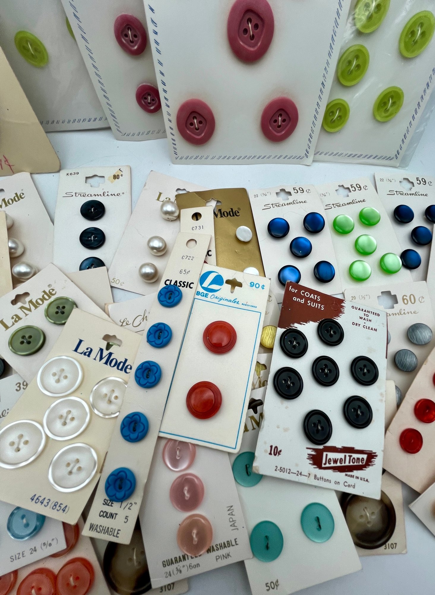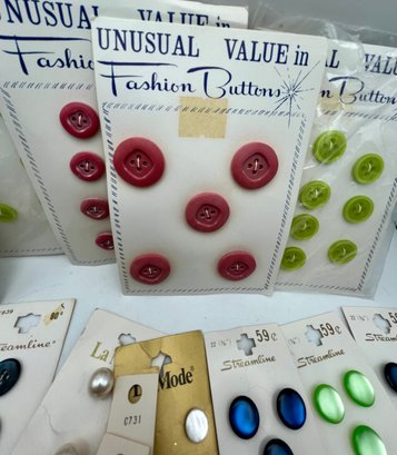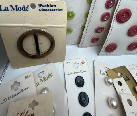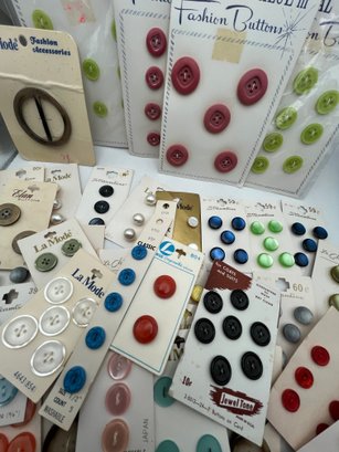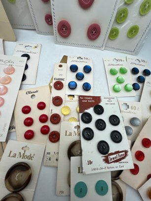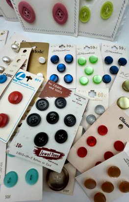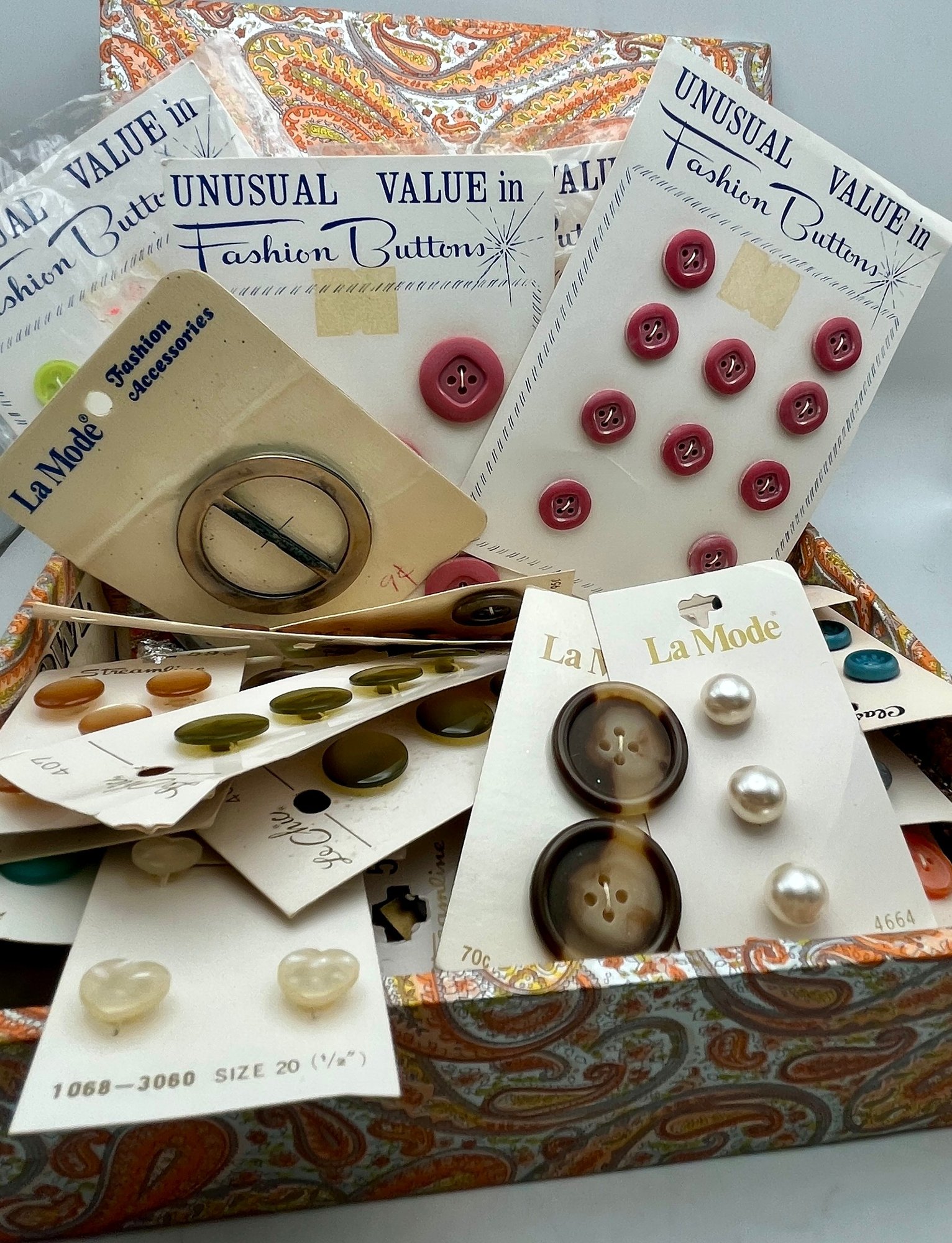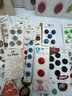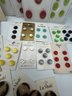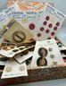 Decorative paper covered cigar Box full of Carded Buttons Vintage