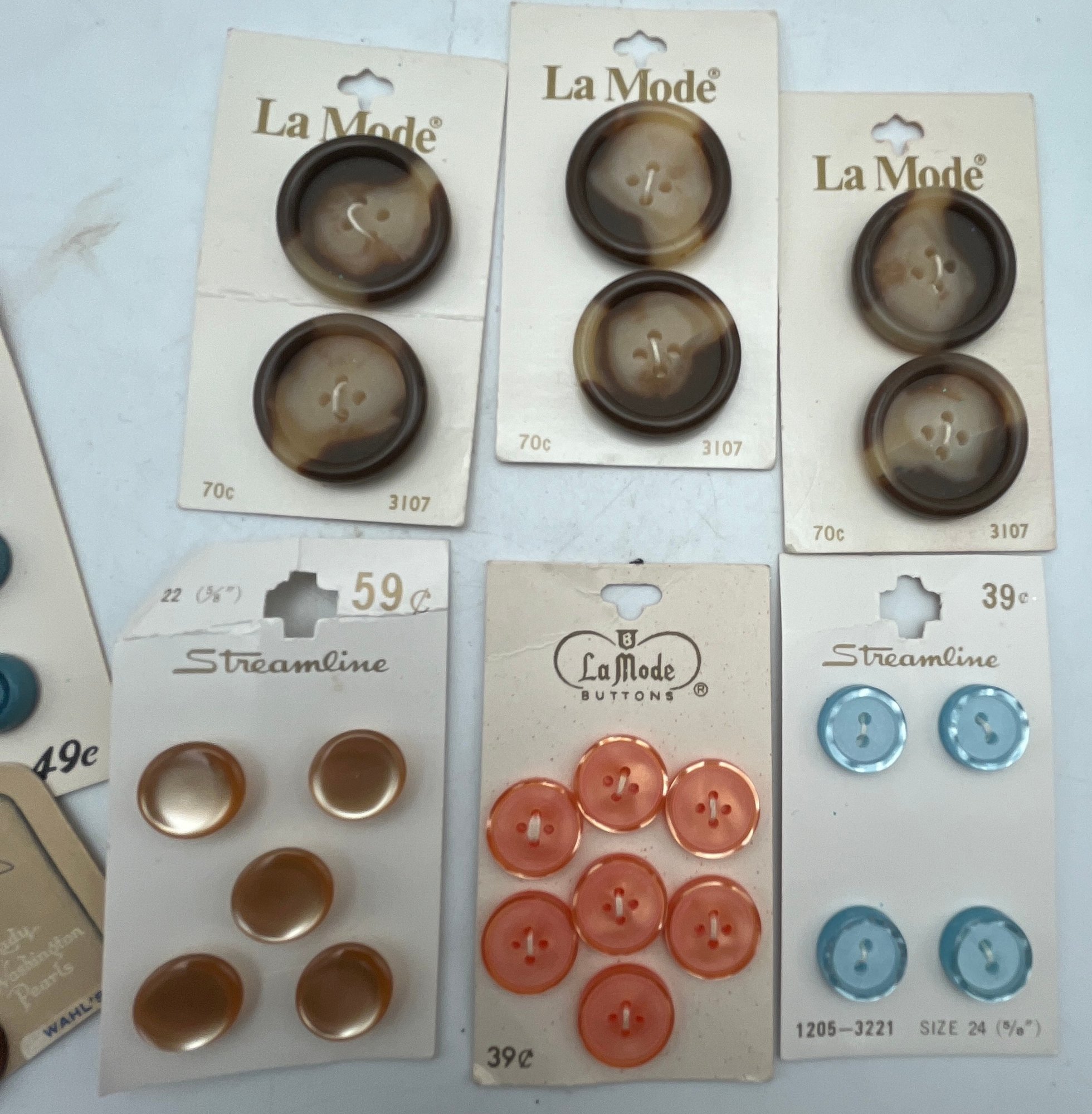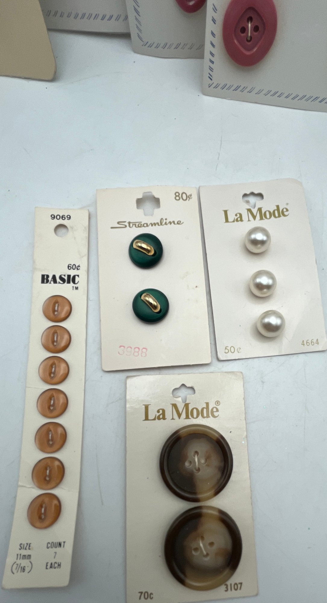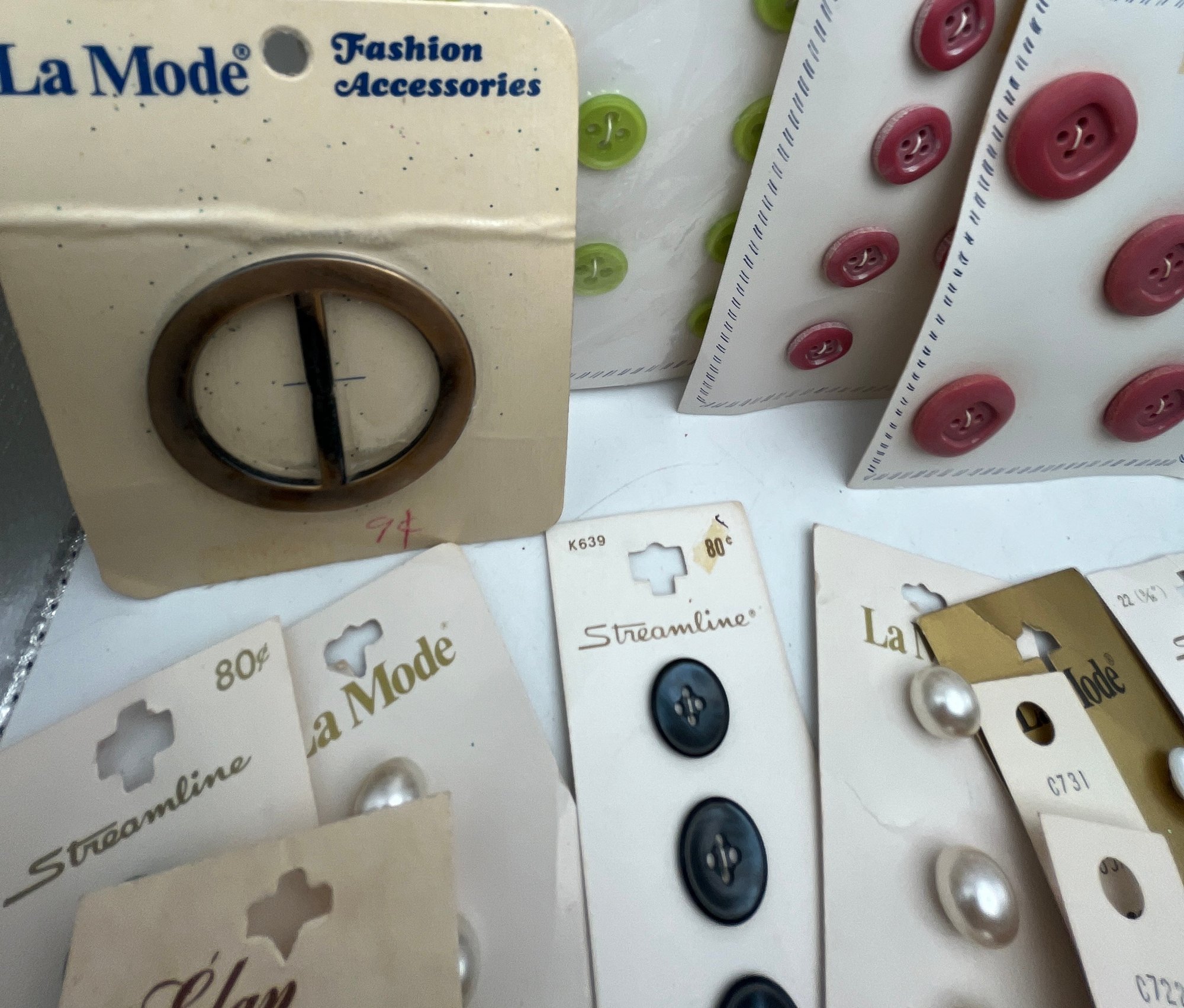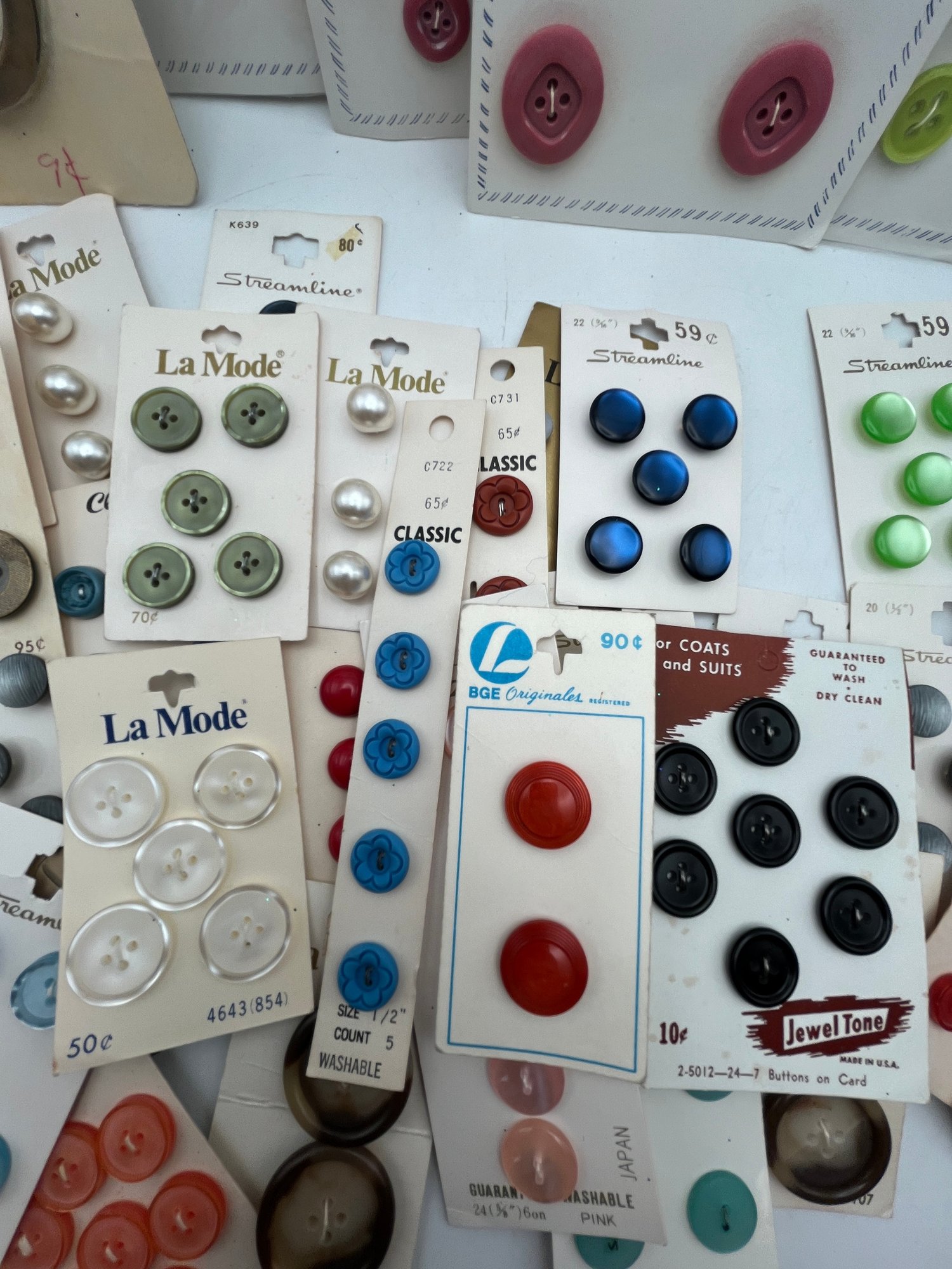 Decorative paper covered cigar Box full of Carded Buttons Vintage