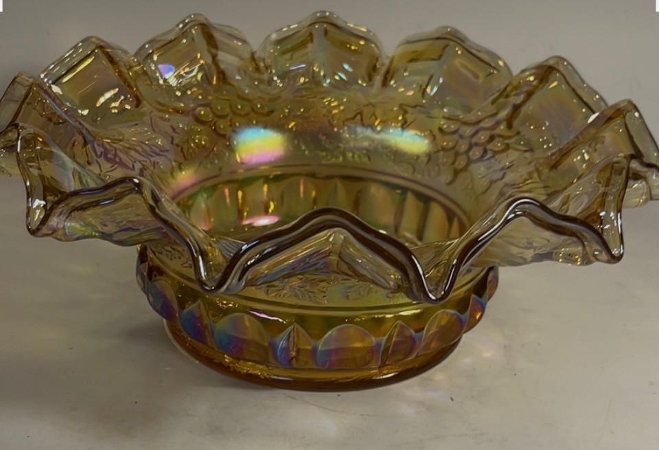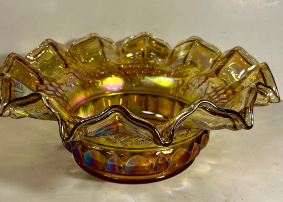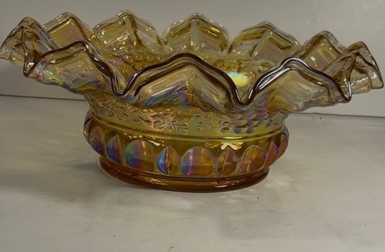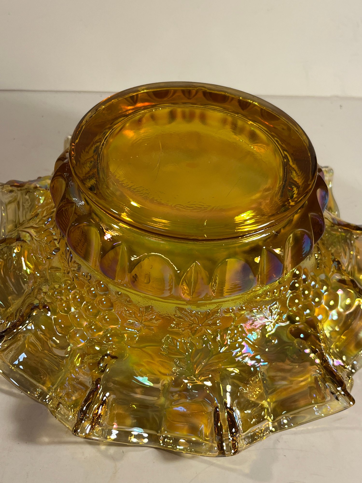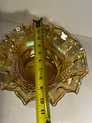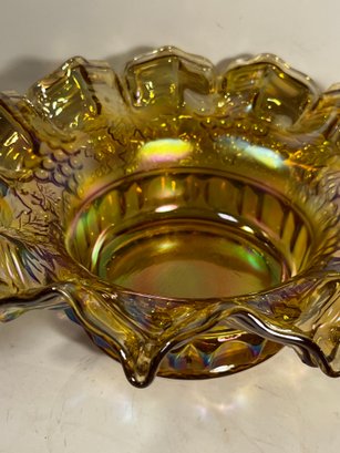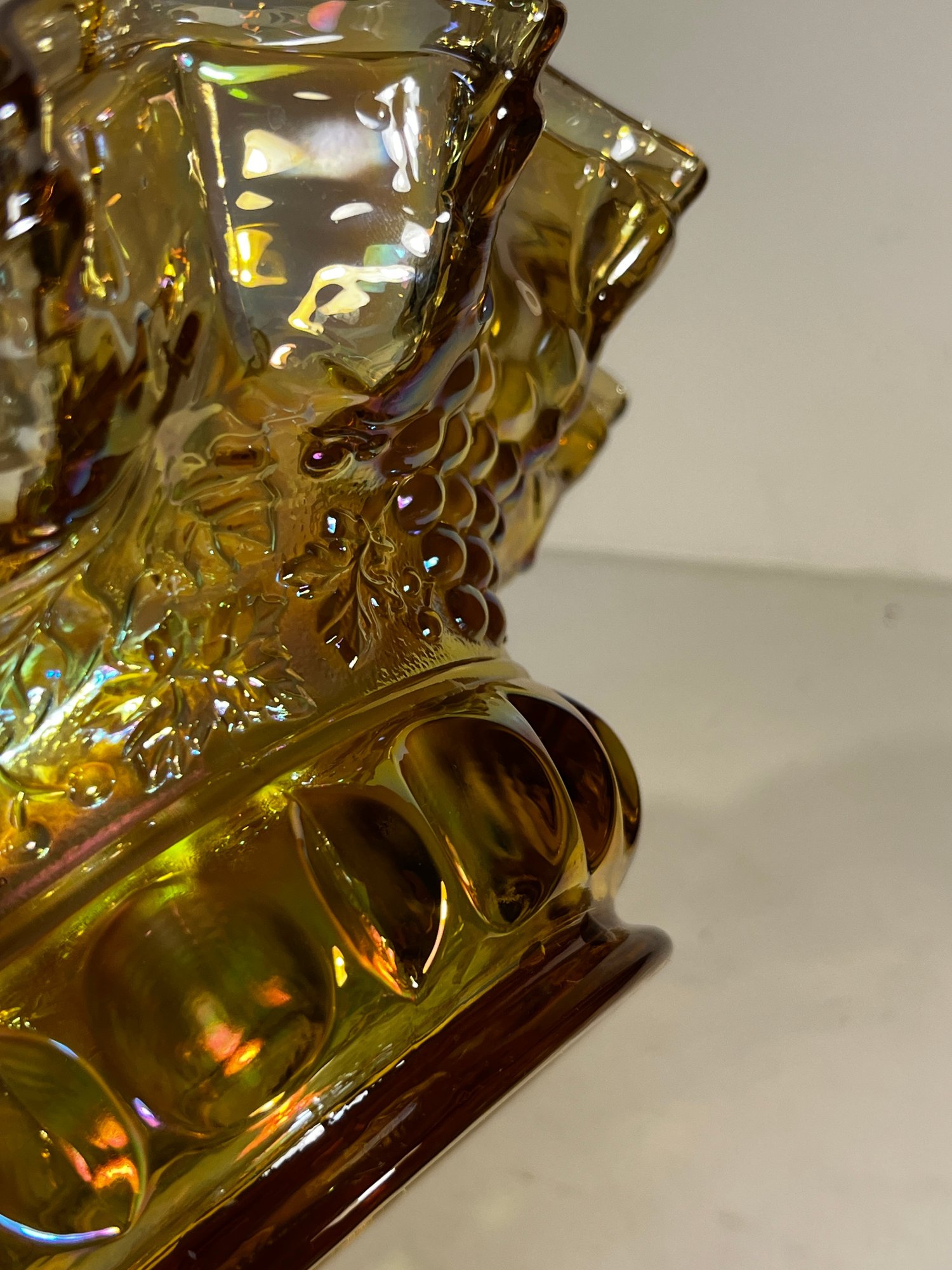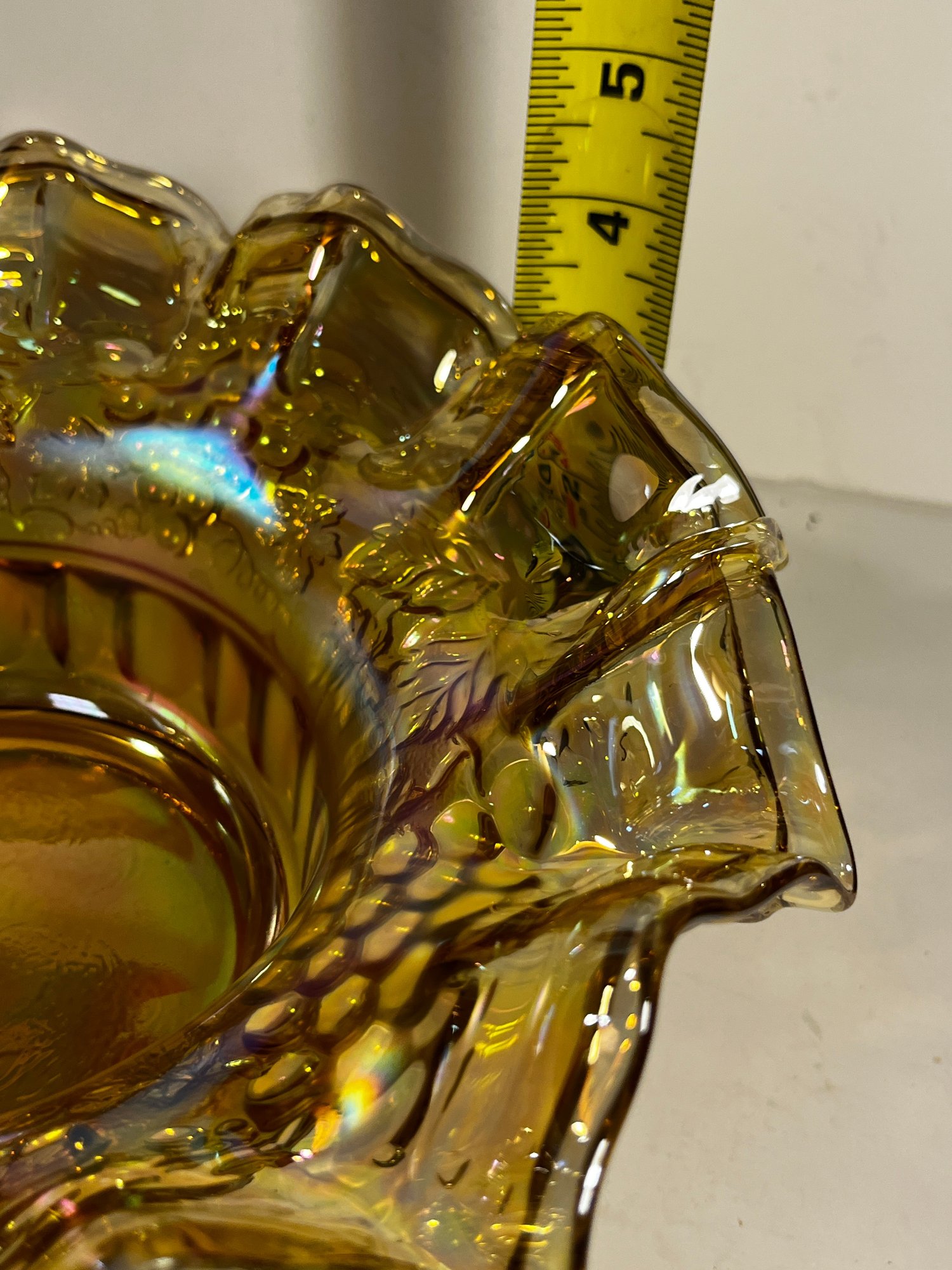 Carnival Glass Grapes & Cable Iridescent Golden Orange