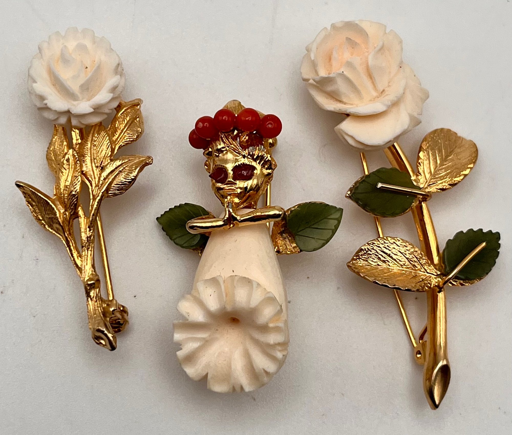 Carved Flowers And Angel With Jade Leaves