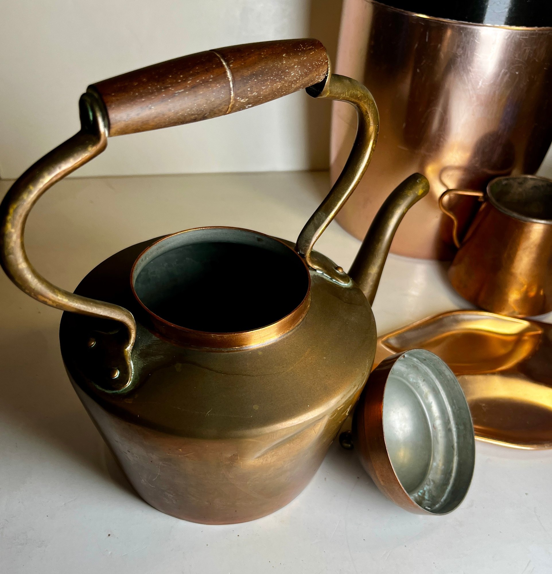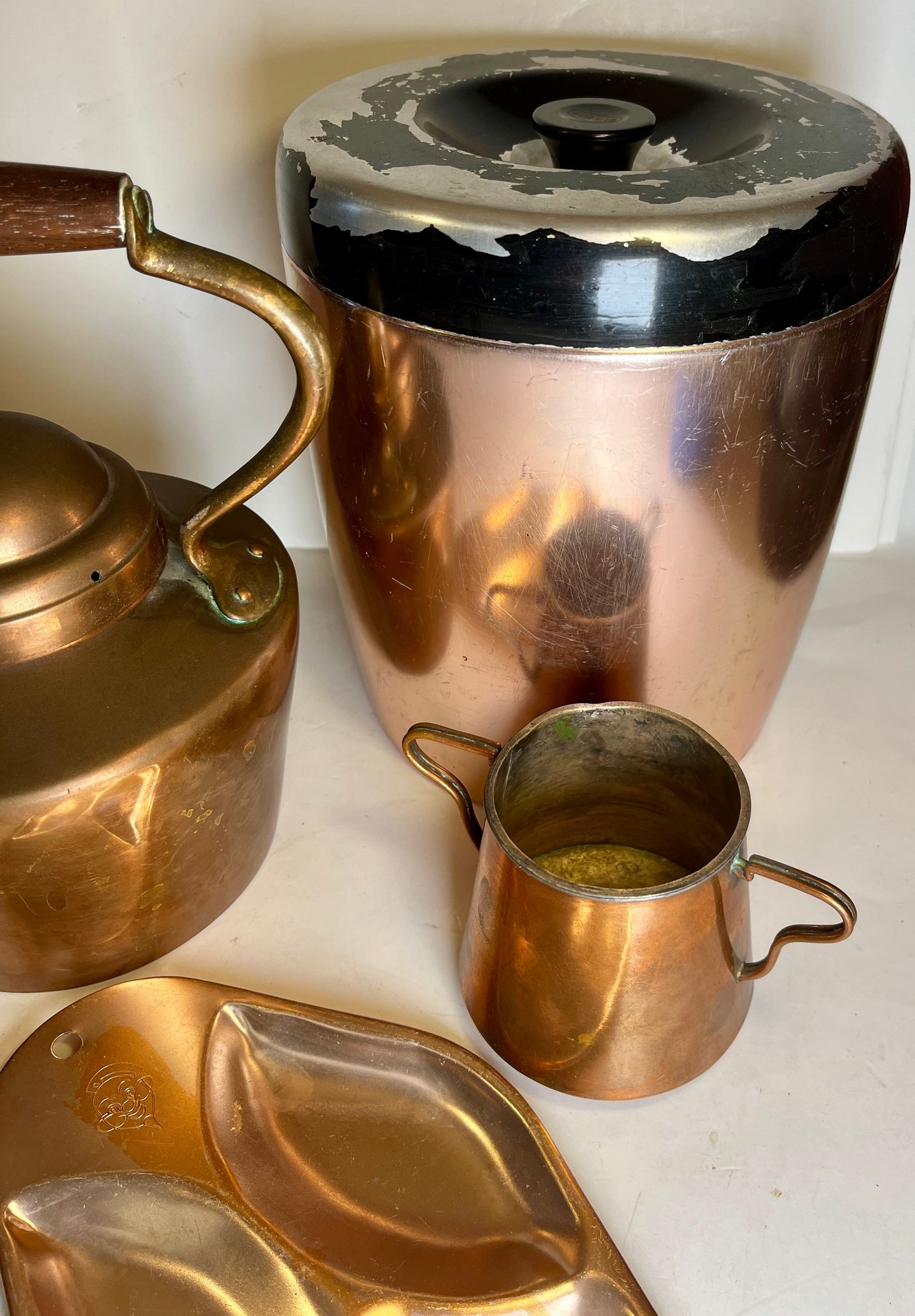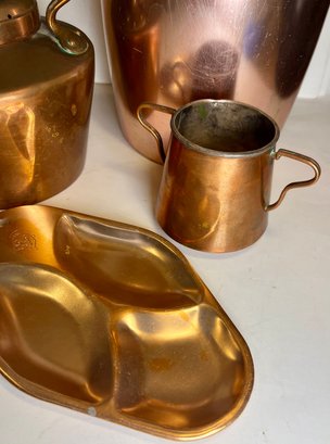 Copper Kettle Made In Italy, 2 Handle Made In Mexico, West Bend Canister, Tray