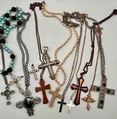 Cross Necklace Lot Of 10 Plus 2 Pendants